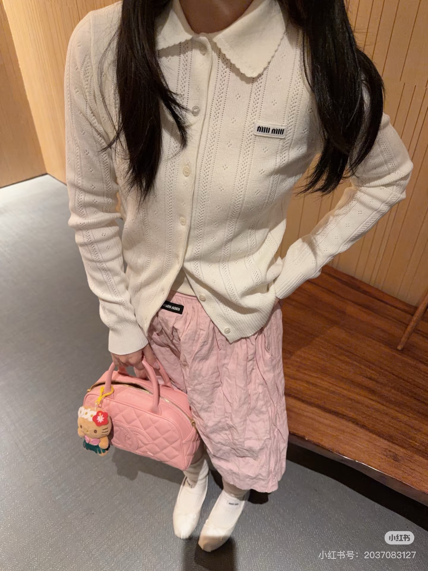 而且小开衫的版型,不仅可以单穿 也可以做外搭 配各种小裙子,奶白色清新干净 少女又减龄!