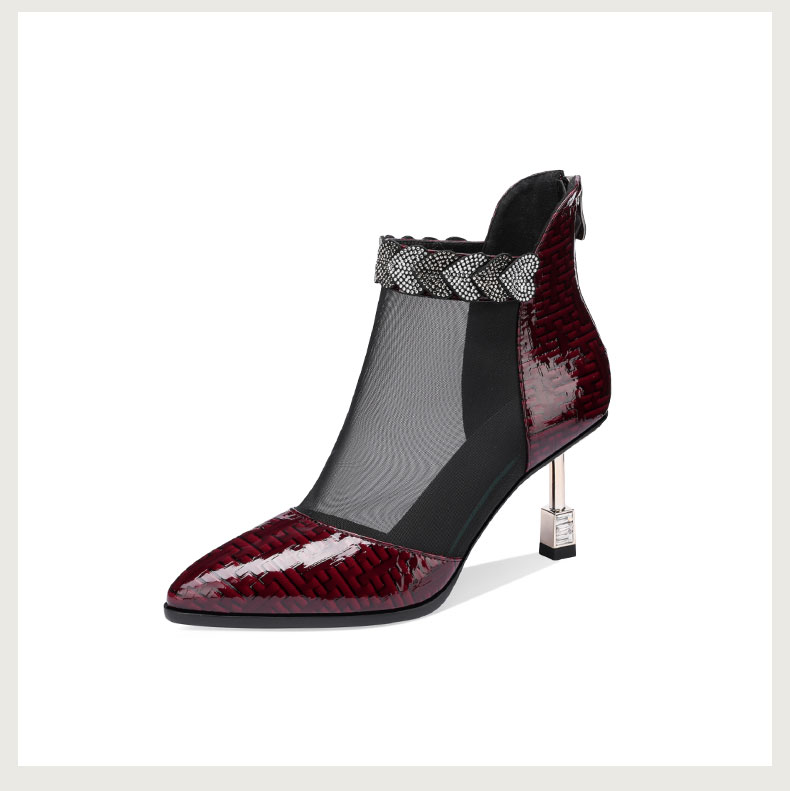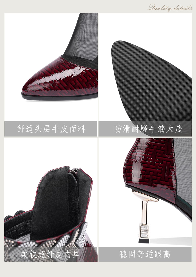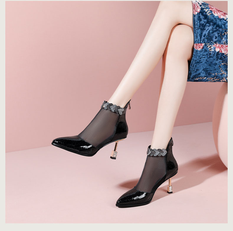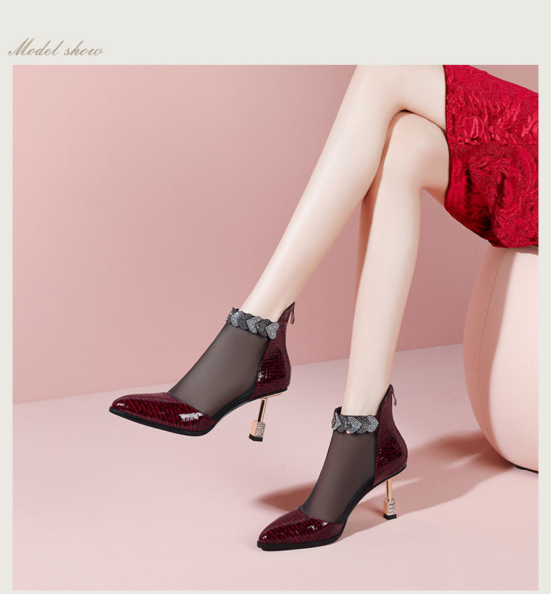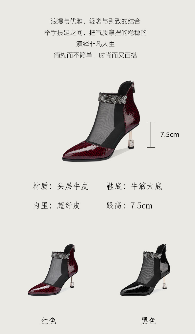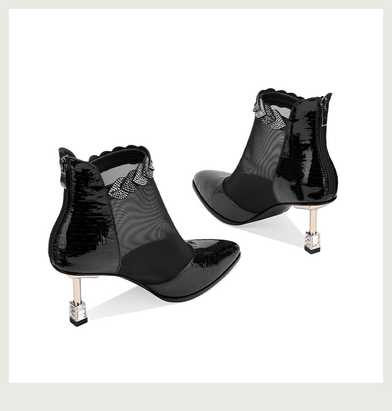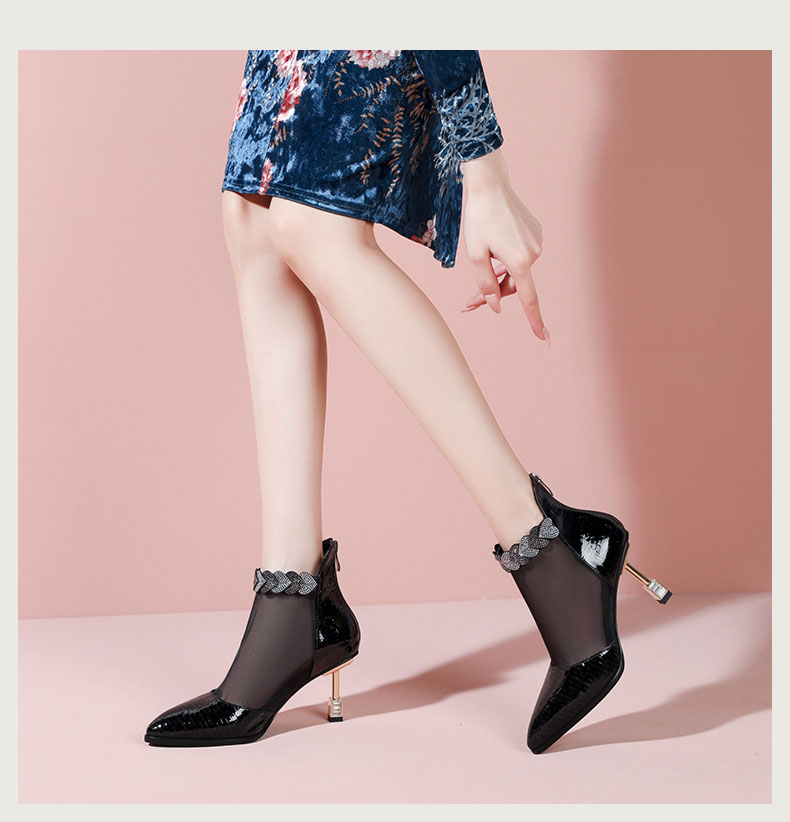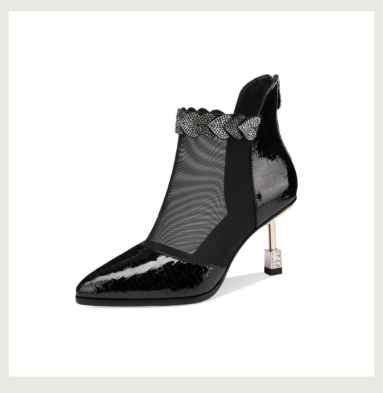春季新品,气质轻奢后拉链水钻跟女网靴JJ-D863