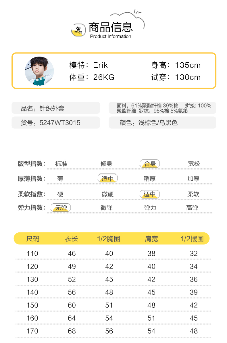 KIDS卡尔美儿童外套男童百搭新款春秋大童休闲上衣