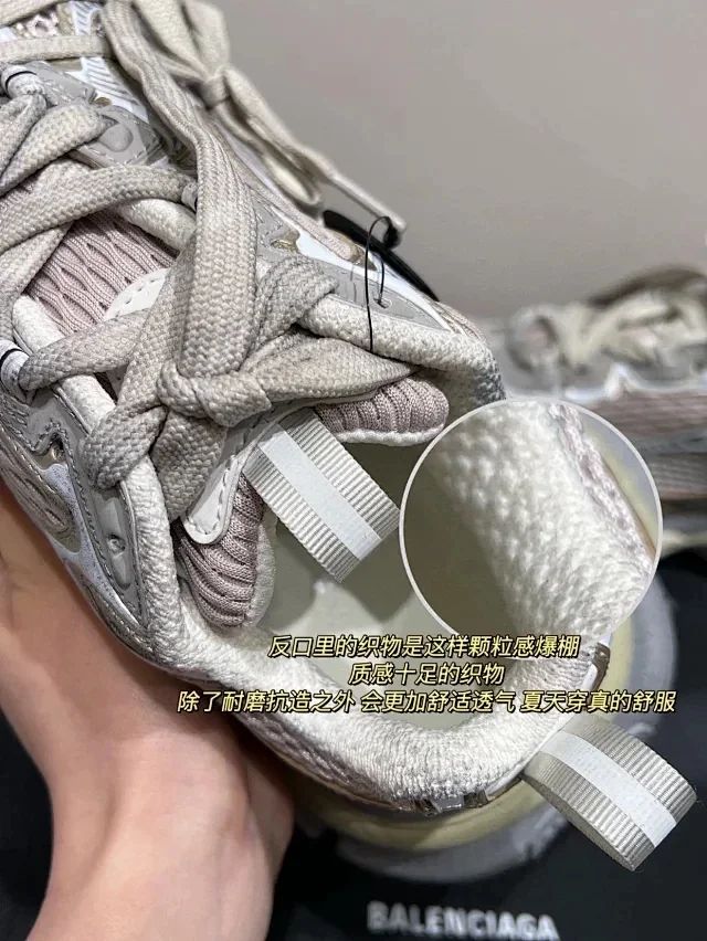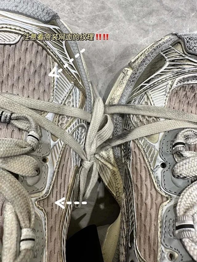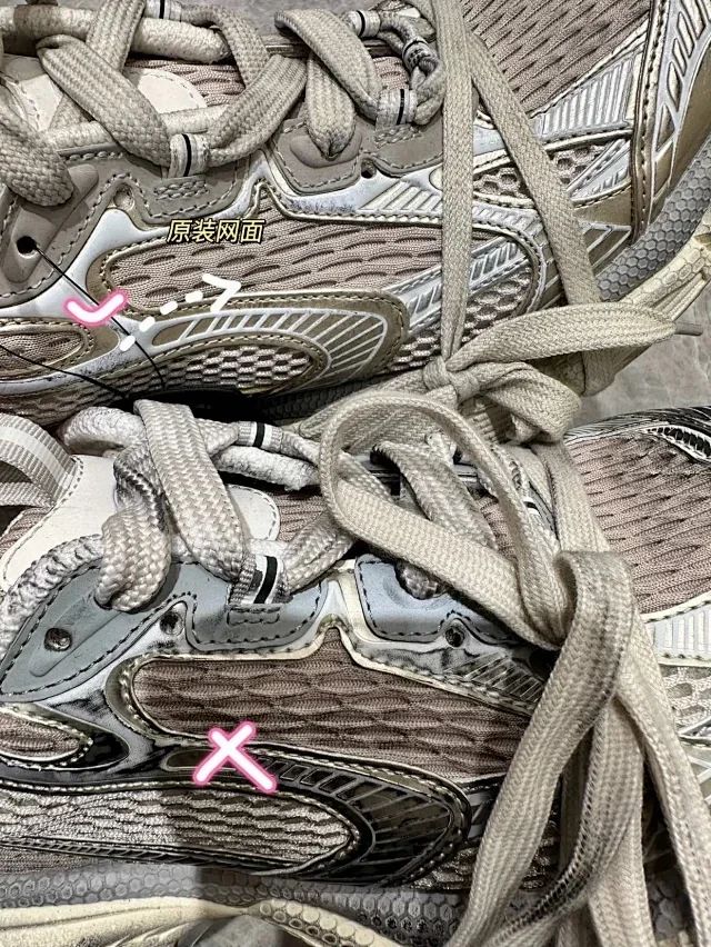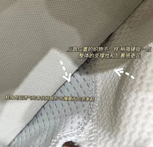 注意看它的织物纹理不完全一致哈,鞋头和鞋舌两侧采用的是纳米进口的网布,反口里和侧边的肌理都是不一样的!不是市面上的东西 区别太大了 !!