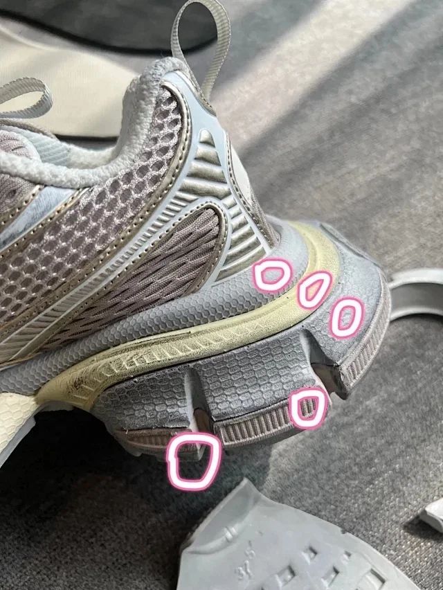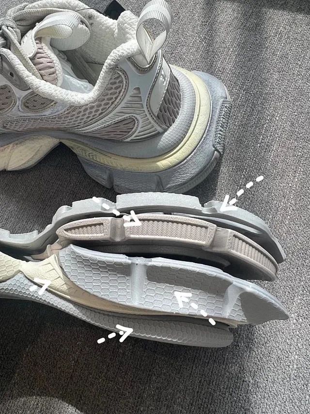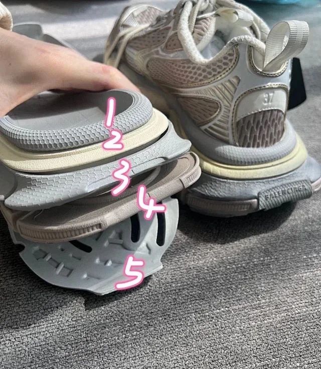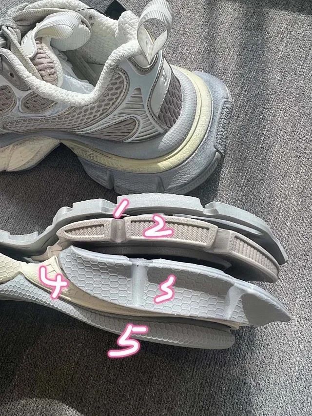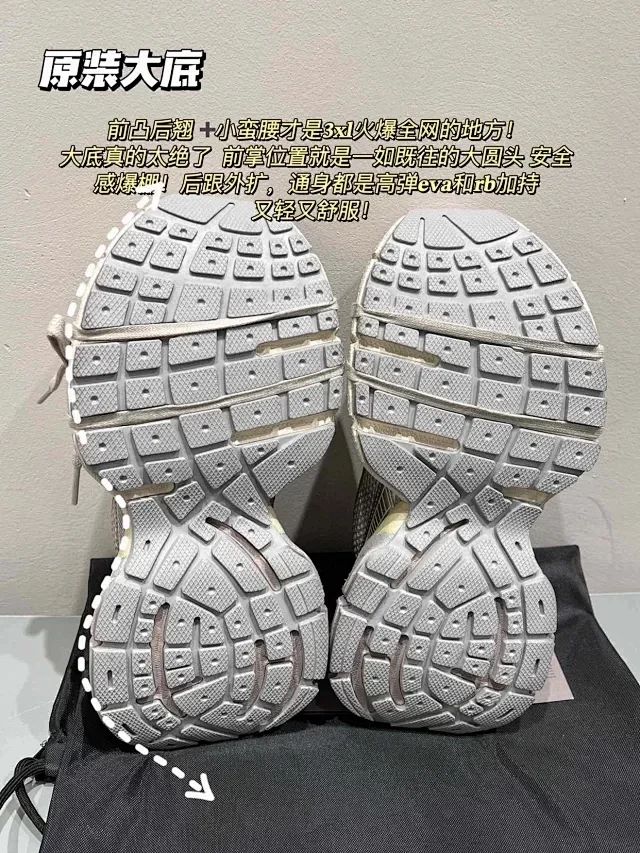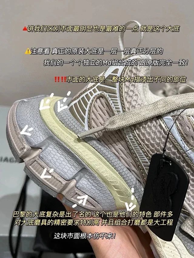 整个大底五层分离式设计 懂巴黎的都应该明白最难做最有辨识度最能区分的位置就是大底!所有的用料全部是原版 前凸后翘的弧度 过分高级 还有独一无二的小蛮腰足弓支撑 暴走都可以闭眼穿!市面版本真的一眼假 原装大底不是说仿就能仿得了的 所以那些说自己什么“原厂”的 碰到原版就直接露馅了