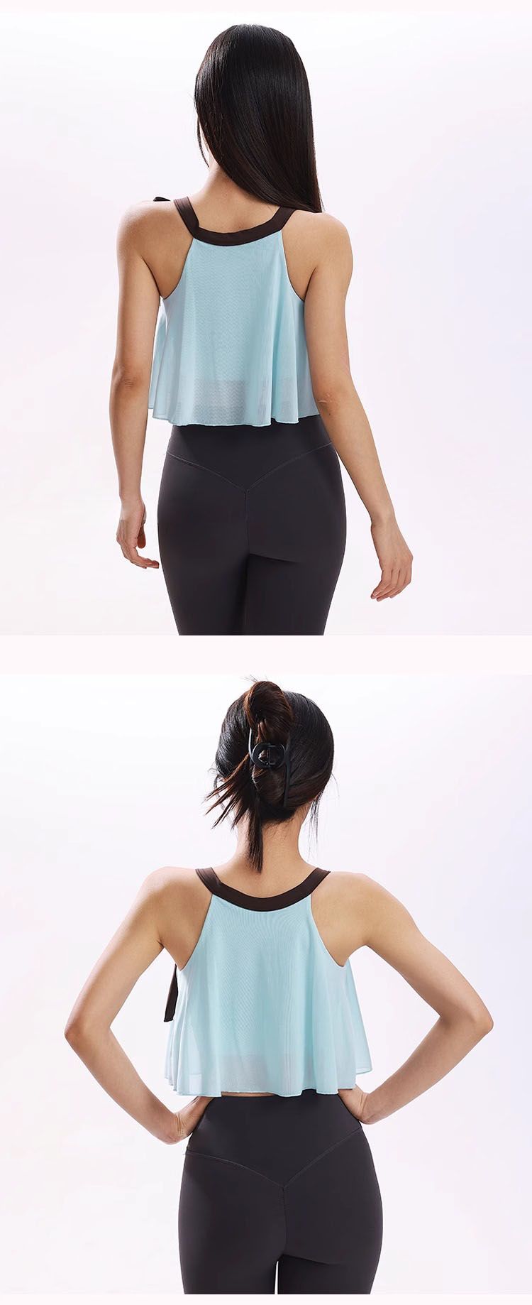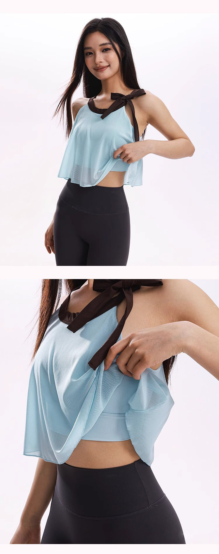 跃牌【禅语梵心】云感网纱瑜伽服背心女固定胸垫健身上衣防震跑步速干运动文胸WX3224