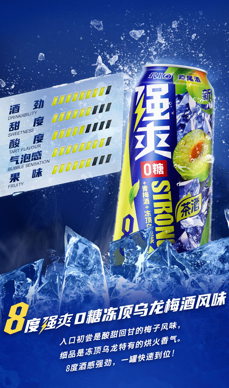 【送品牌杯】RIO锐澳预调鸡尾酒茶酒8度强爽冻顶乌龙500ml*4罐青梅酒