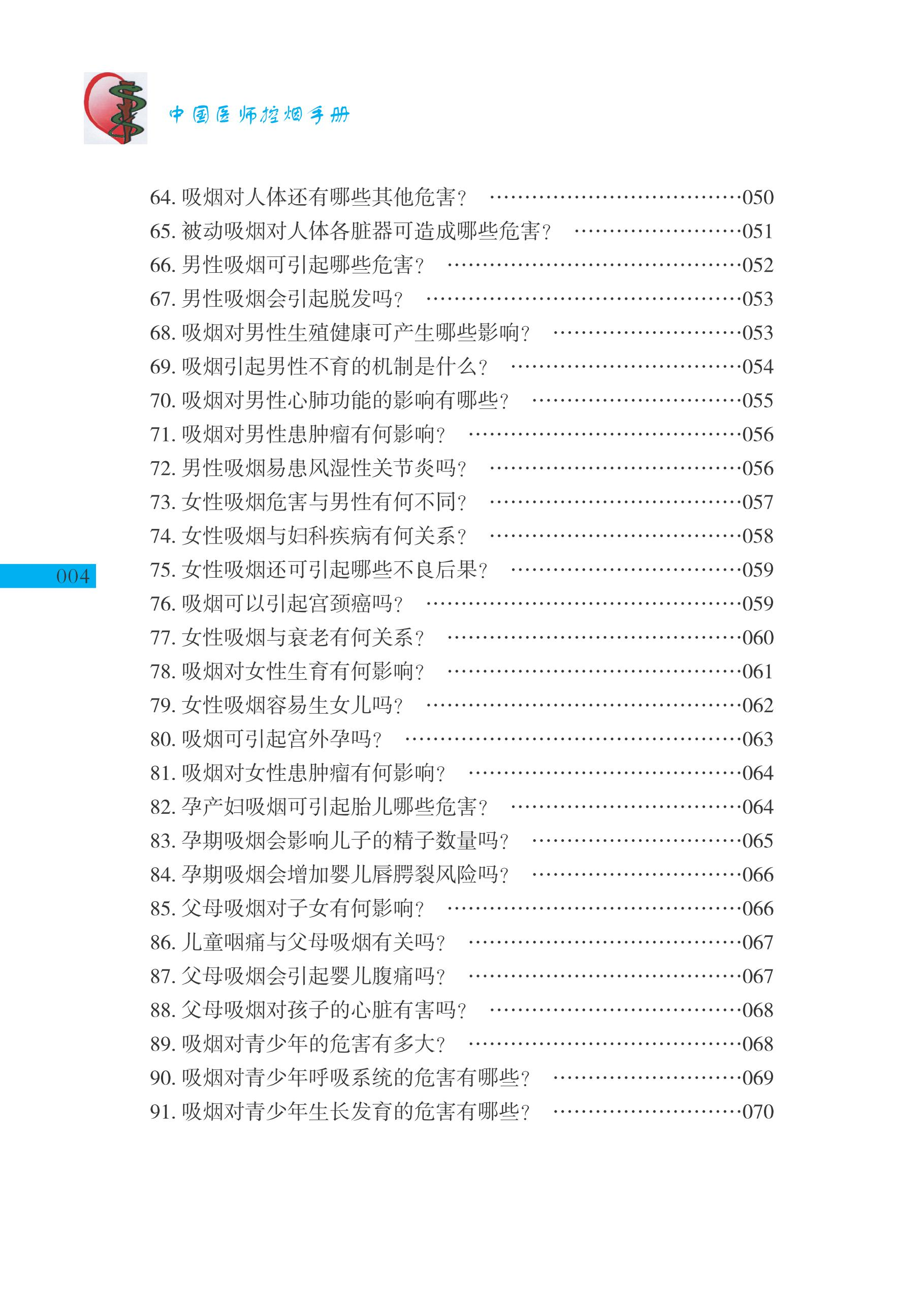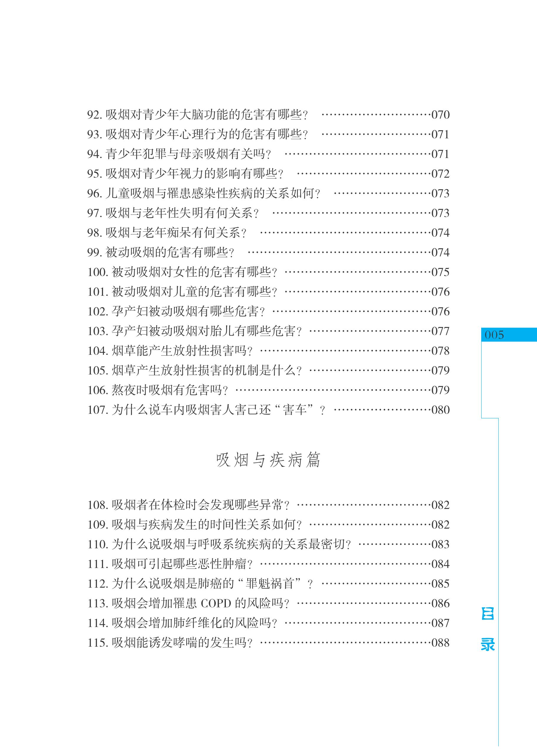 烟草危害是当今世界严重的公共卫生问题之一。医师是帮助吸烟者控烟和戒烟的主力,约70%的戒烟成功者由医师的劝告实现。但我国目前医务工作者吸烟率还很高,须先有医师吸烟率下降,才有全民吸烟率的下降。一个能以身作则拒绝烟草的医师给患者提出的简单忠告,会使戒烟率提高一倍。本书立足于控烟戒烟的责任感和紧迫感,较全面地归纳出控烟禁烟的七大类300多个知识内容,以供医师控烟禁烟学习与培训使用。