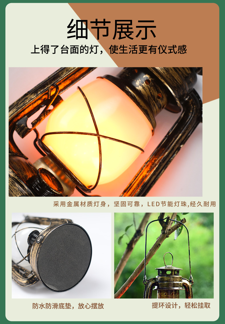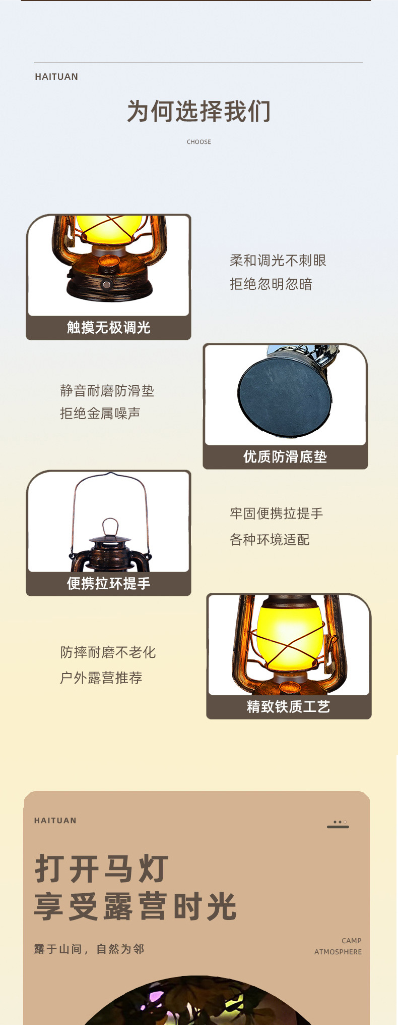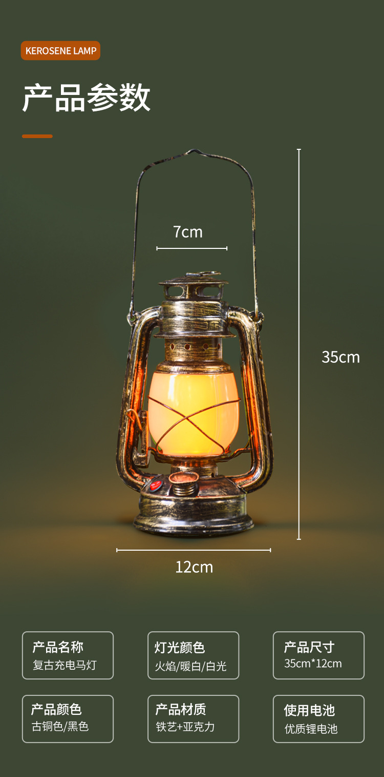 【户外露营灯】野营灯 充电复古马灯 LED多功能营地帐篷手提马灯火焰灯