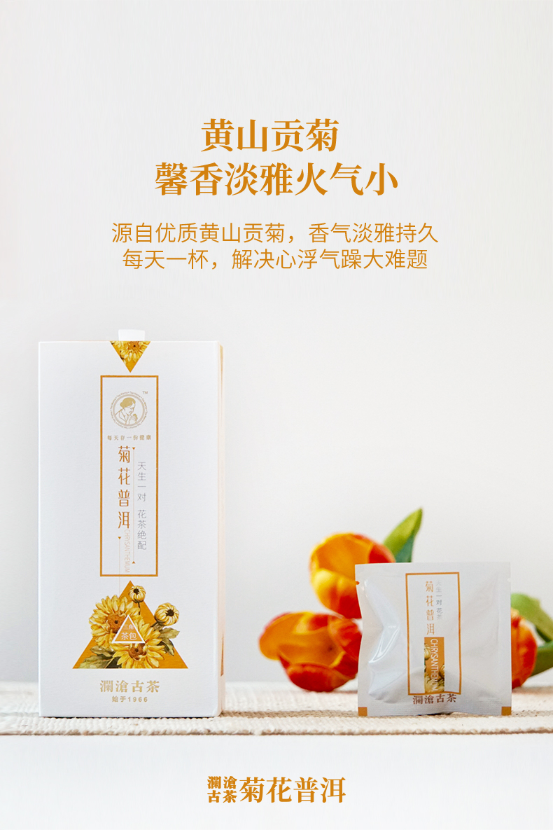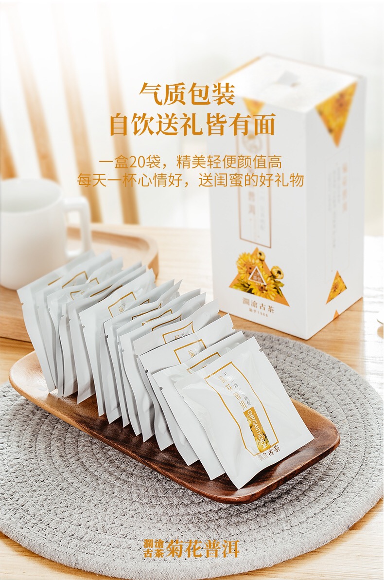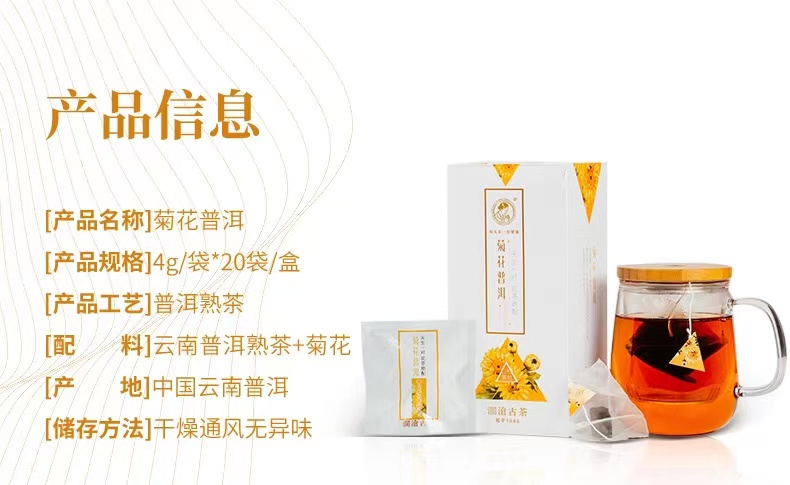 澜沧古茶 菊花普洱袋泡茶4g*20袋/盒,陈年普洱熟茶+上等胎菊