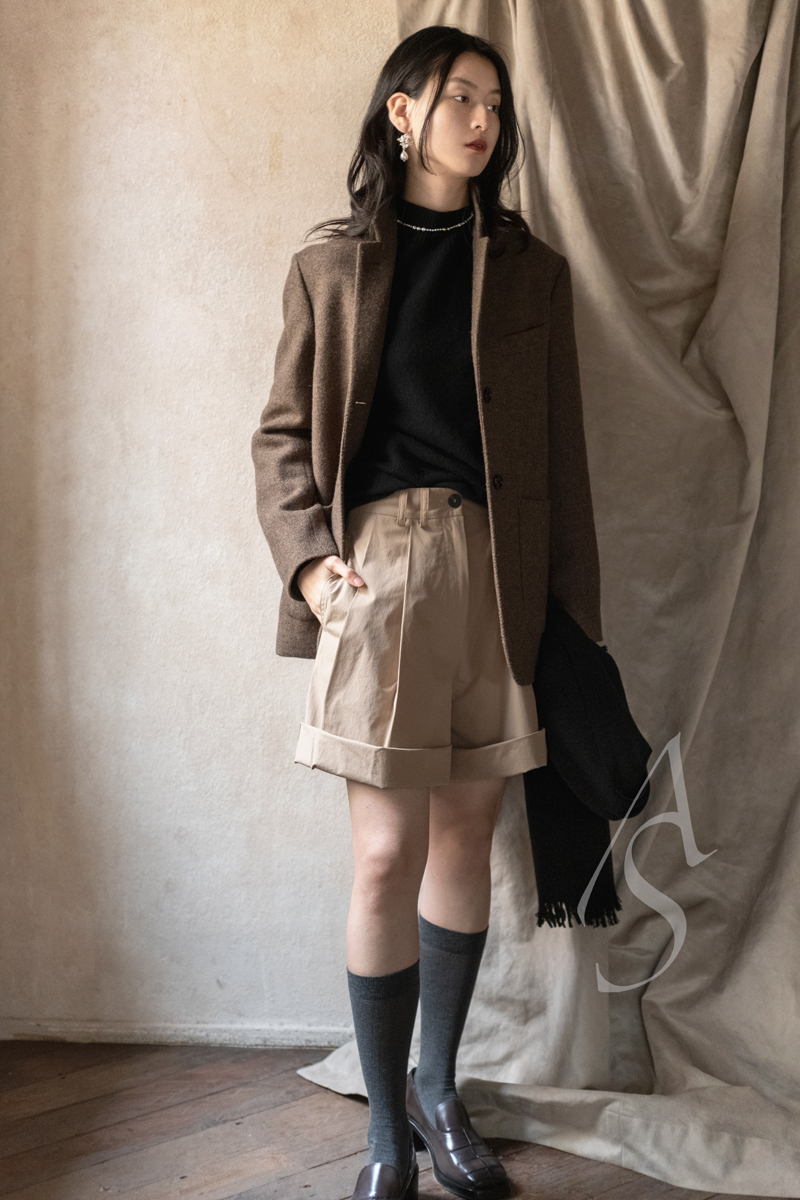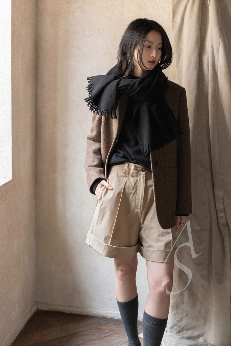 Studio Nicholson 贝壳粉/卡其色/栗红色CITO双褶棉质短裤