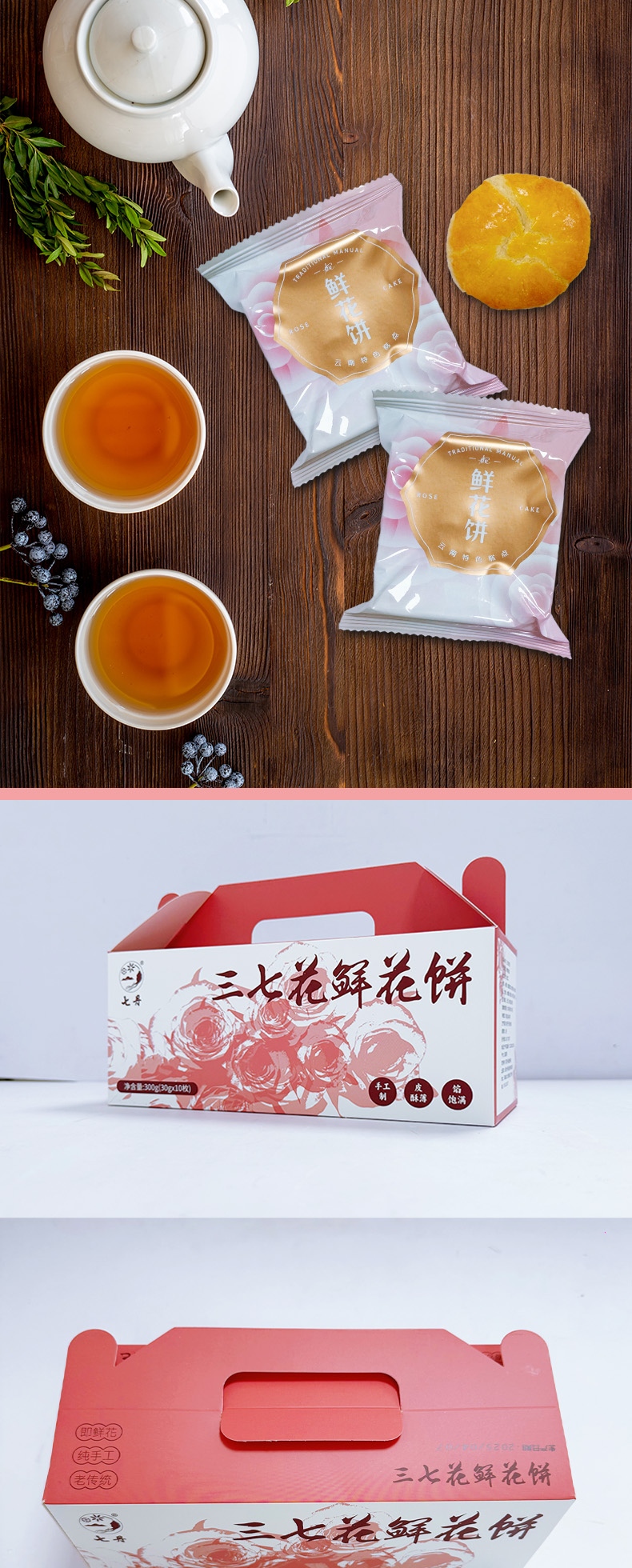 云南特色好礼【三七花鲜花饼】手工烘烤,日期新鲜,文山三七之乡源头直供玫瑰+三七花双花合流入口酥香清甜回甘不甜不腻