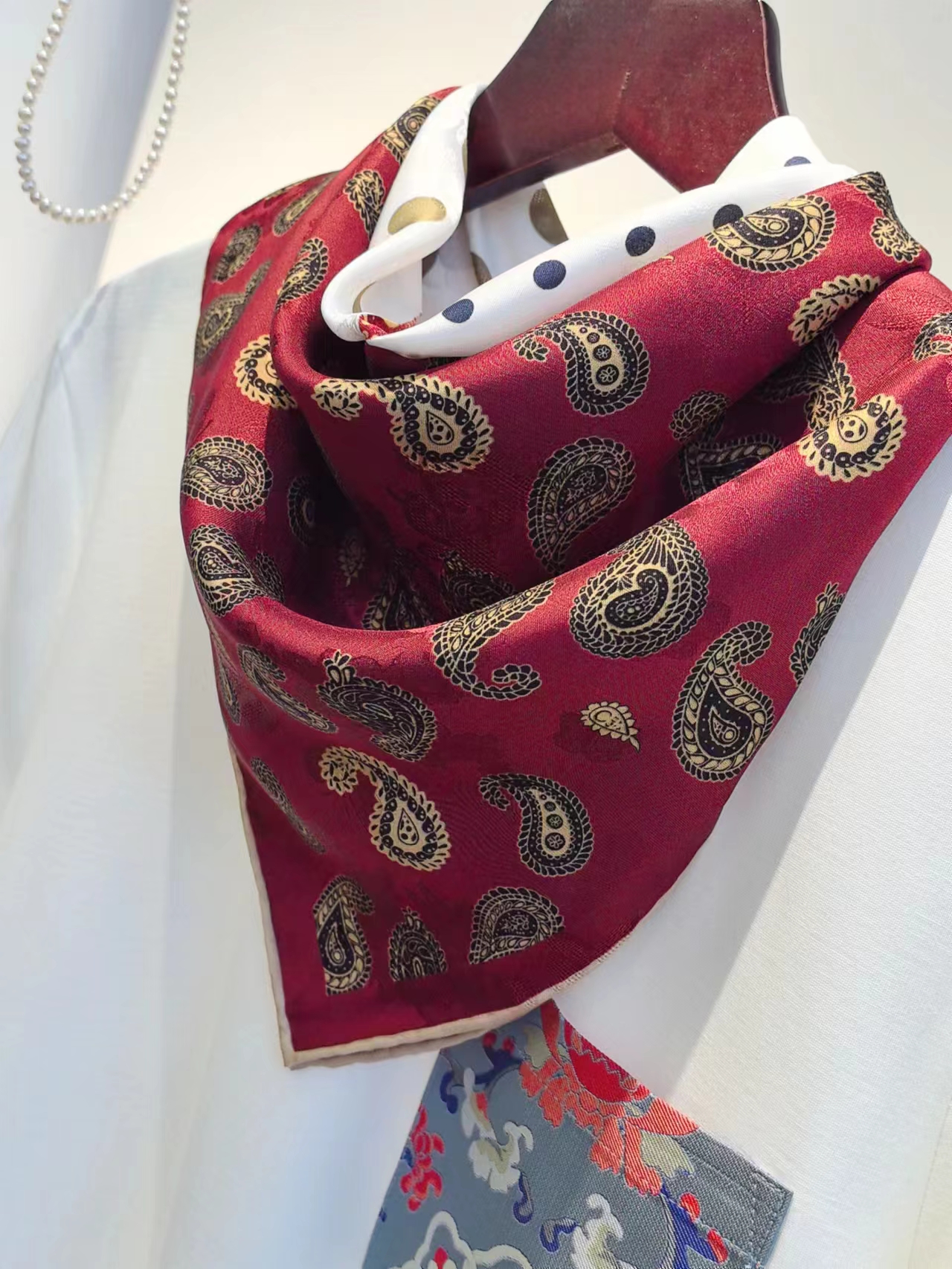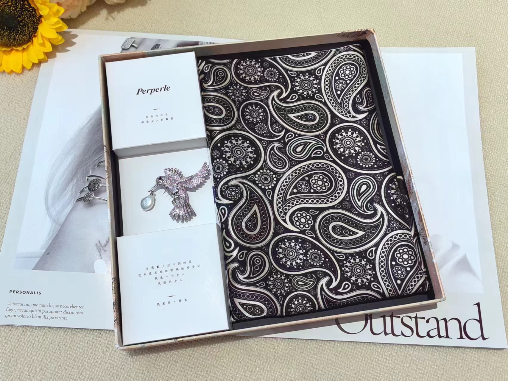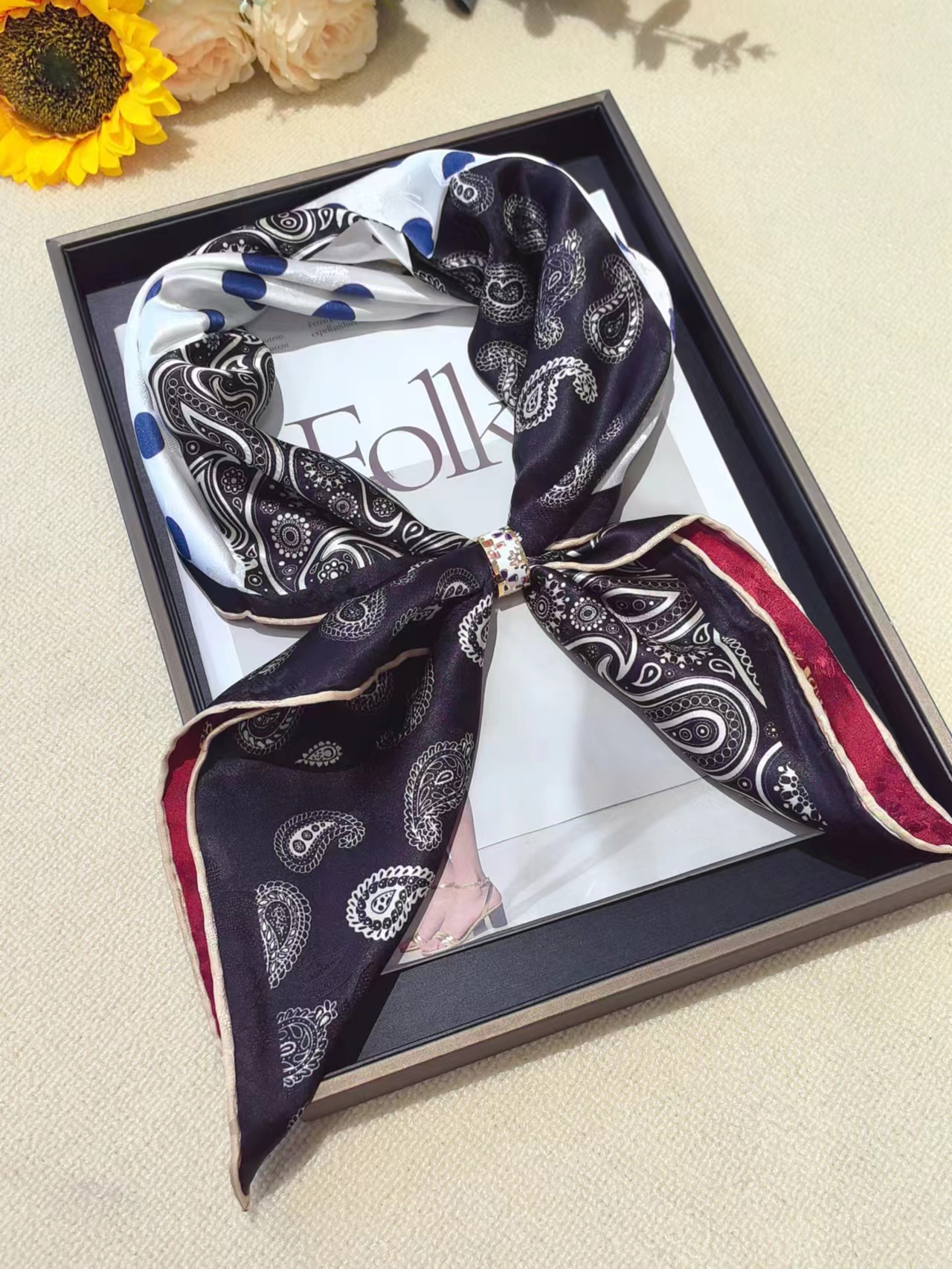 【甄珠贝·时尚高级感系列】70*70cm意大利风波点腰果花双面异色丝巾礼盒套装