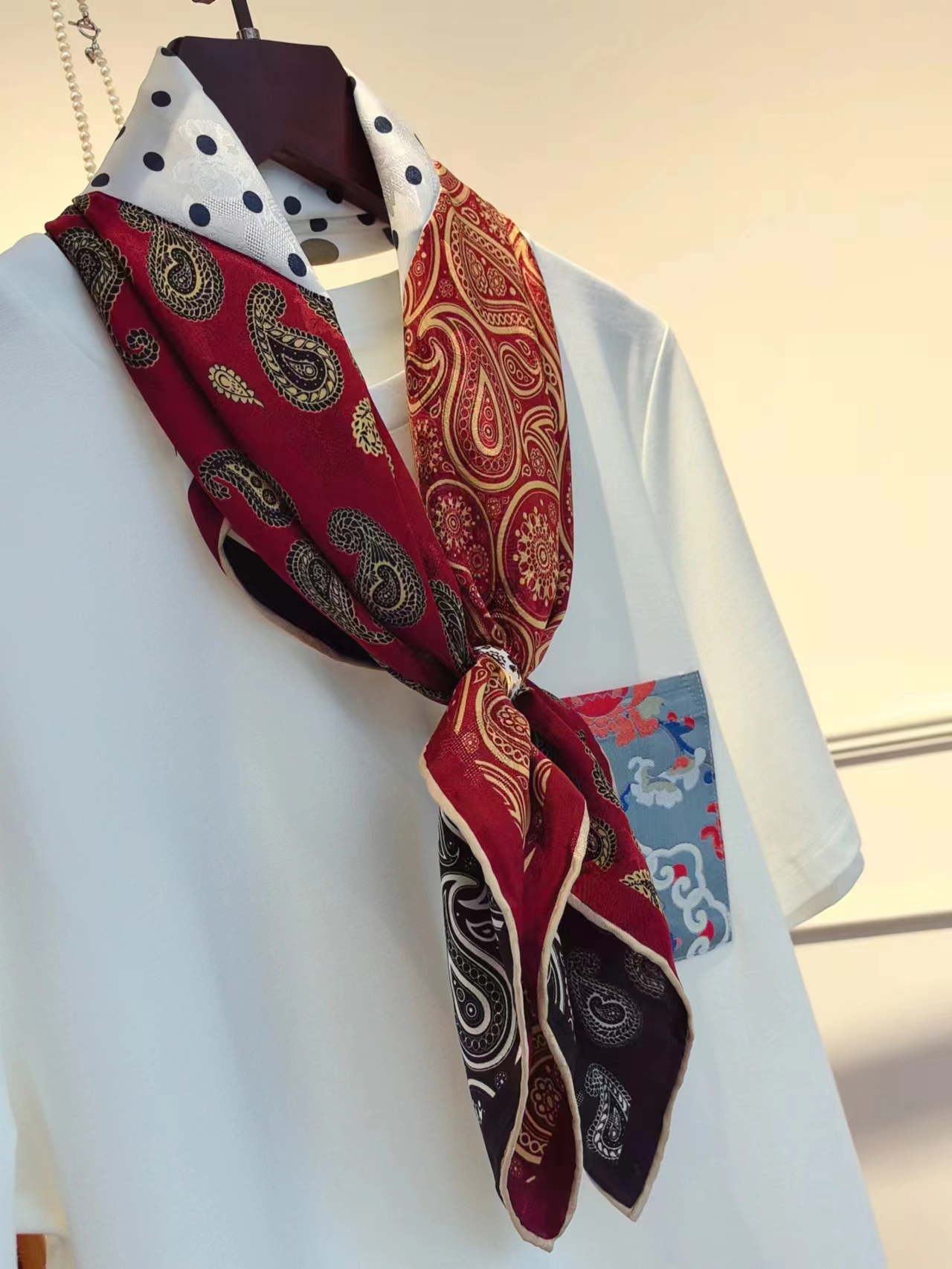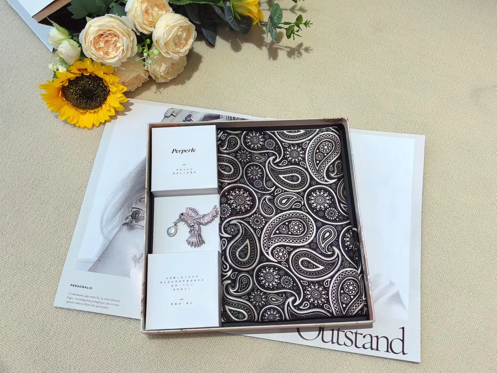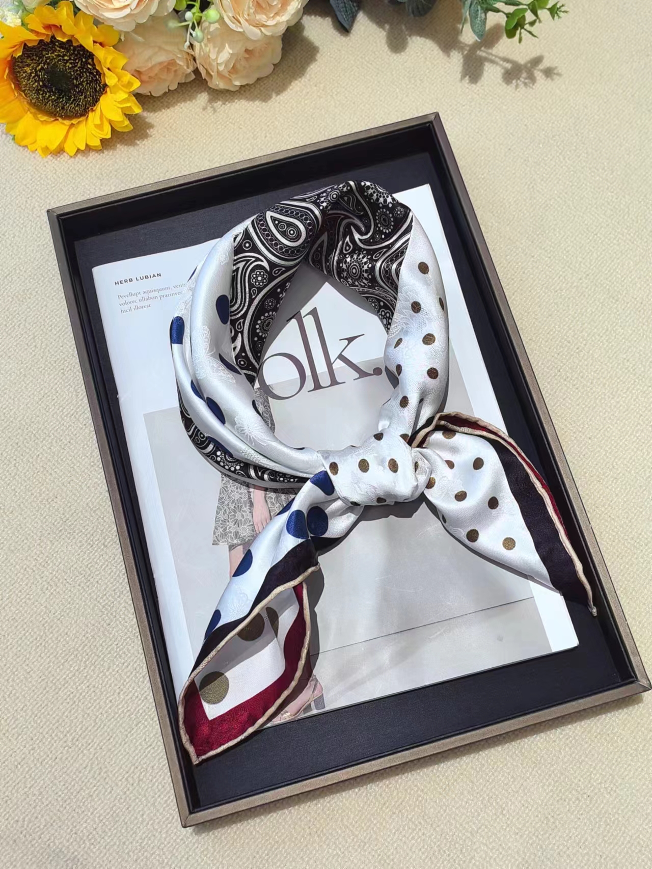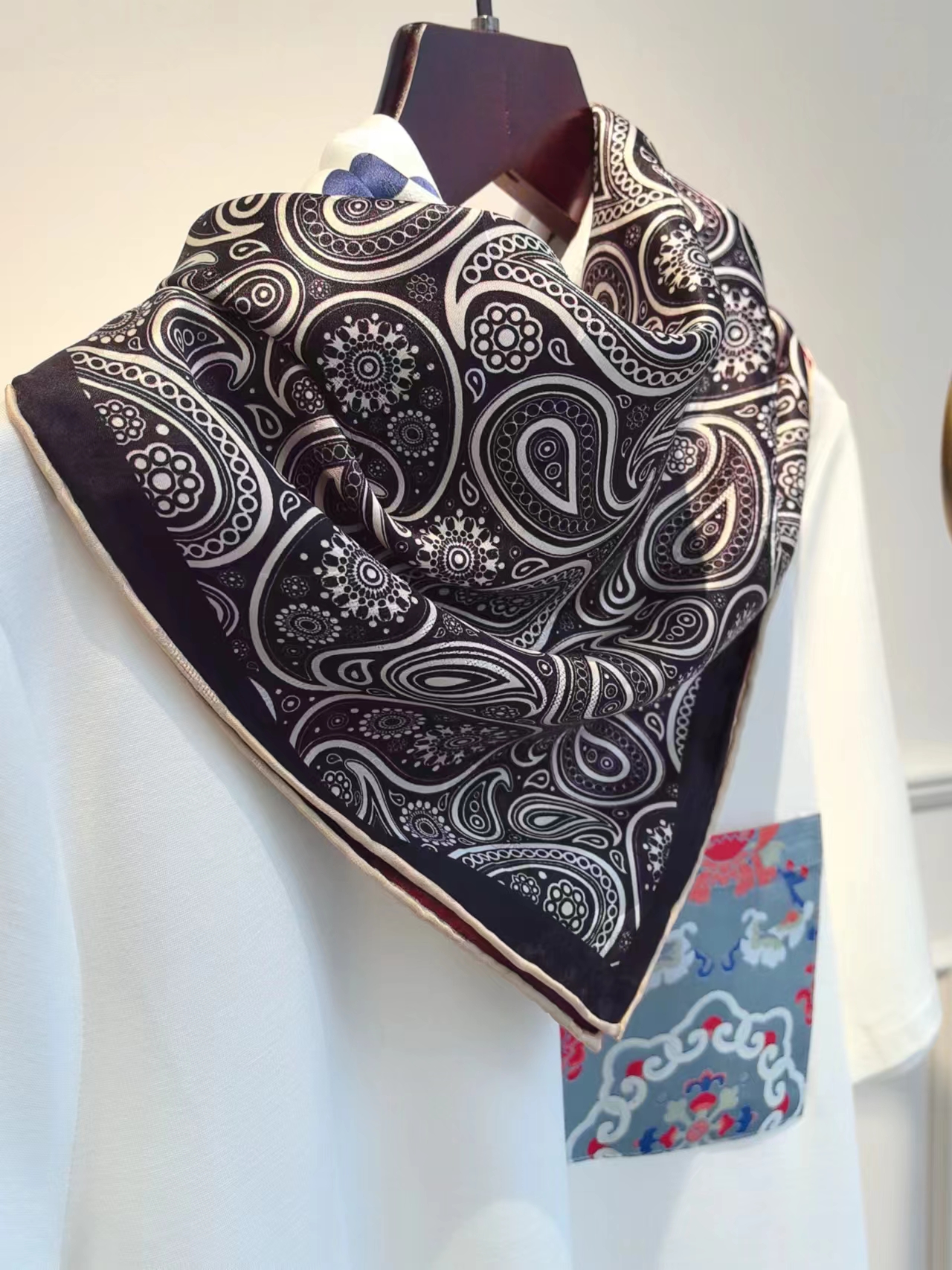 【甄珠贝·时尚高级感系列】70*70cm意大利风波点腰果花双面异色丝巾礼盒套装