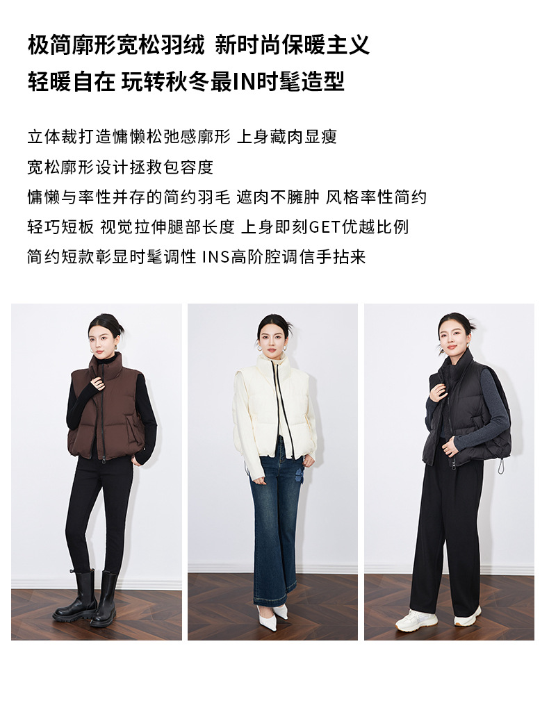 【高货wl】全新升级【铂金会员275/天猫379/差价104】(12534) 洛诗琳冬季白鹅绒立领蓬松简约休闲保暖宽松茧型羽绒马甲