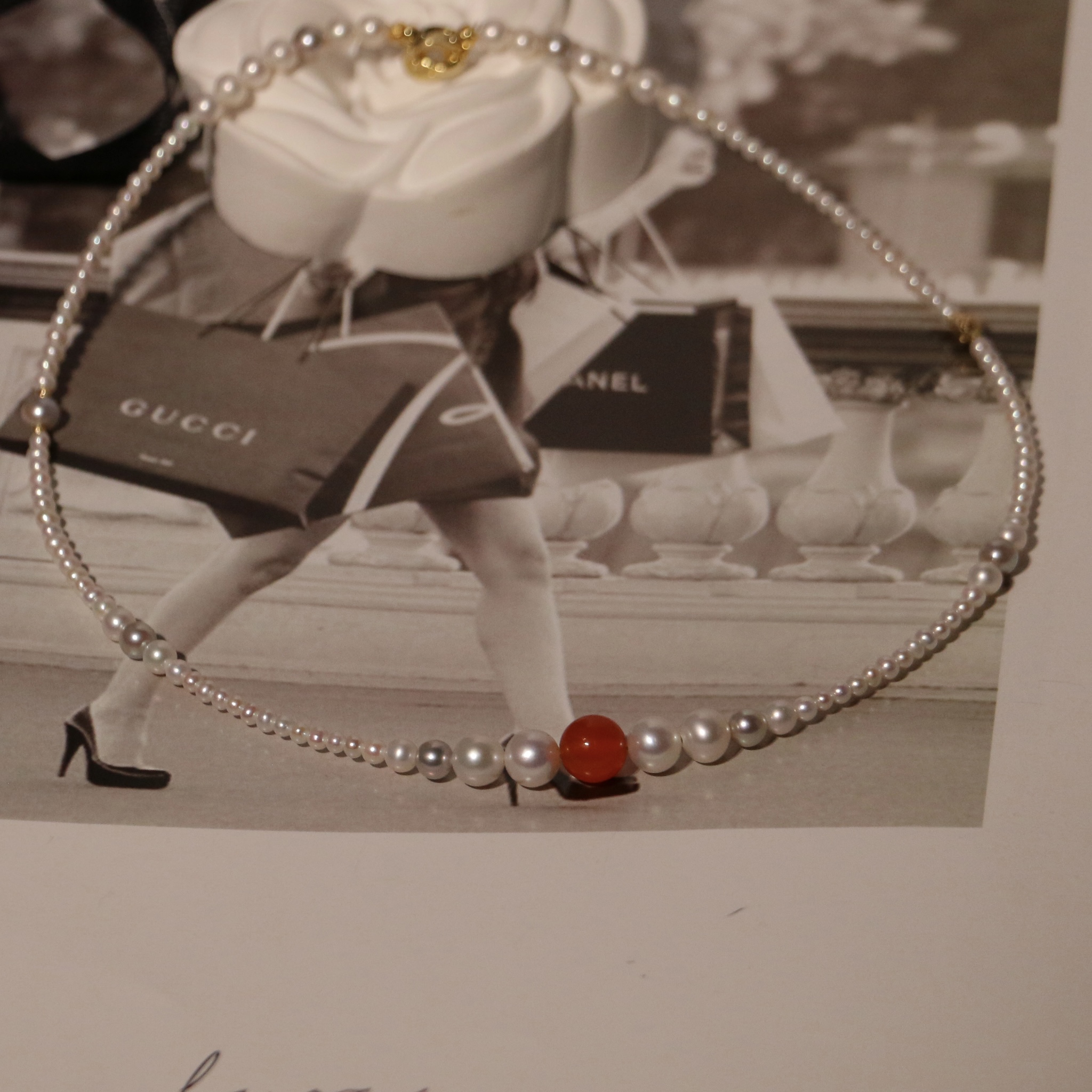 甄珠贝 新年诚意满满之作 南红3-8mm +珍珠3-4mm 项链