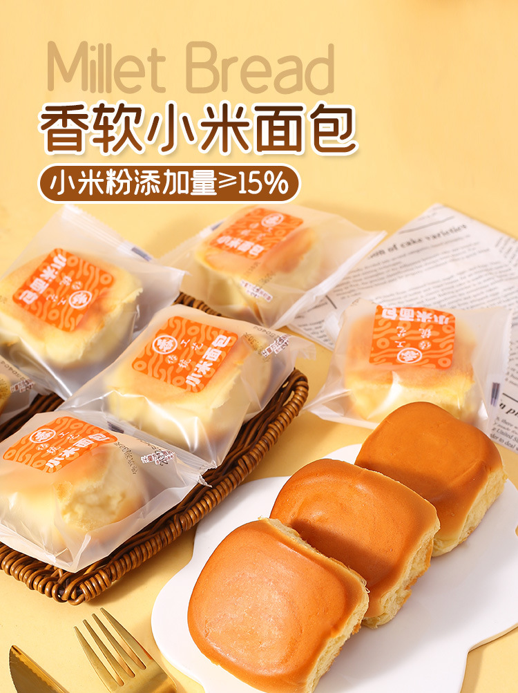 【个个饱满细腻,清甜不干噎】小米面包老式食品糕点 早餐速食整箱代餐 零食休闲下午茶小吃-QQ