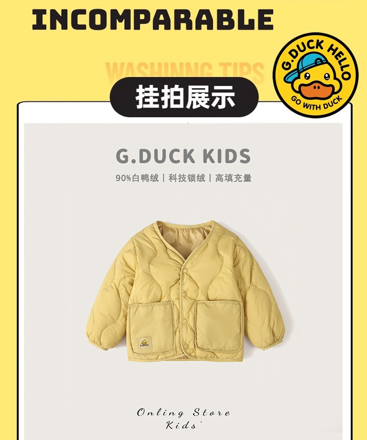 【科技锁绒,高填充量】新款小黄鸭儿童轻薄羽绒服 内胆宝宝外套 中小童保暖男女童 秋冬外套-QQ