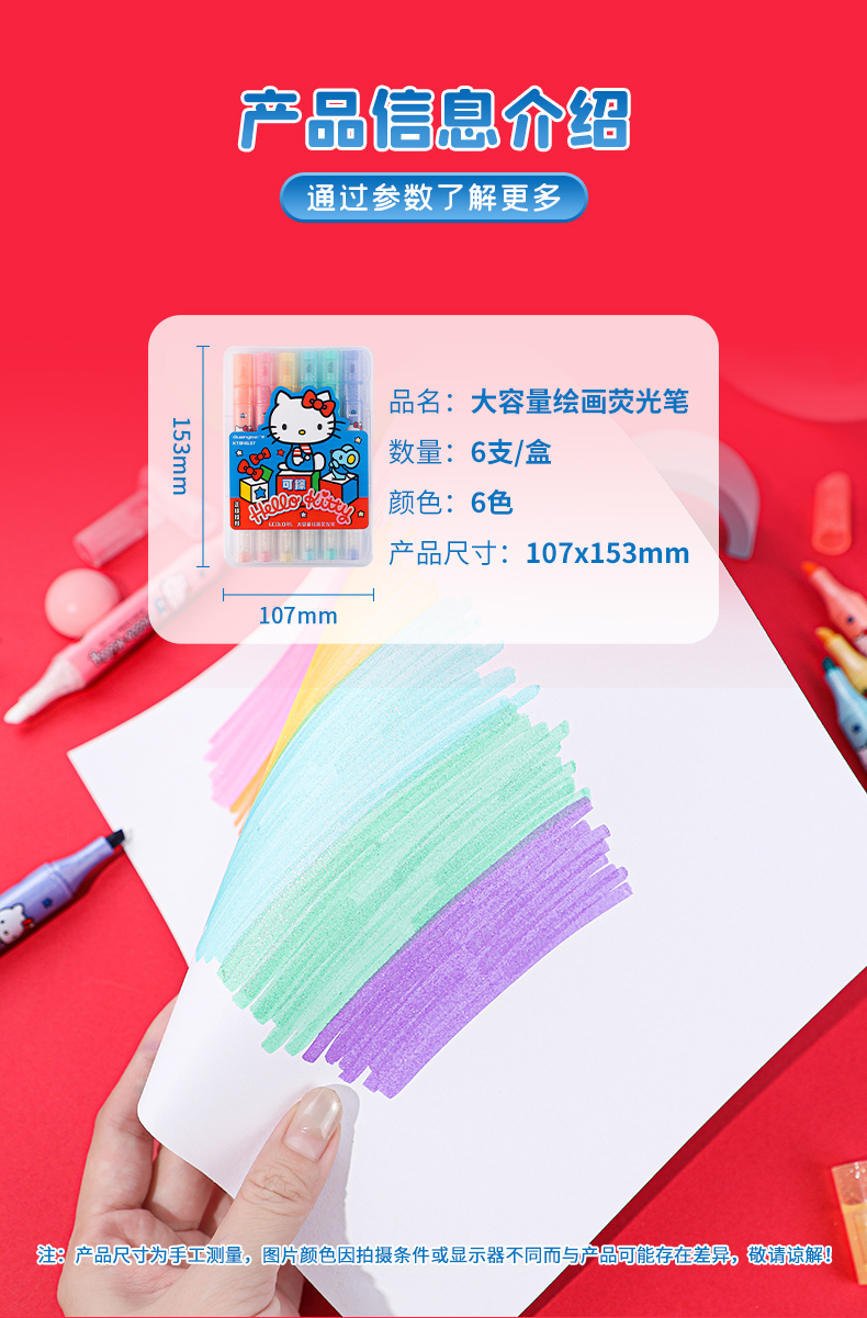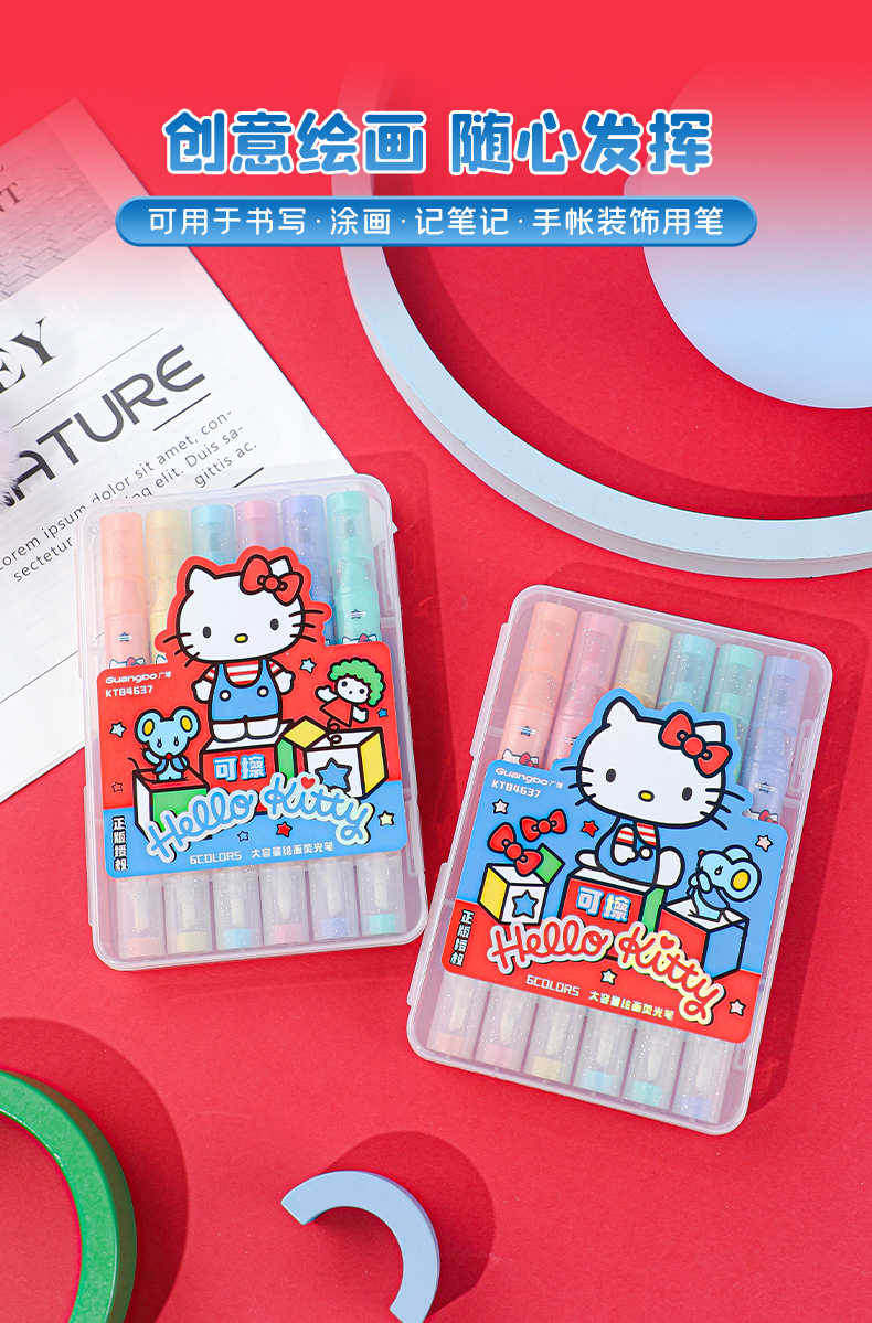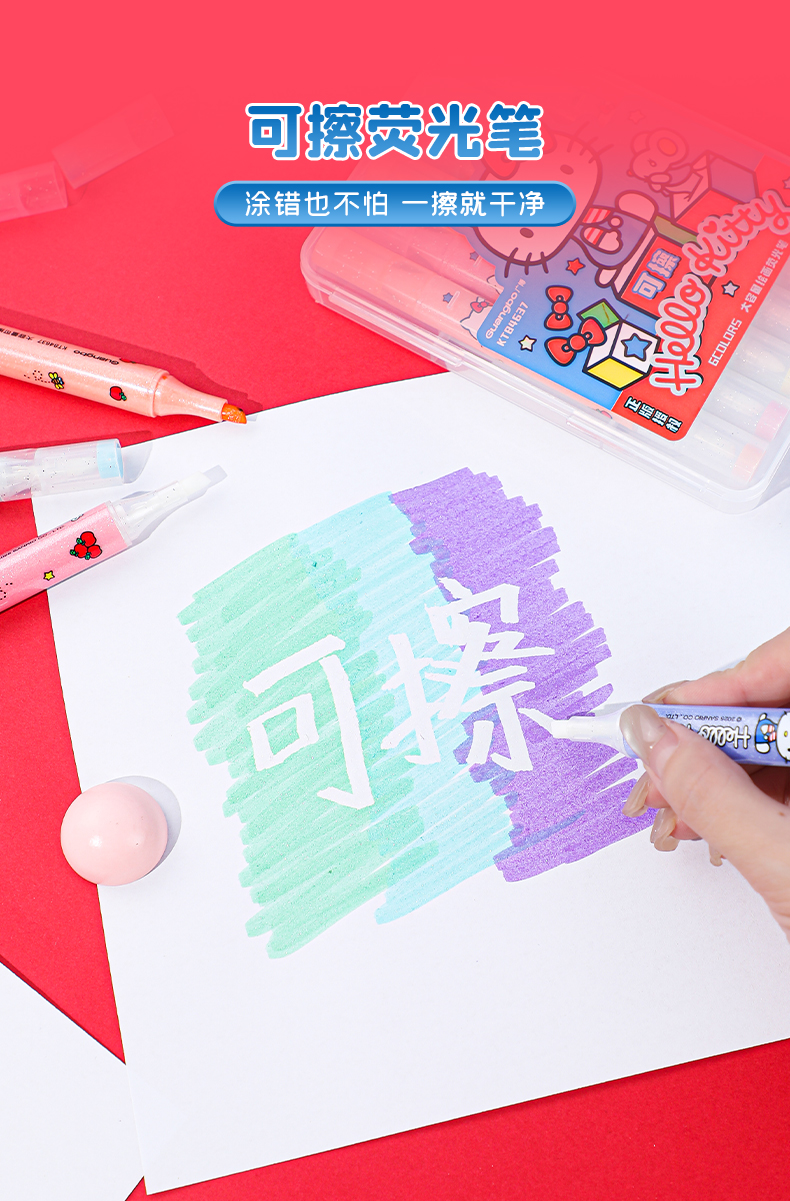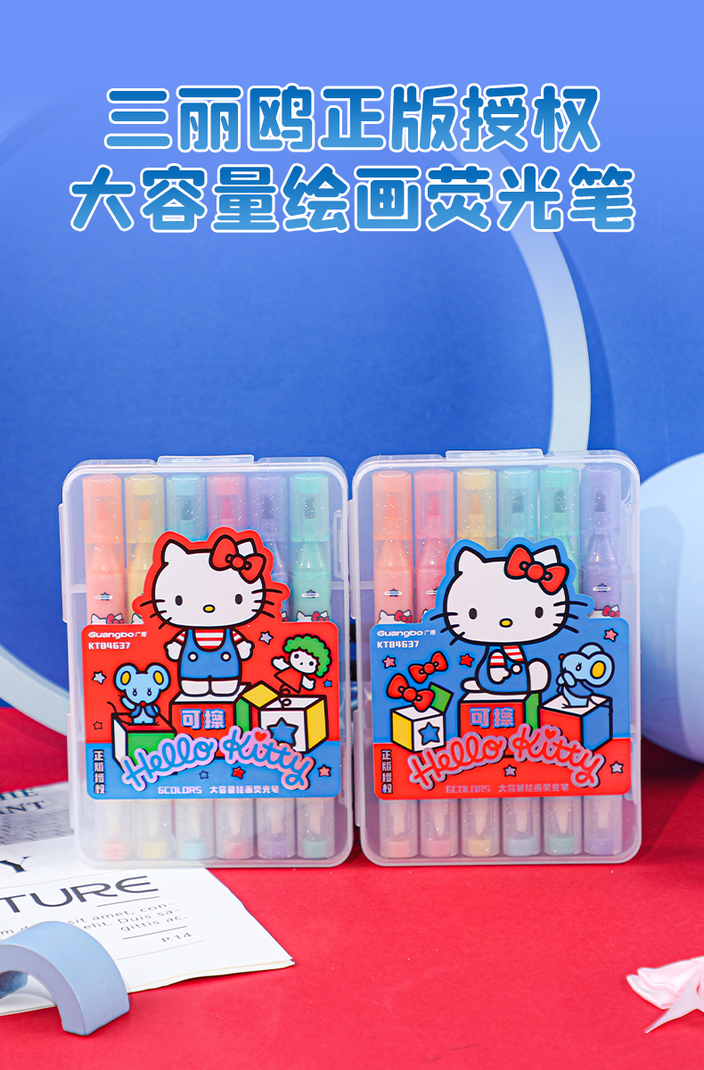 【广博】三丽鸥大容量可擦荧光笔闪光高颜值ins学生用彩色划重点笔