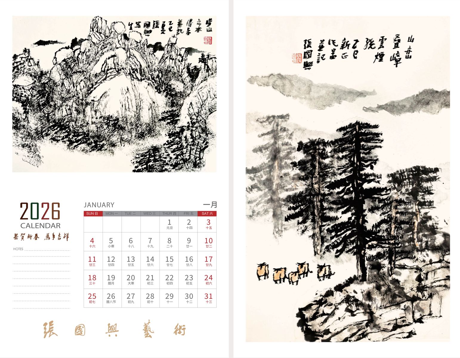 张国兴先生应菜头叔邀请特别创作“马年吉祥”画作,配以张国兴先生24幅精品作品编辑成册,出版印刷了2026年马年吉祥新年台历。