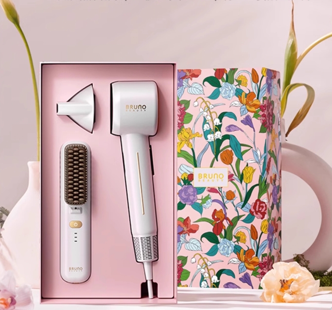 日本BRUNO博鲁诺秘境礼盒(吹风机+直发梳)粉