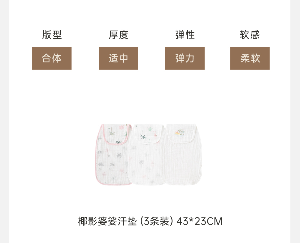 【商场同款】英氏婴幼儿吸汗巾四季可用小宝宝垫背巾7A抗菌3条装
