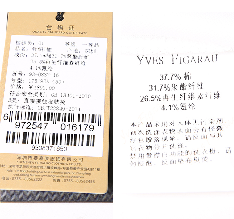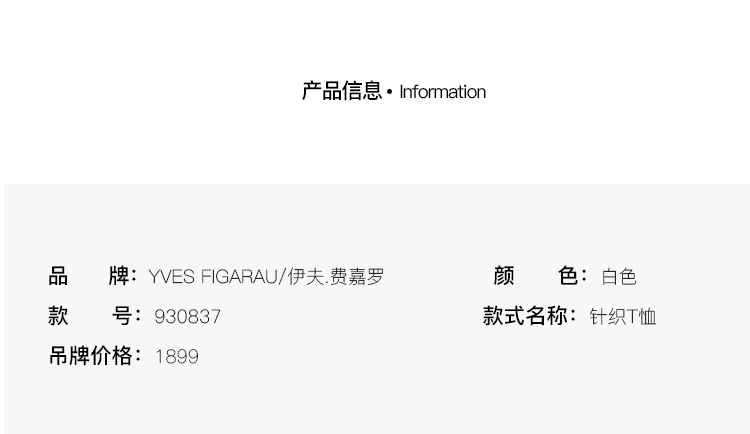YvesFigarau伊夫·费嘉罗新品休闲短袖T恤930837