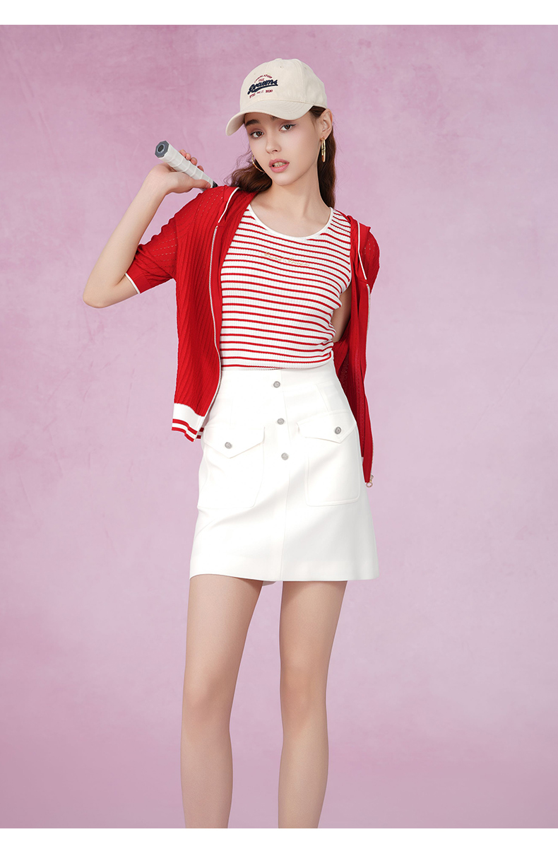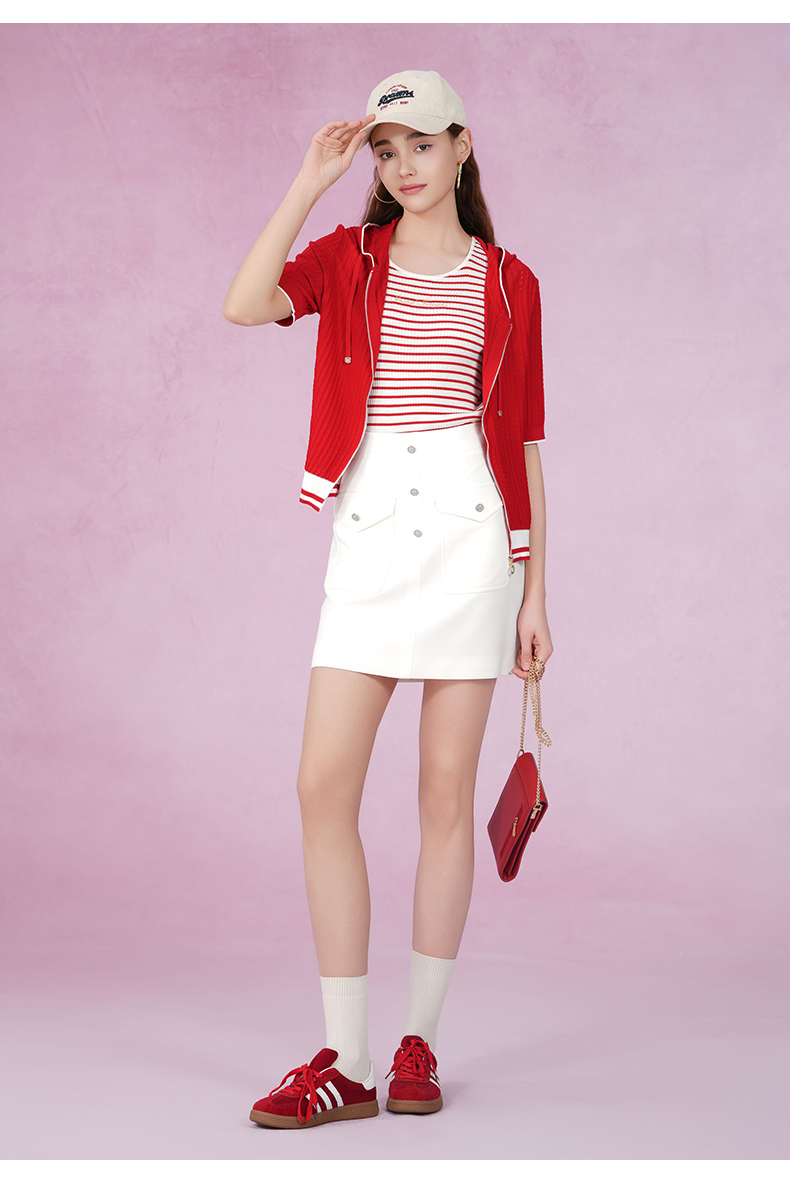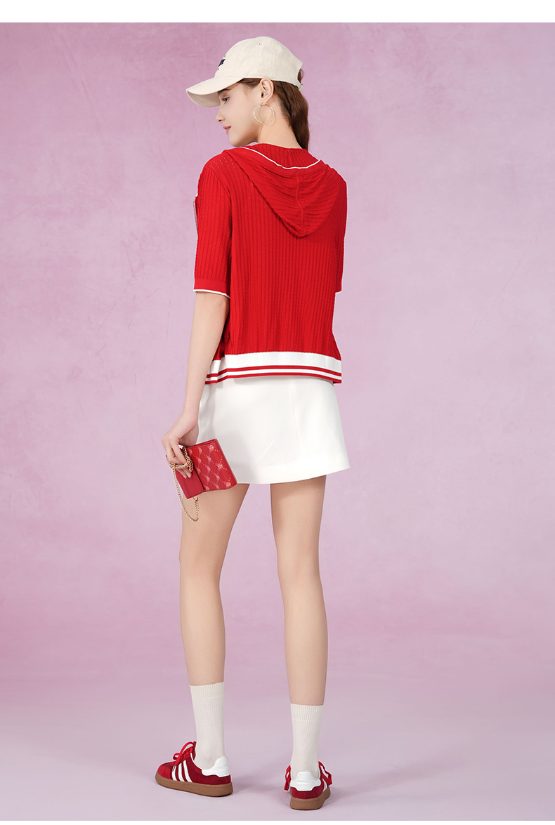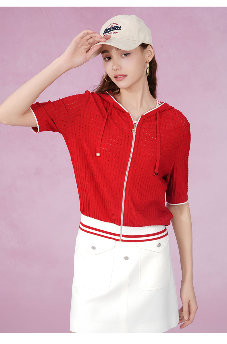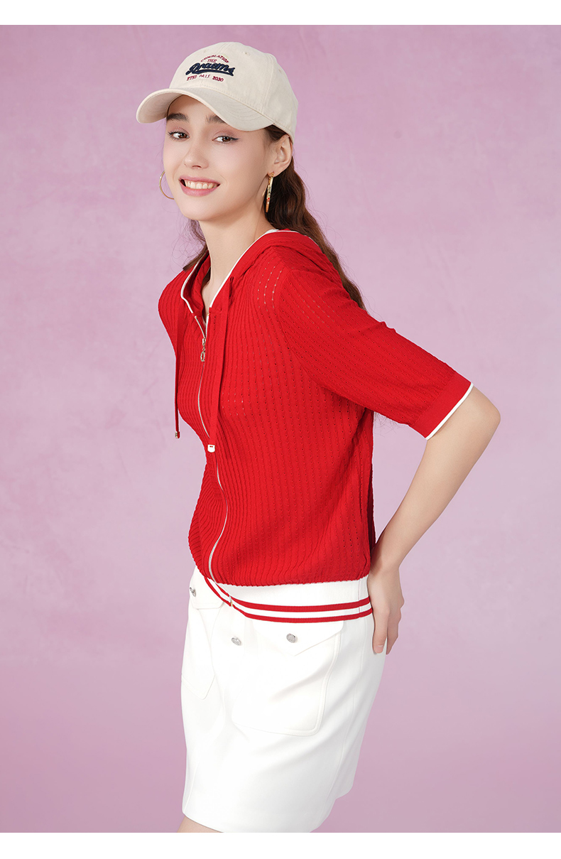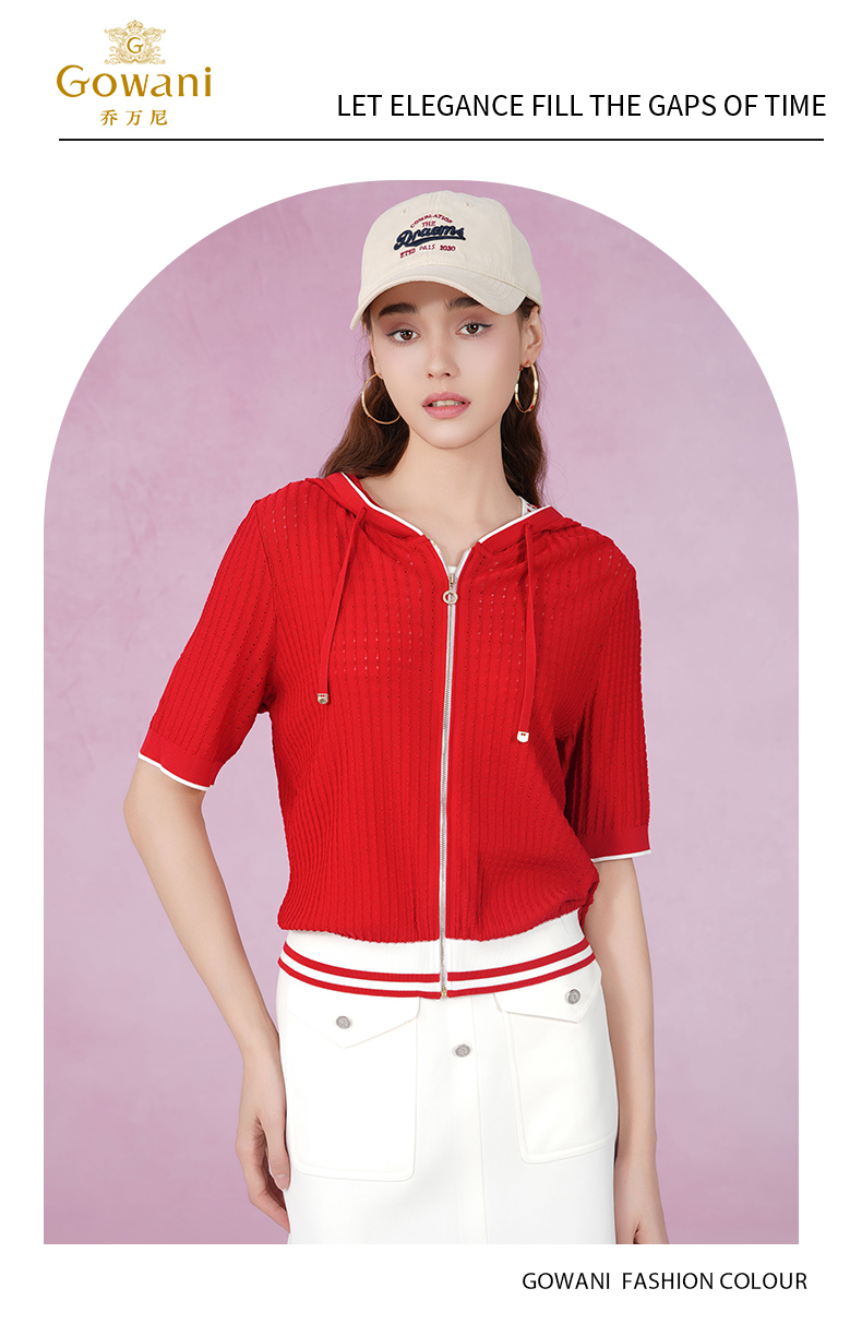 乔万尼针织衫女夏短袖新款减龄连帽设计EM2M896