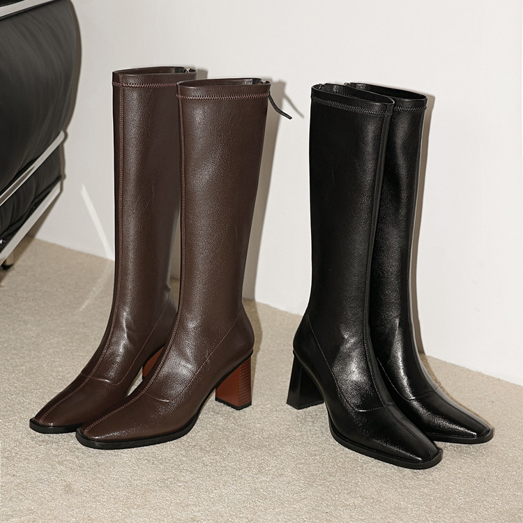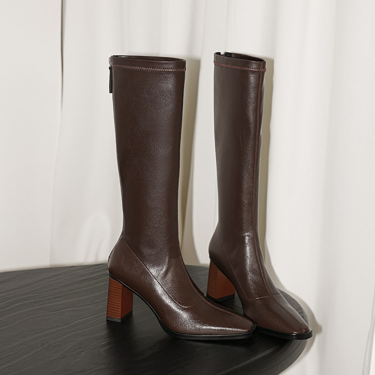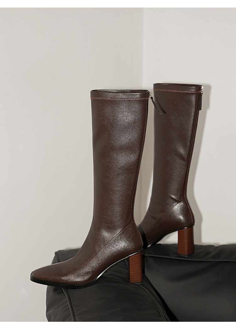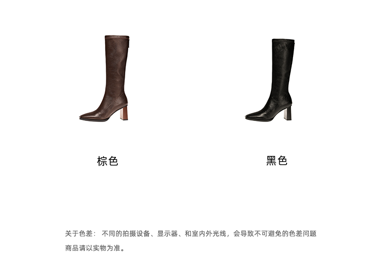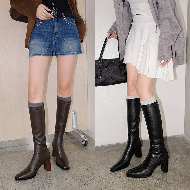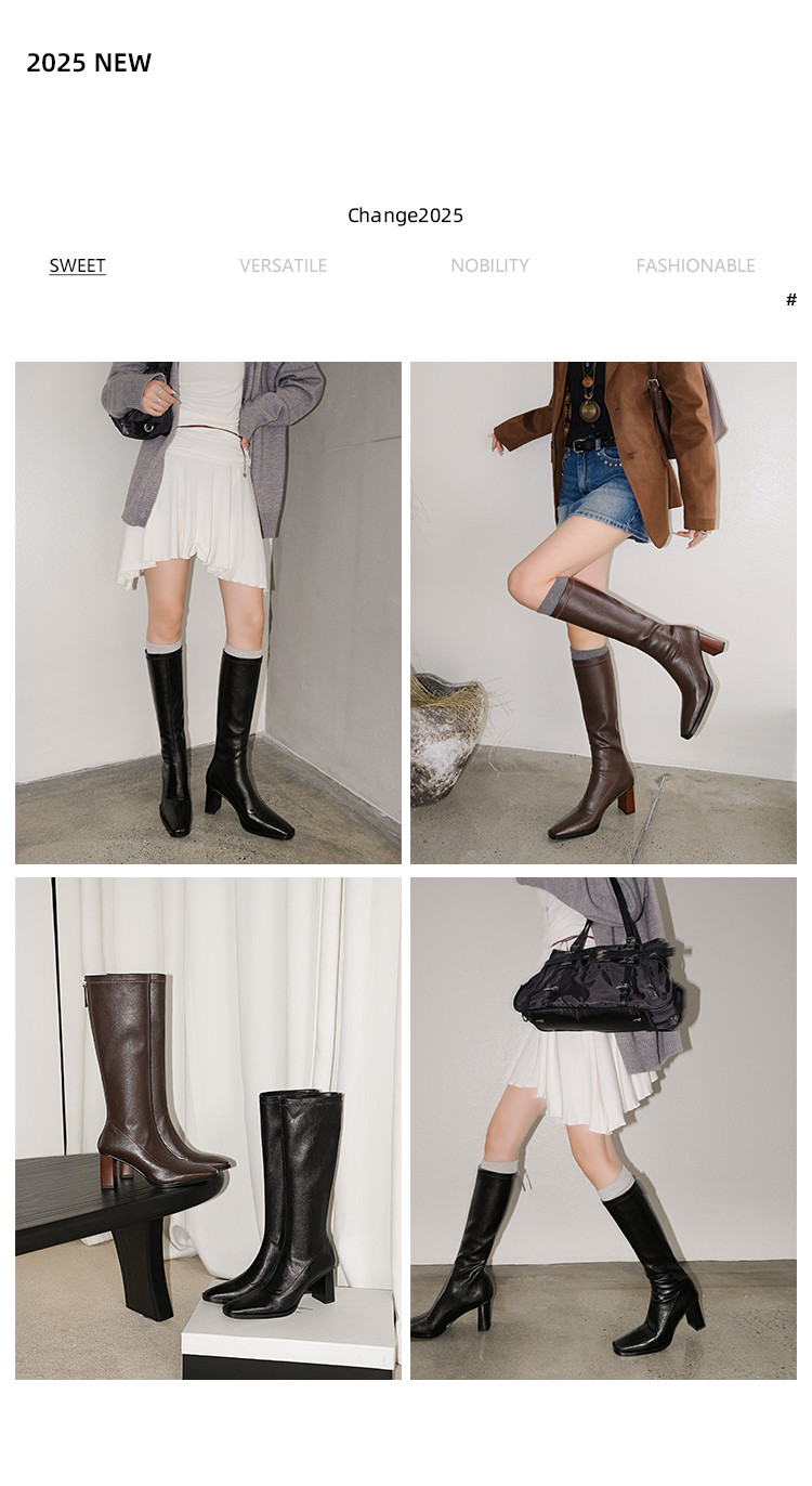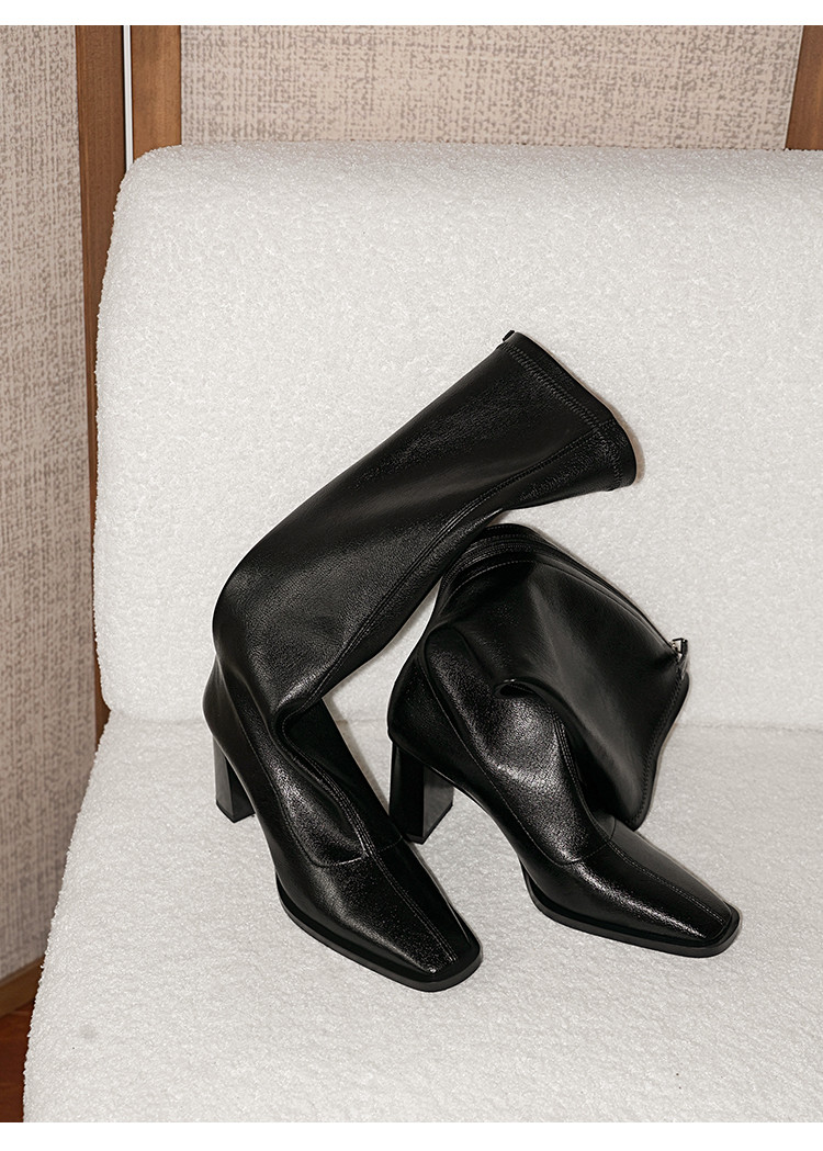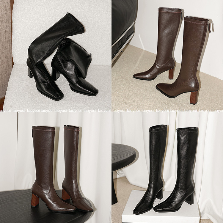 【预售7天】新款方头粗跟长筒靴女高跟气质中筒骑士靴时装瘦瘦女靴XDD&D-3569