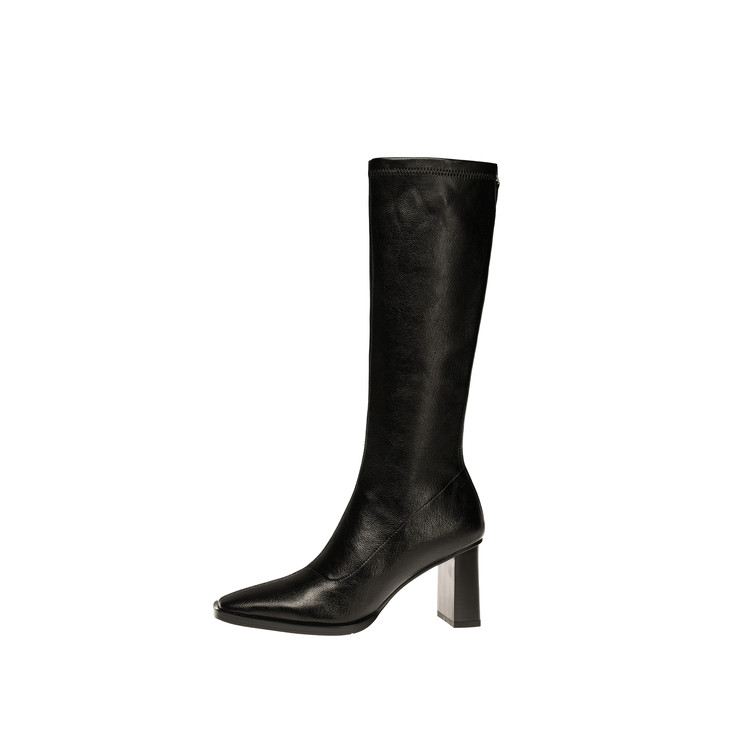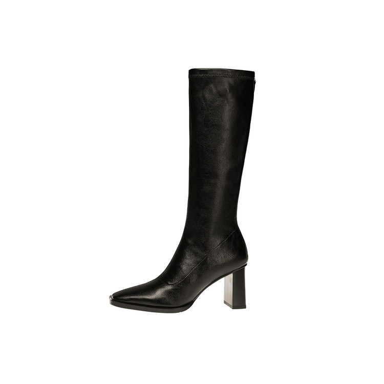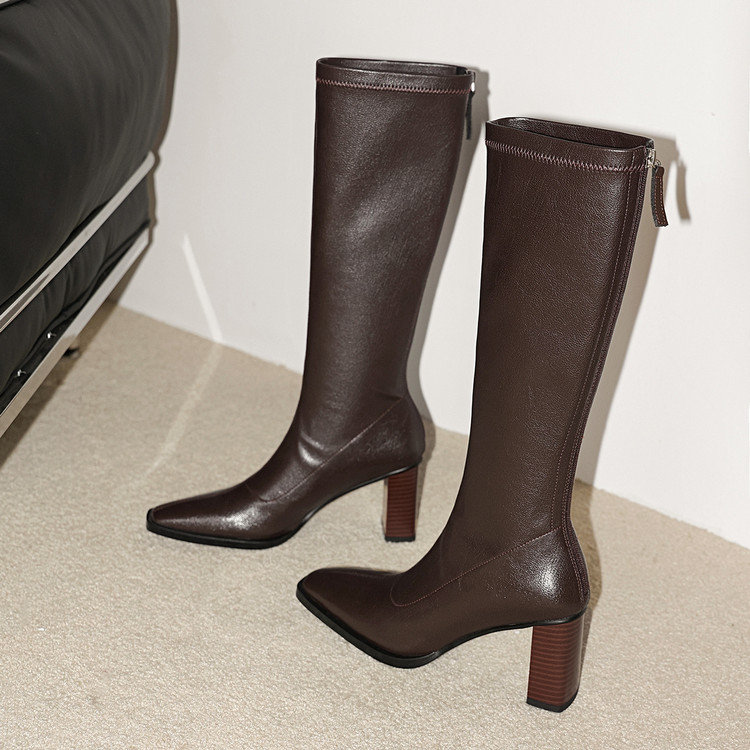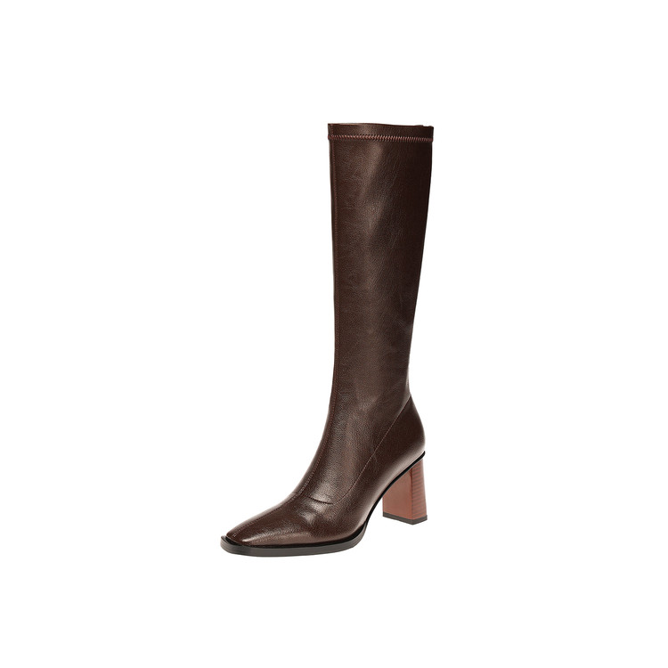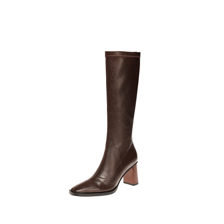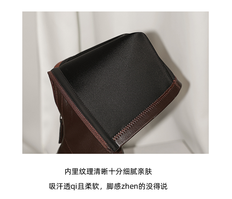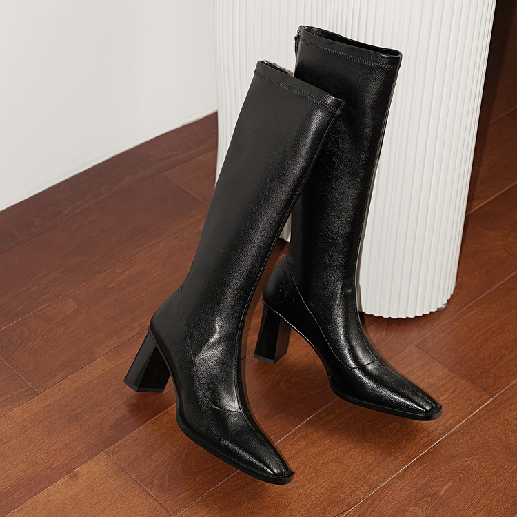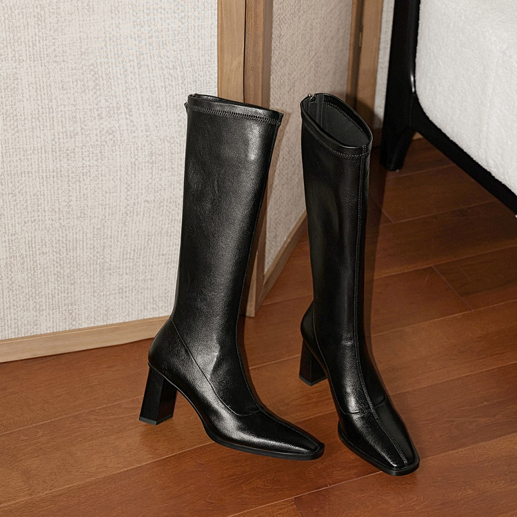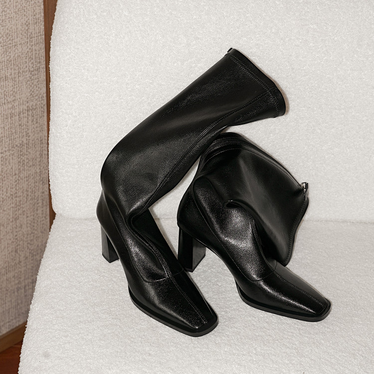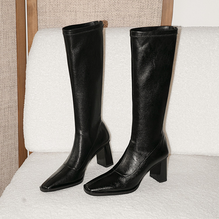 【预售7天】新款方头粗跟长筒靴女高跟气质中筒骑士靴时装瘦瘦女靴XDD&D-3569