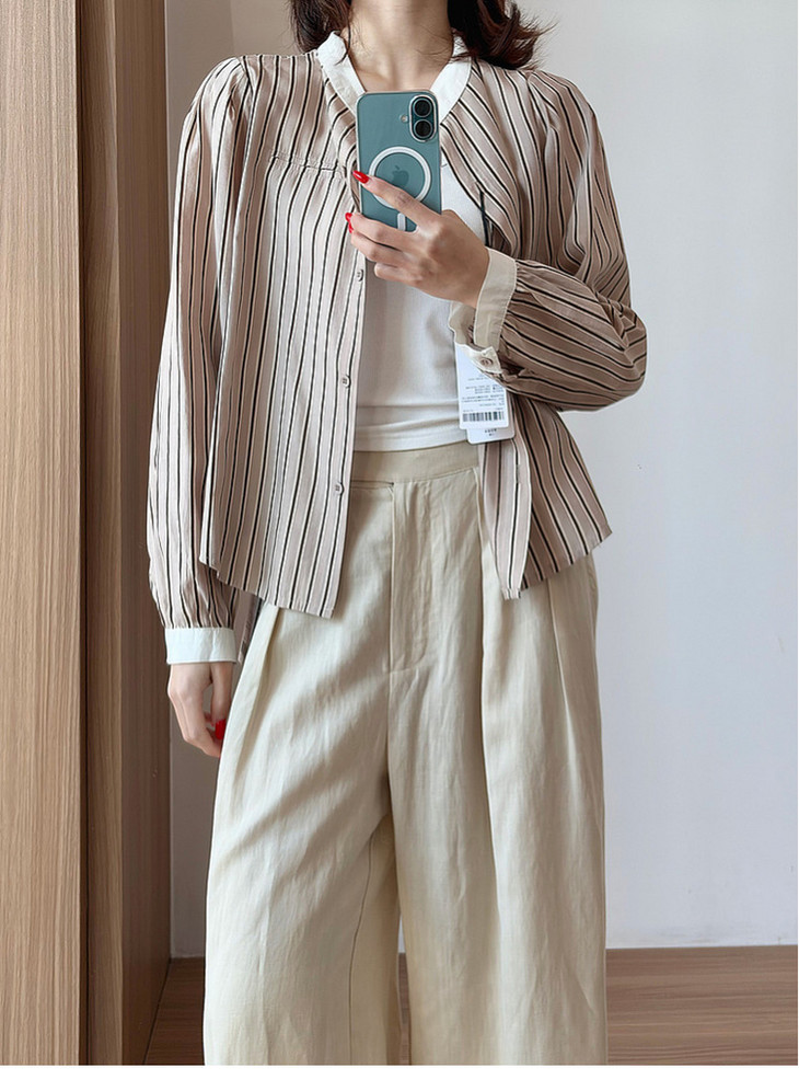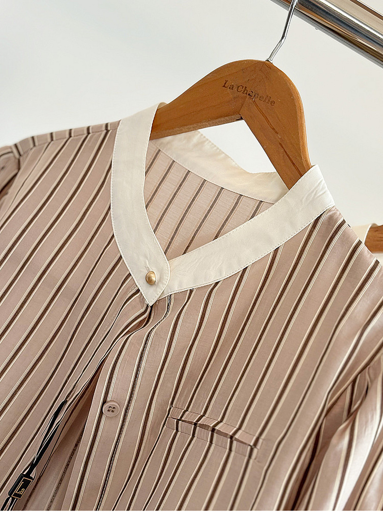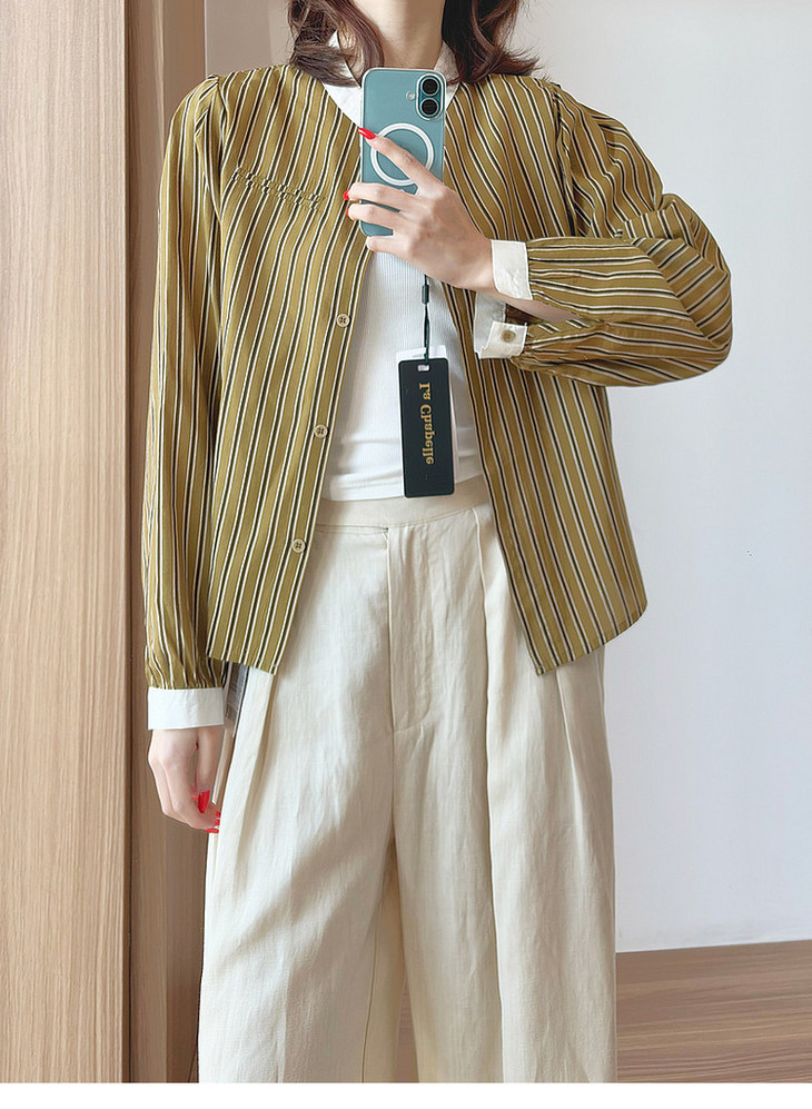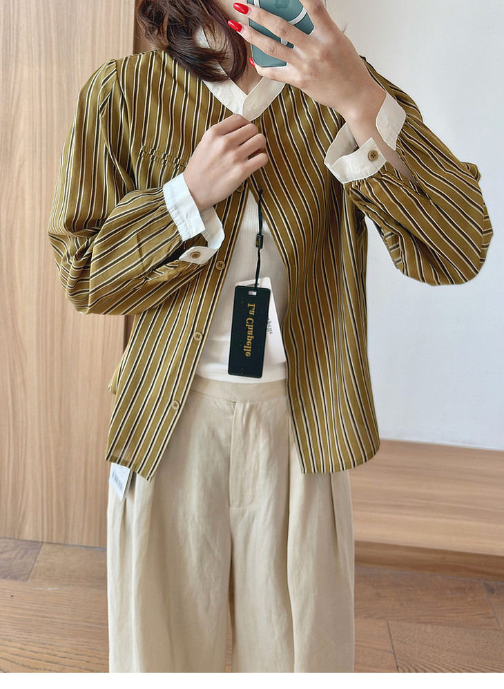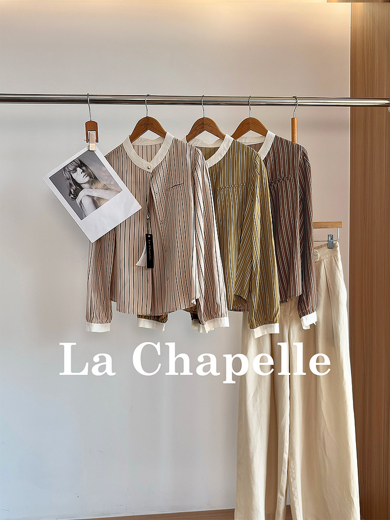专柜实拍【莱赛尔!高品质】拉夏贝尔/La Chapelle法式撞色领气质慵懒感百搭衬衫极简通勤风上衣女
