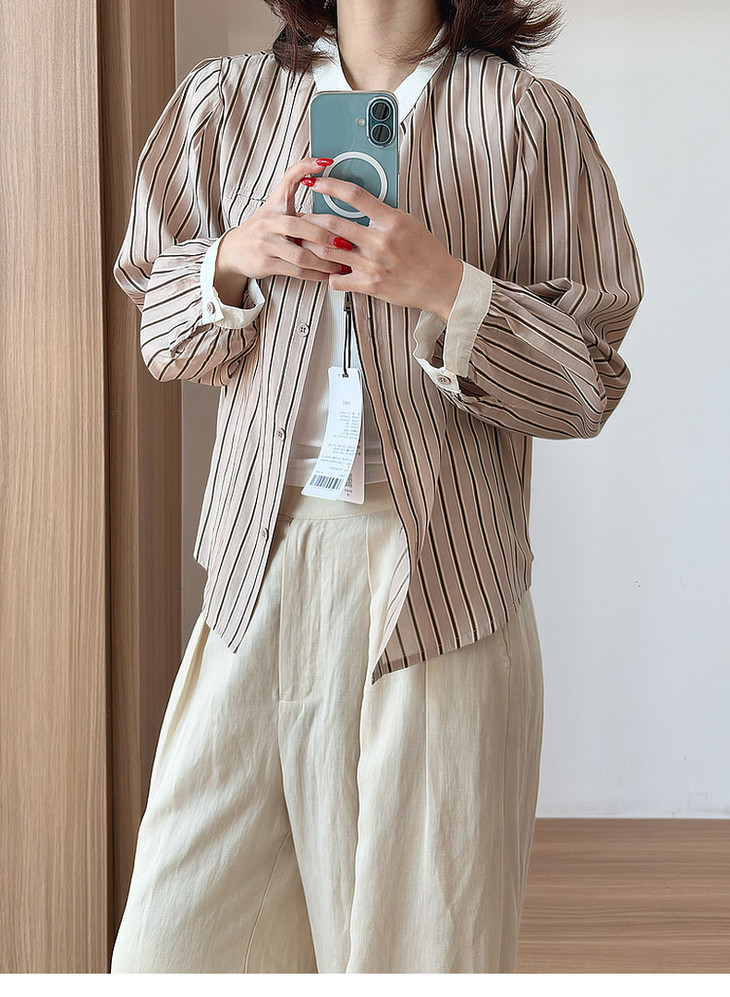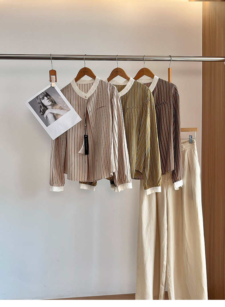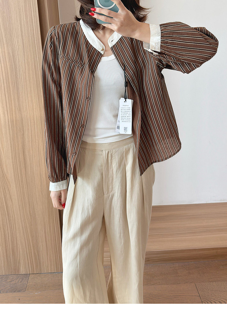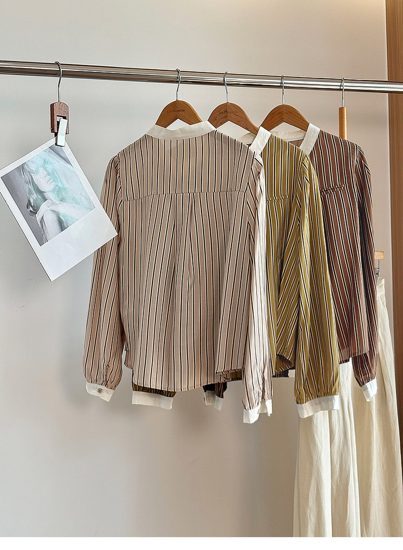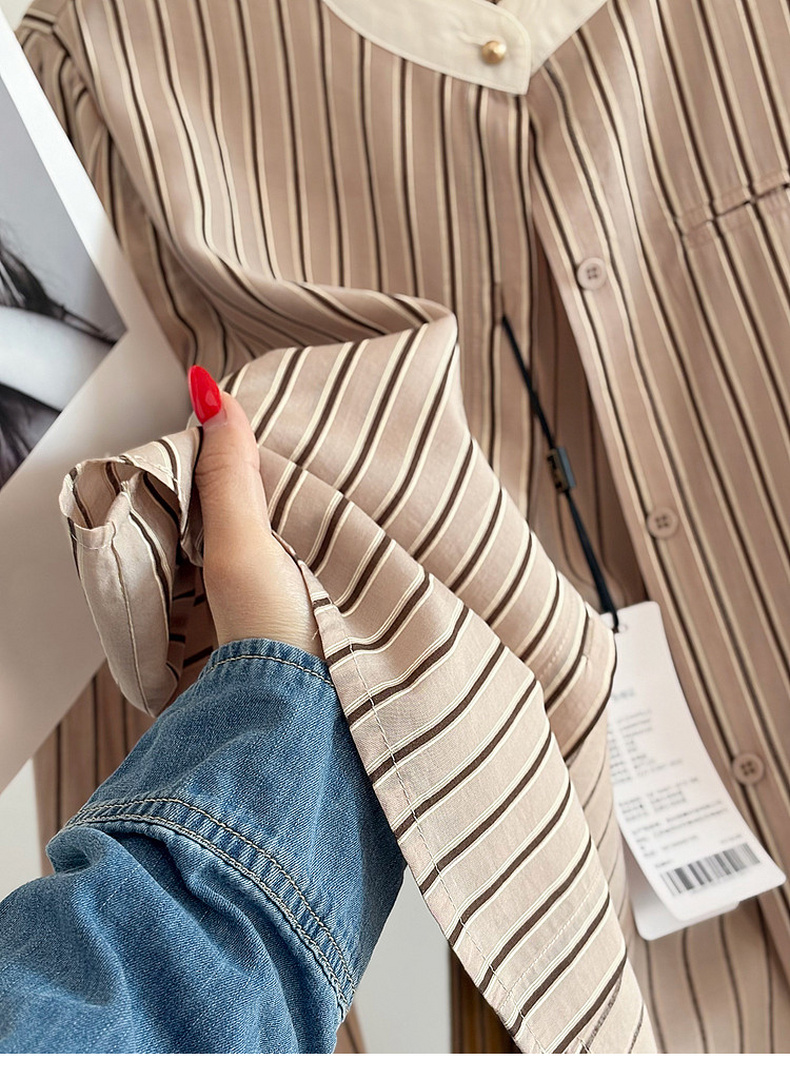 专柜实拍【莱赛尔!高品质】拉夏贝尔/La Chapelle法式撞色领气质慵懒感百搭衬衫极简通勤风上衣女