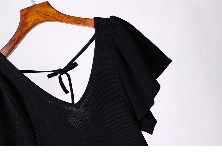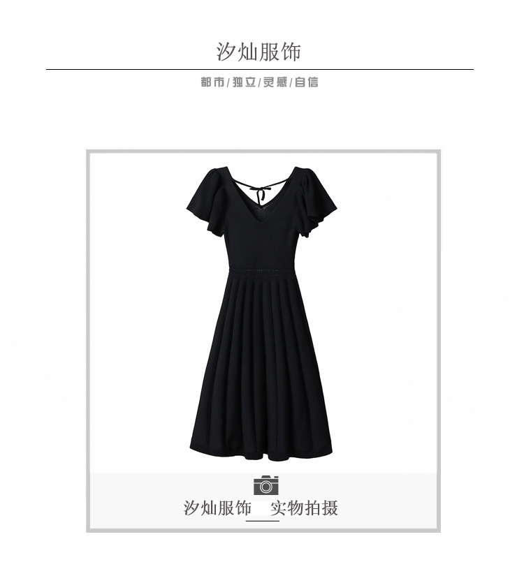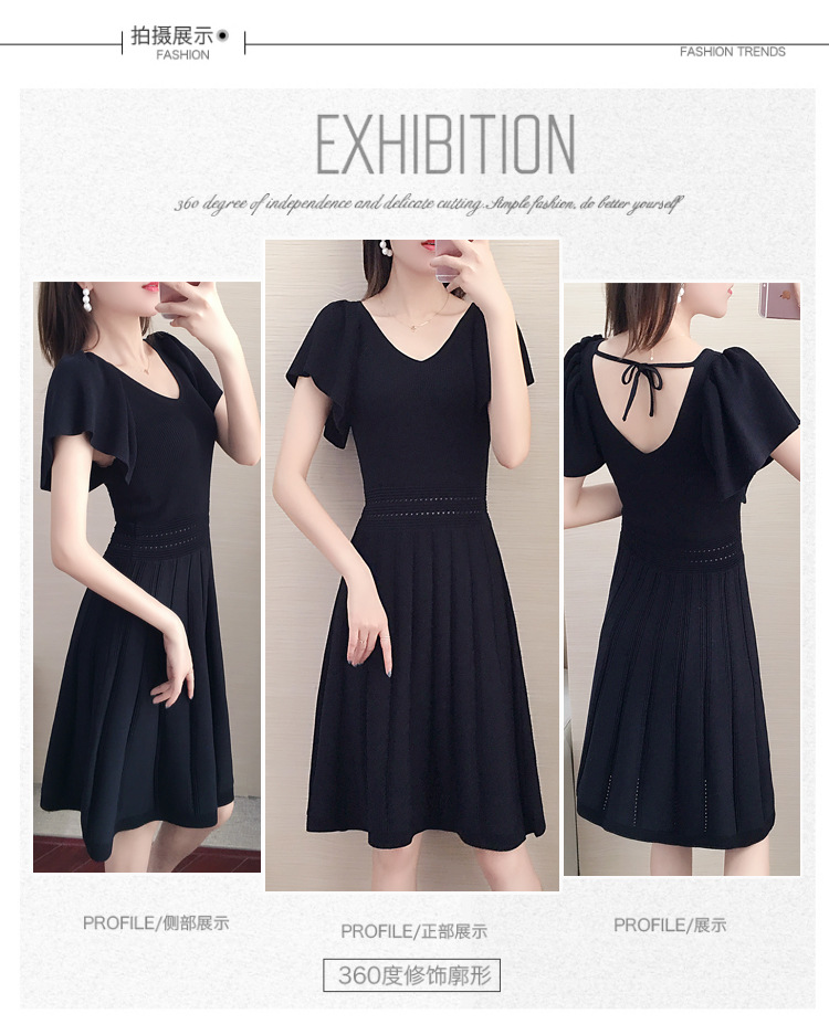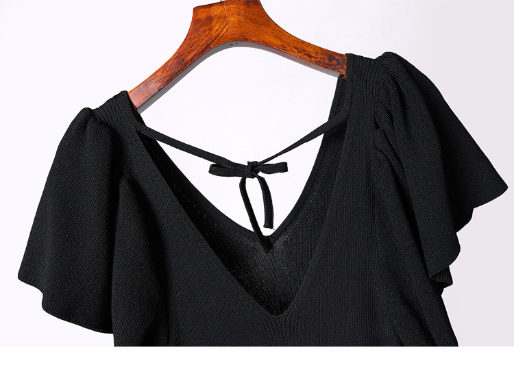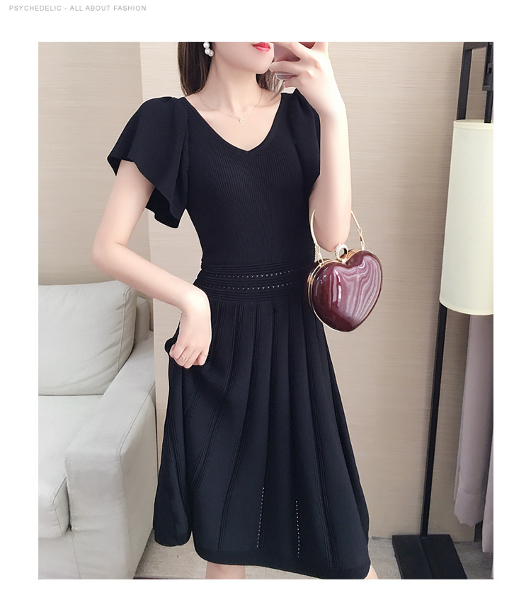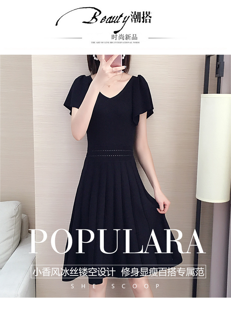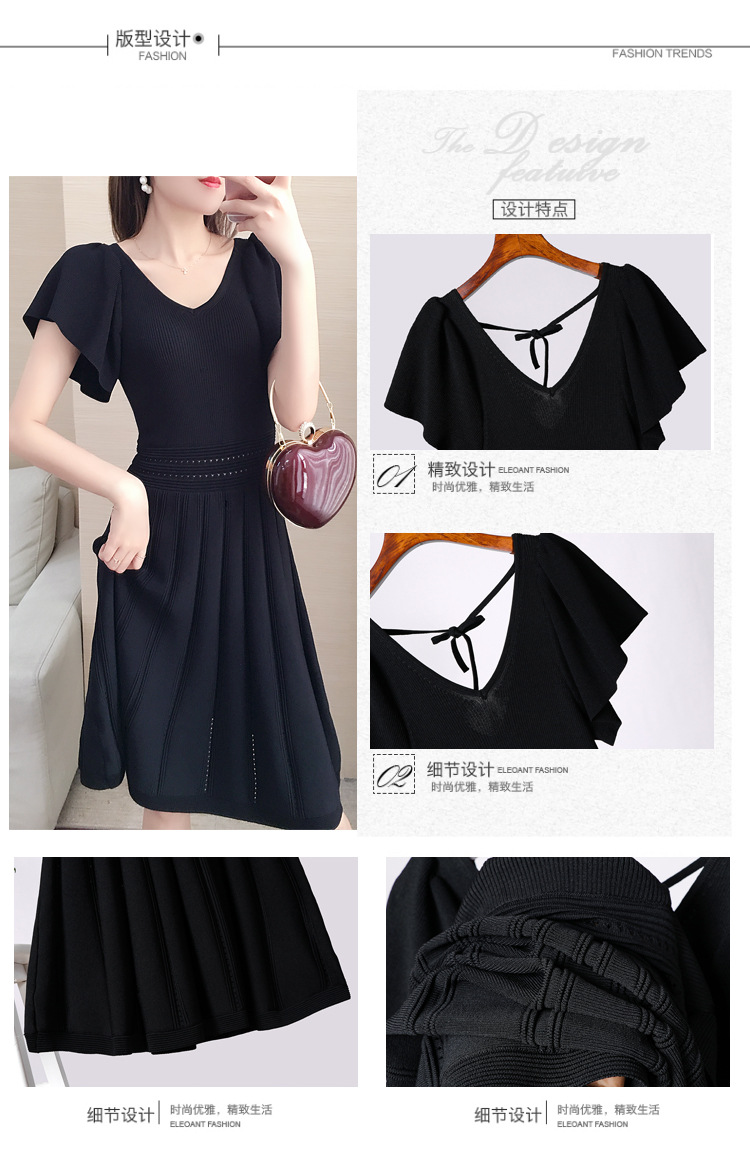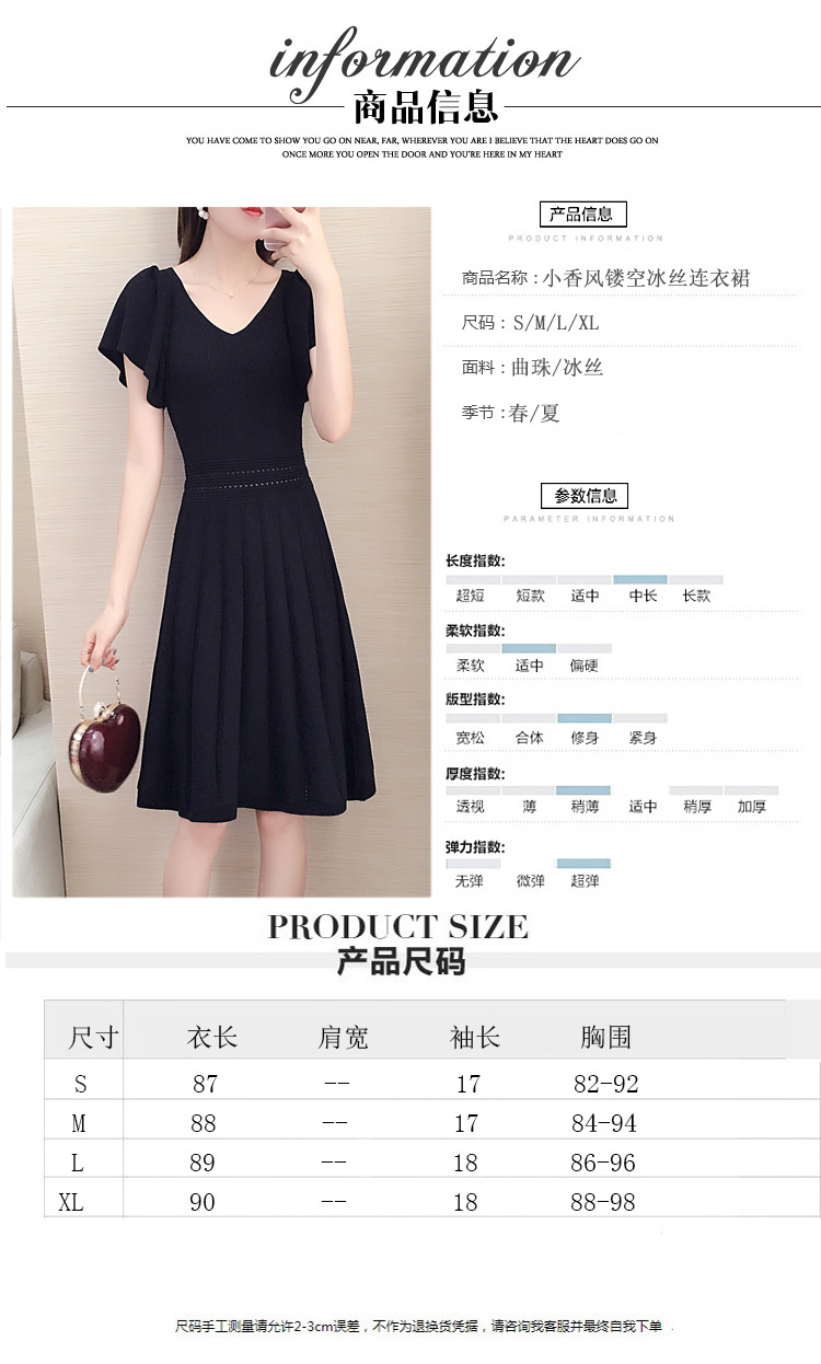 XC-9353欧美针织衫连衣裙 纯色钩花镂空版型
