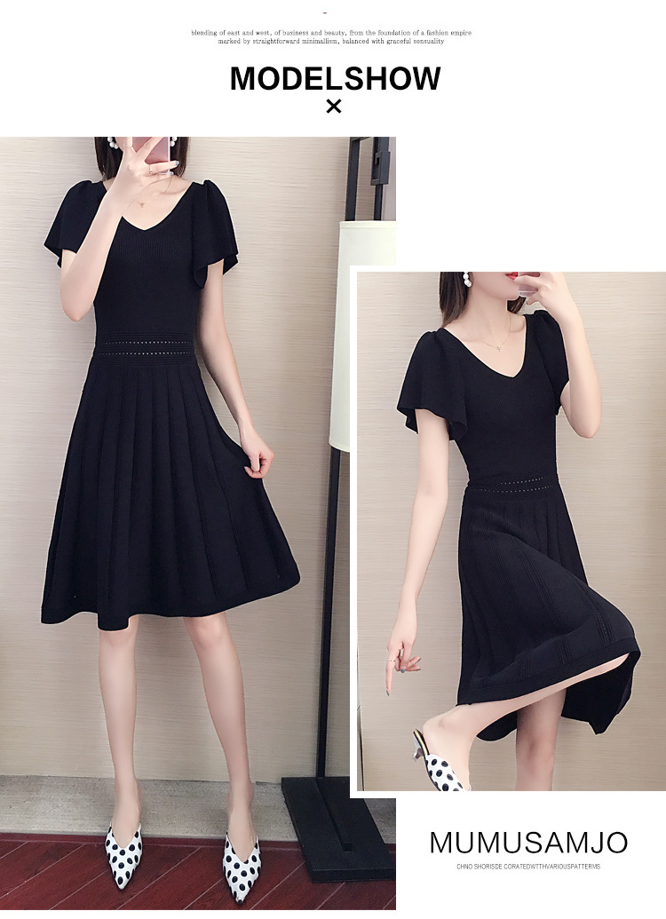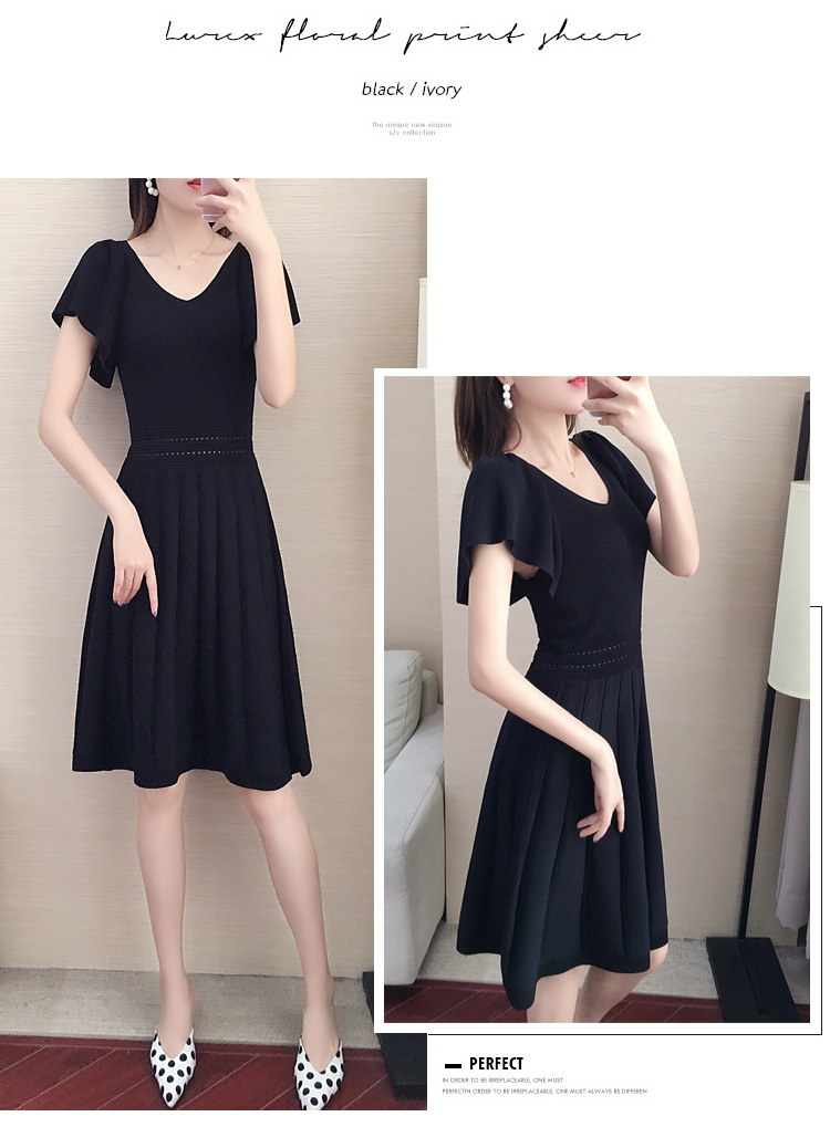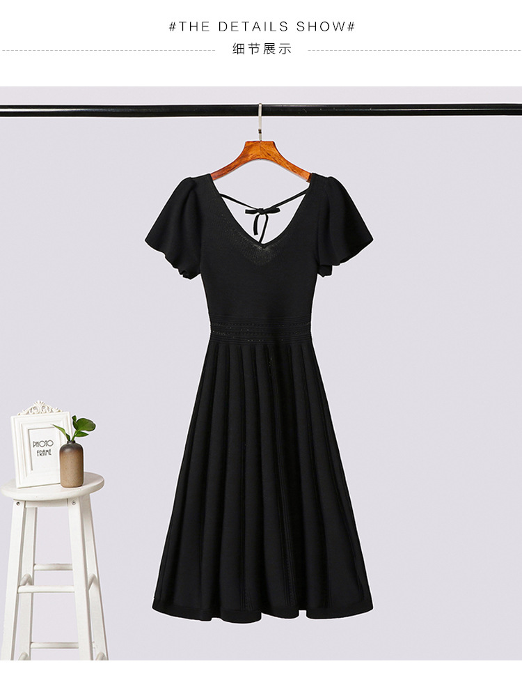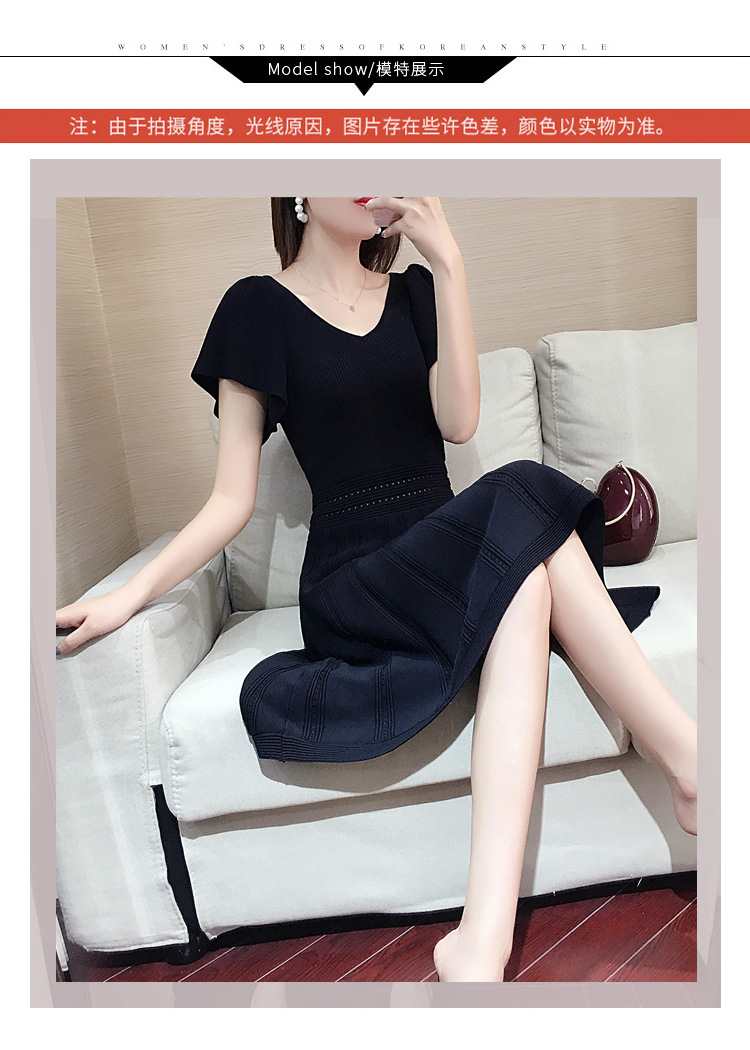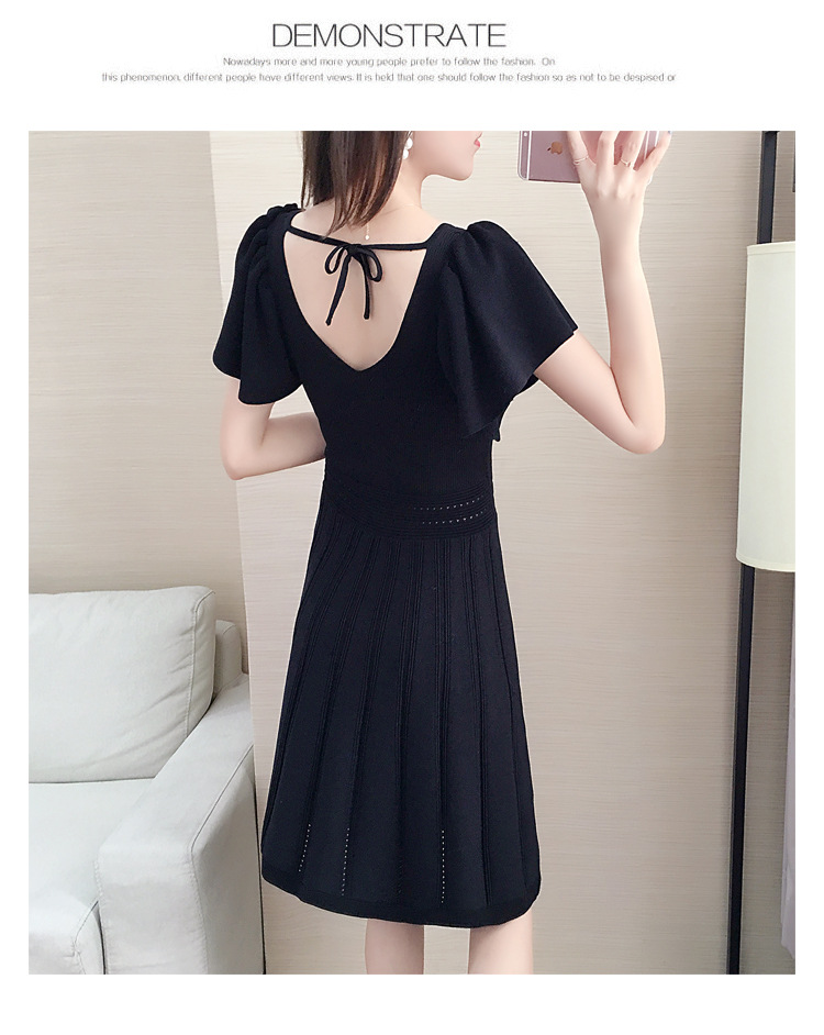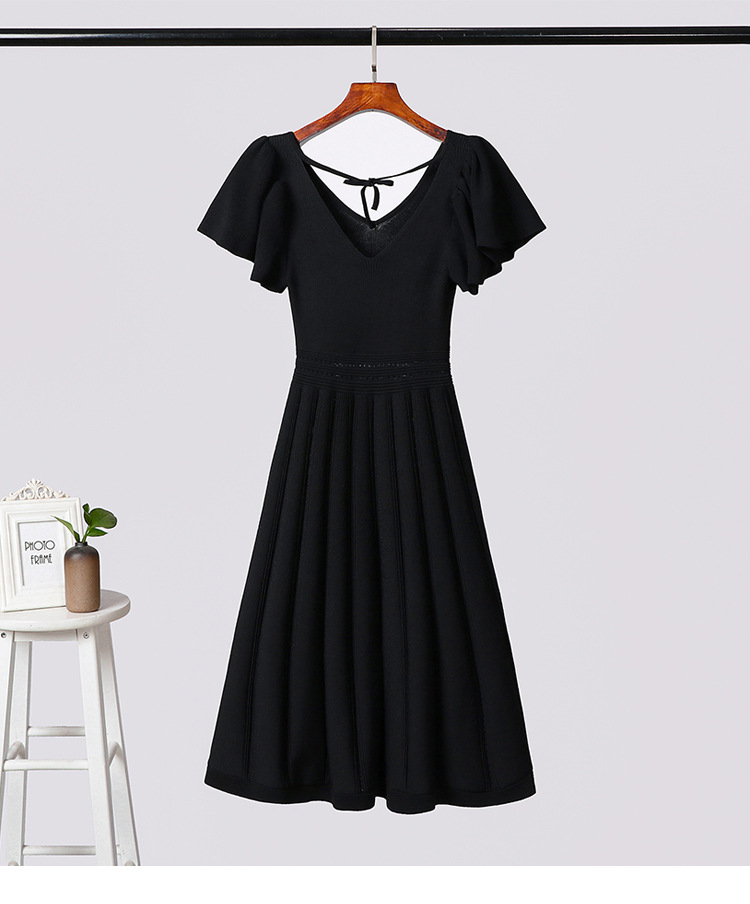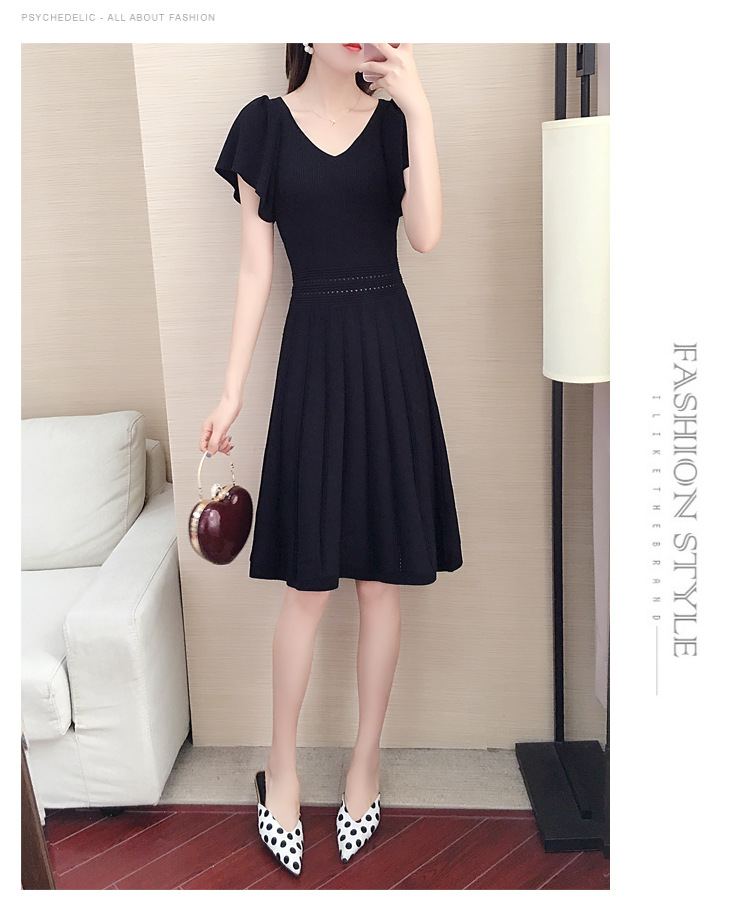 XC-9353欧美针织衫连衣裙 纯色钩花镂空版型