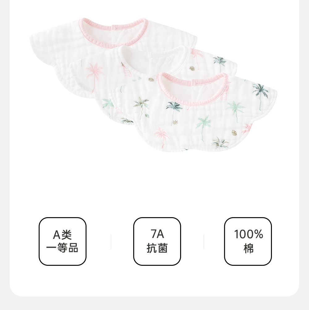 【商场同款】英氏婴儿口水肩纯棉抗菌宝宝吃饭围脖三件装2025新款