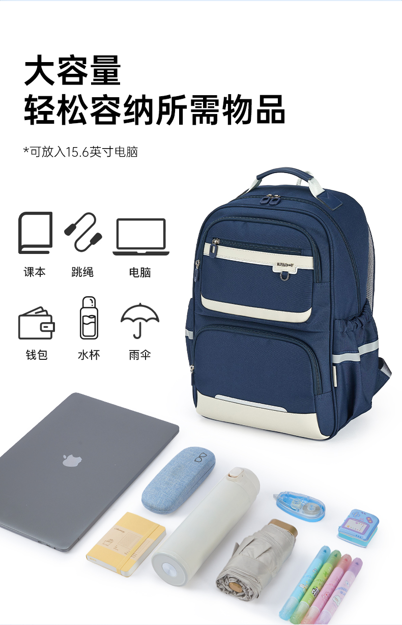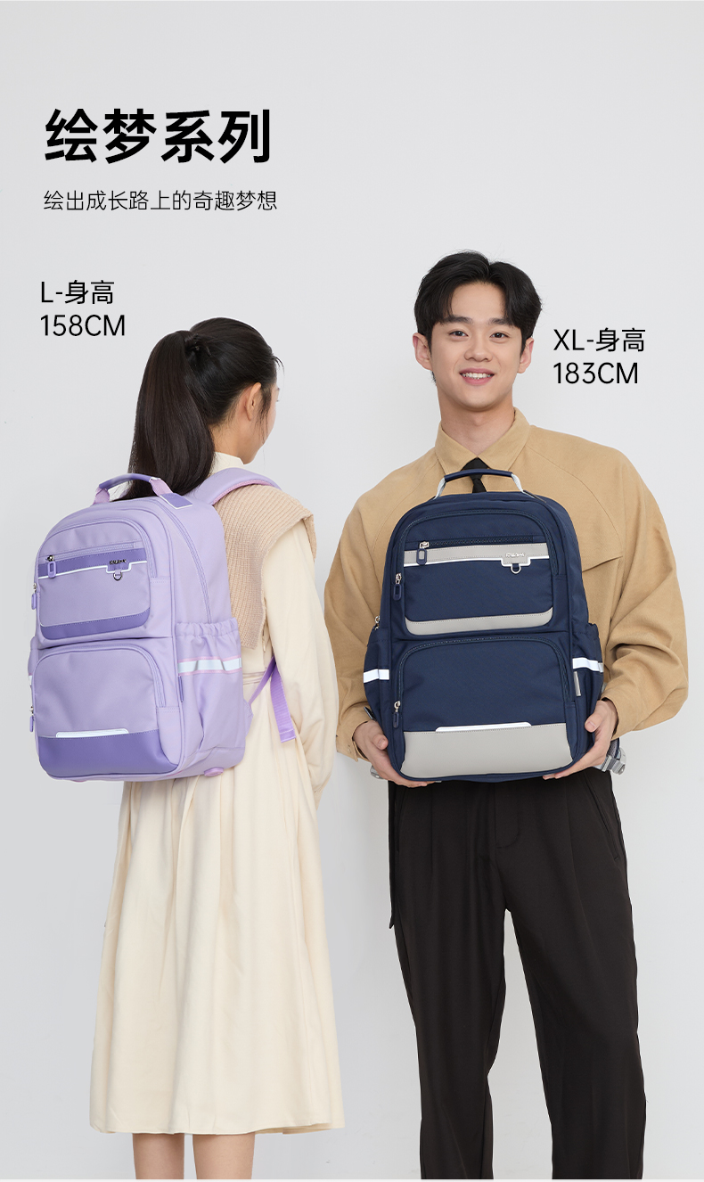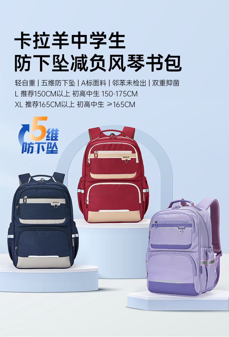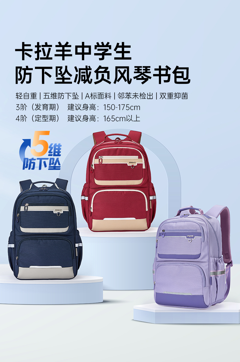 卡拉羊中学生5维减负防下坠风琴书包大容量抑菌双肩背包绘梦系列CX5186/L