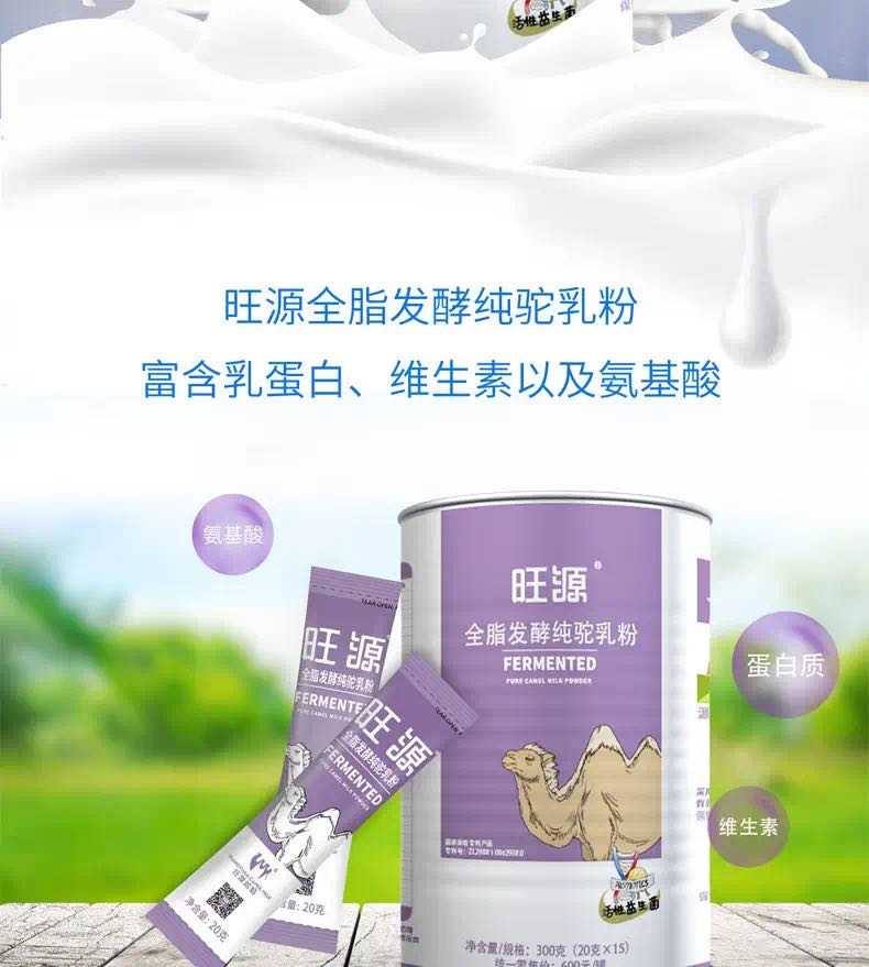 旺源全脂发酵纯驼乳粉 有机牧场发酵工艺活性益生菌 20g/条*15 新疆发货