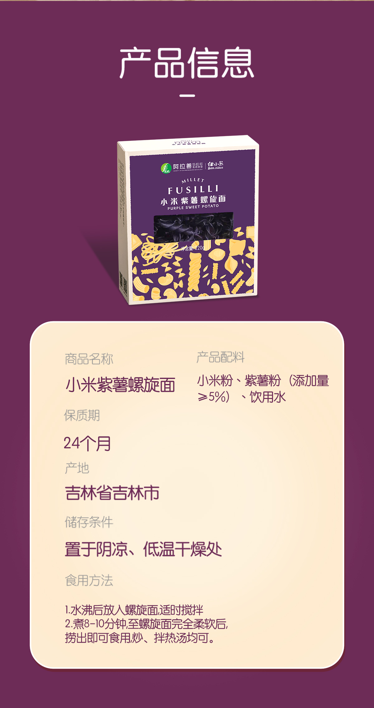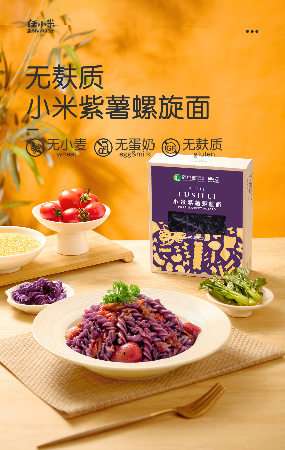 【新品】小米紫薯螺旋面 任小米意大利面儿童面条 无麸质无小麦无蛋奶