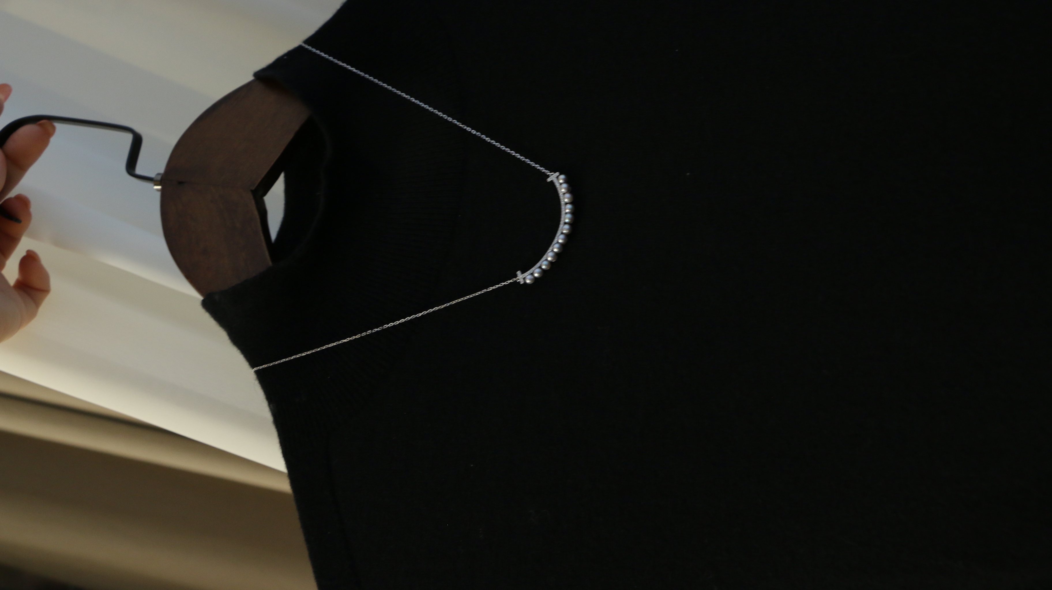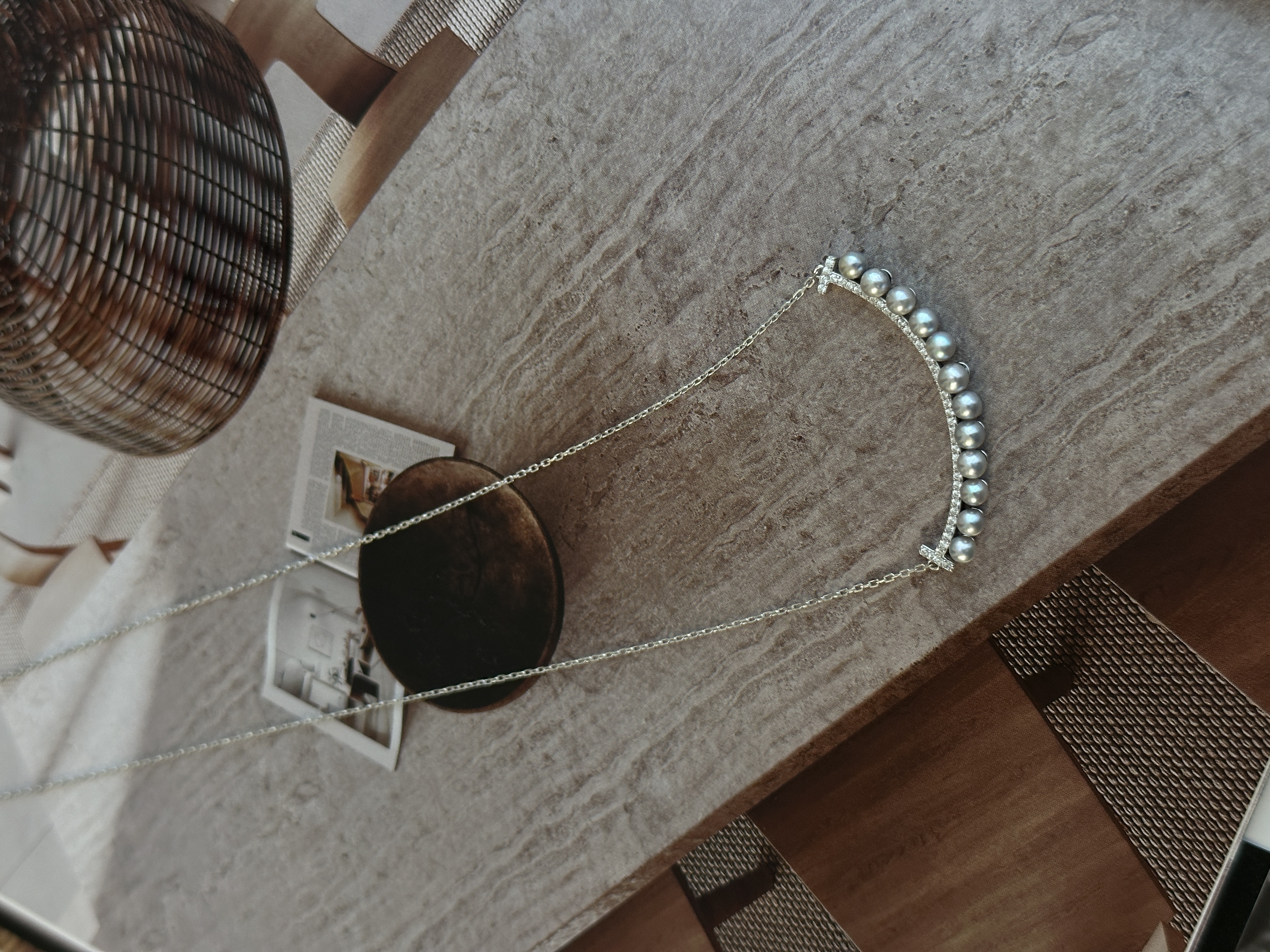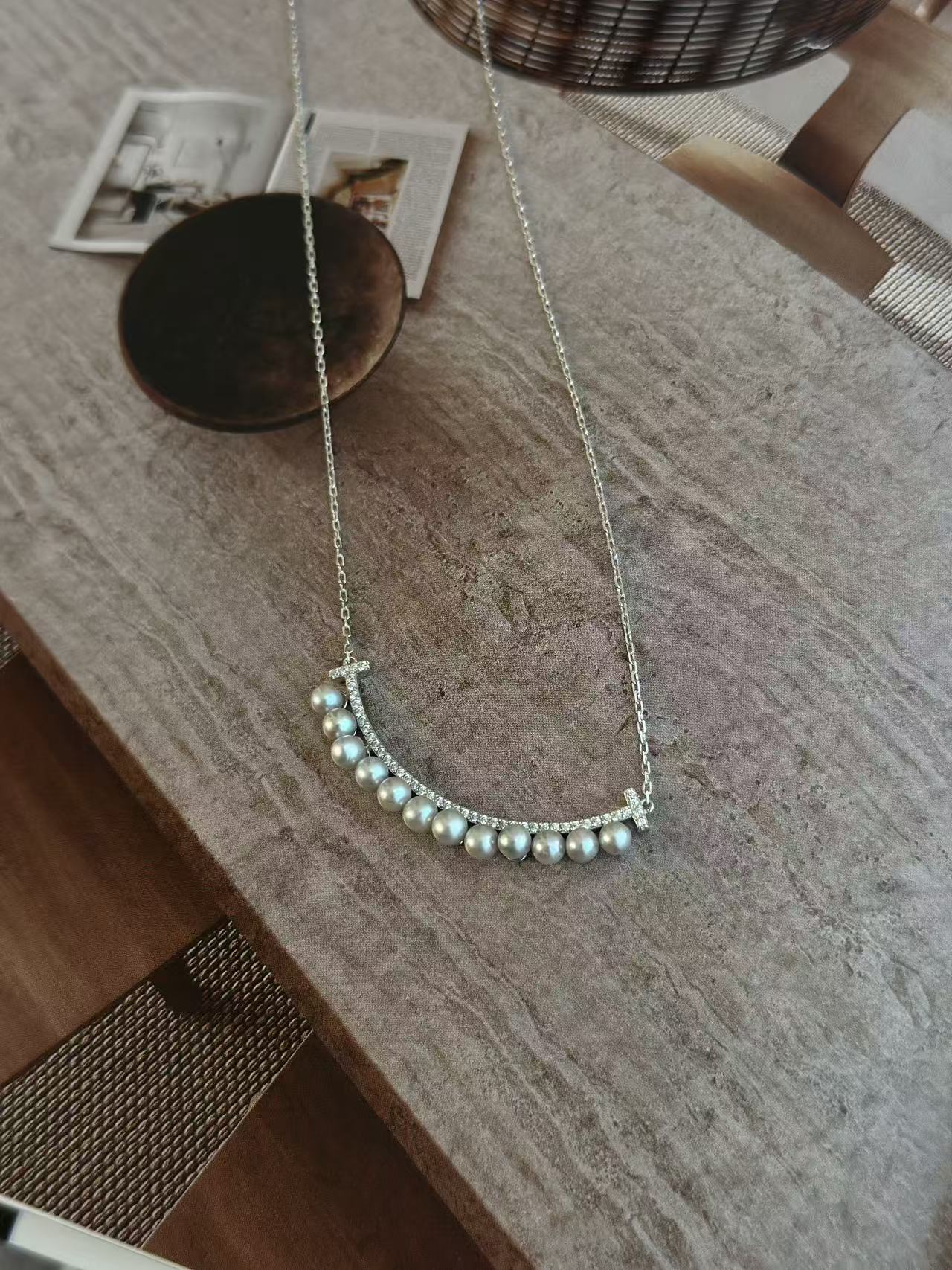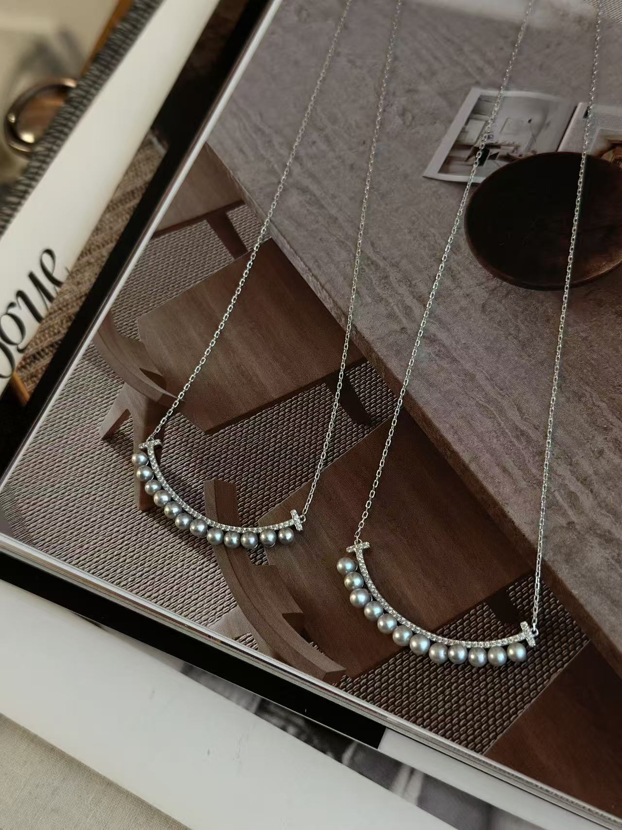 甄珠贝 T家经典微笑链 Akoya海水珠 真多麻色3-4mm 925纯银配件