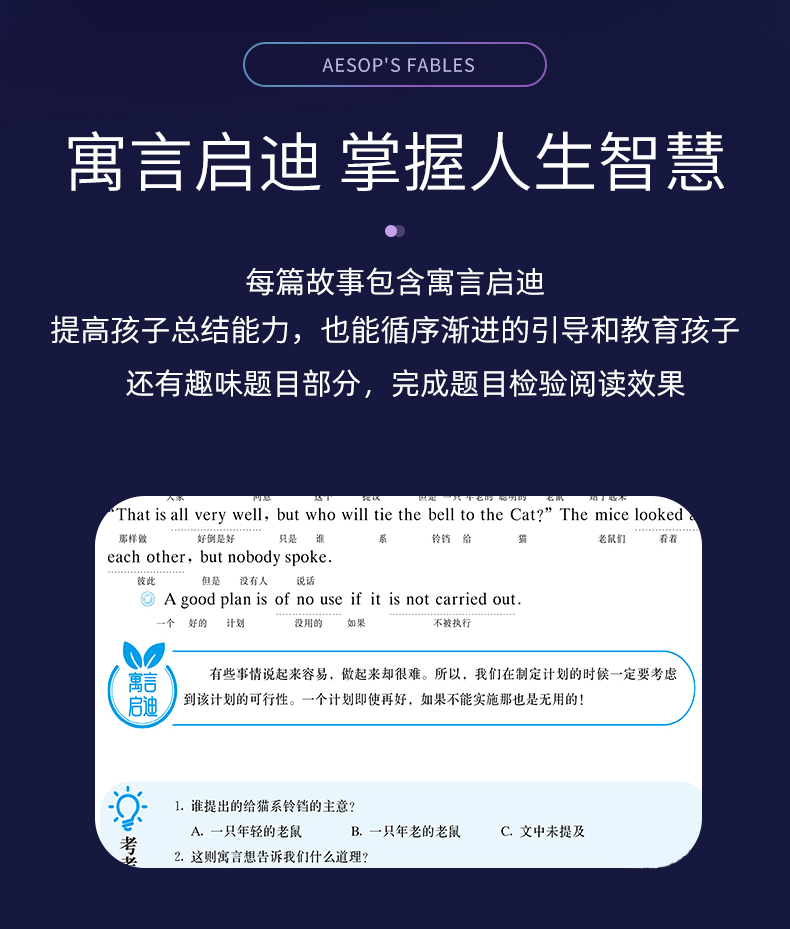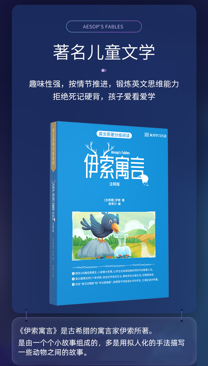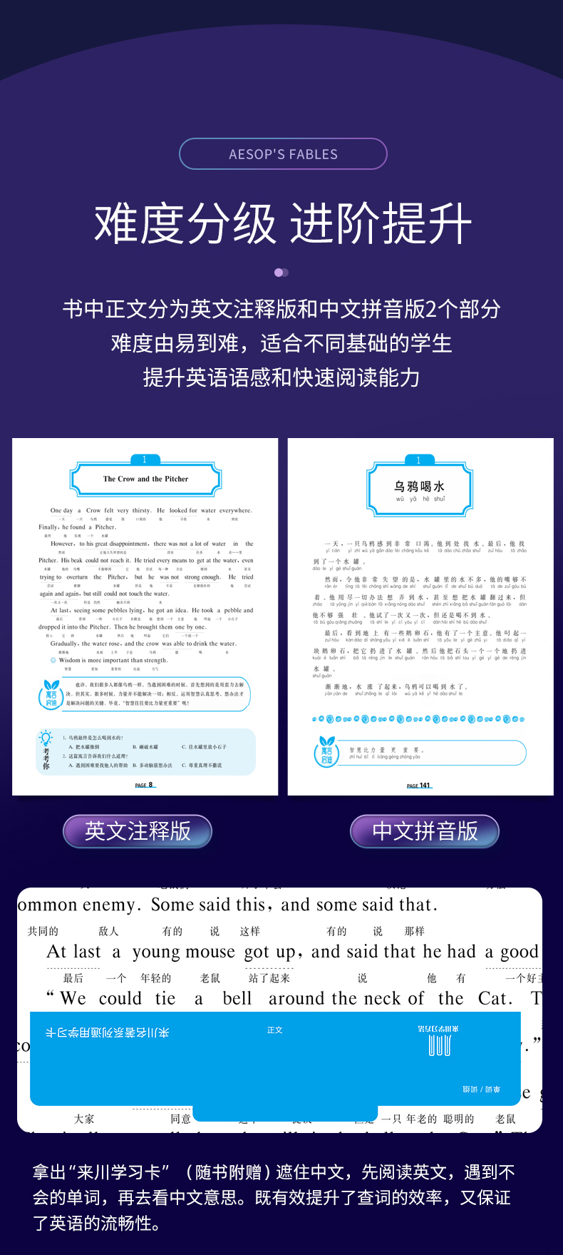 《伊索寓言》来川英文原著分级阅读/来川学习方法落地 小学生初中课外书籍必读英语读物 经典小升初阅读书儿童兴趣诵读课外书