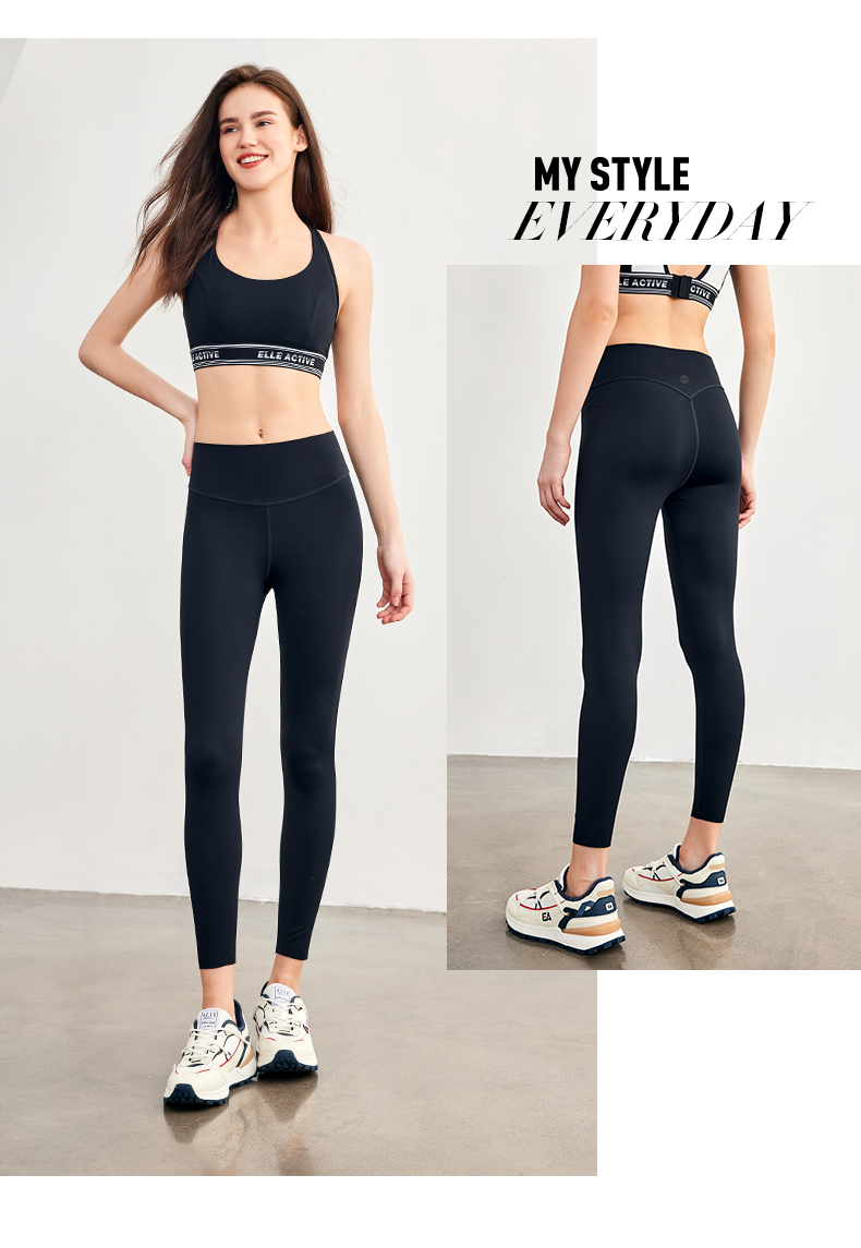 ELLE Active新款瑜伽裤健身高腰打底裤高弹无痕提臀女运动裤紧身