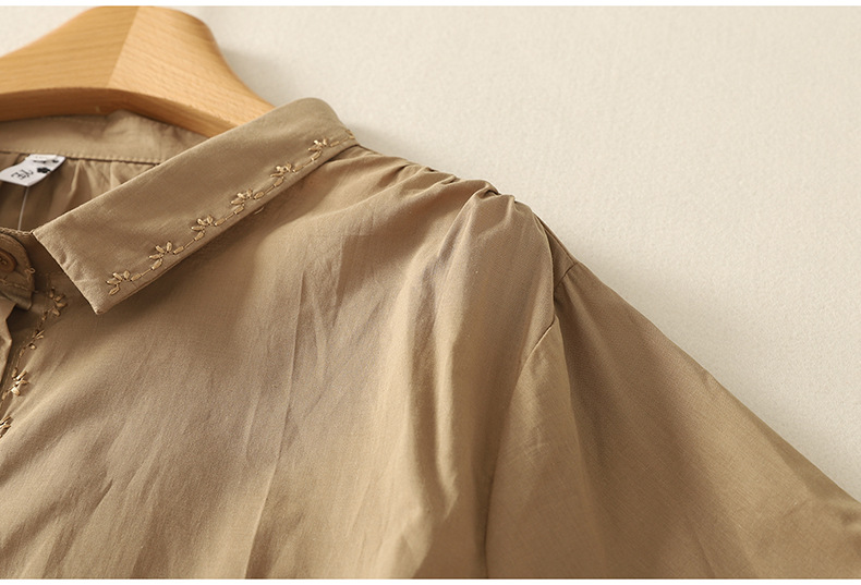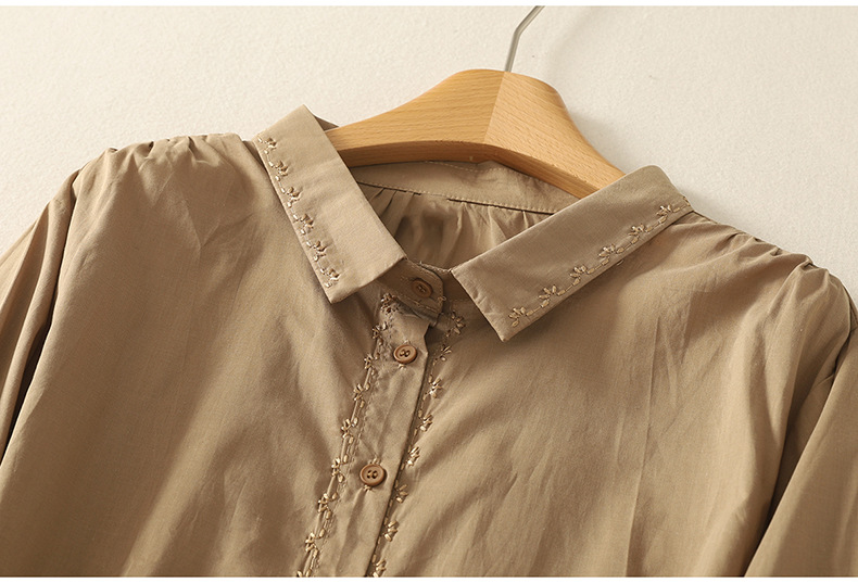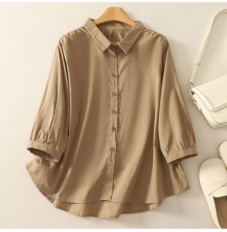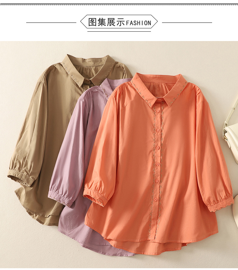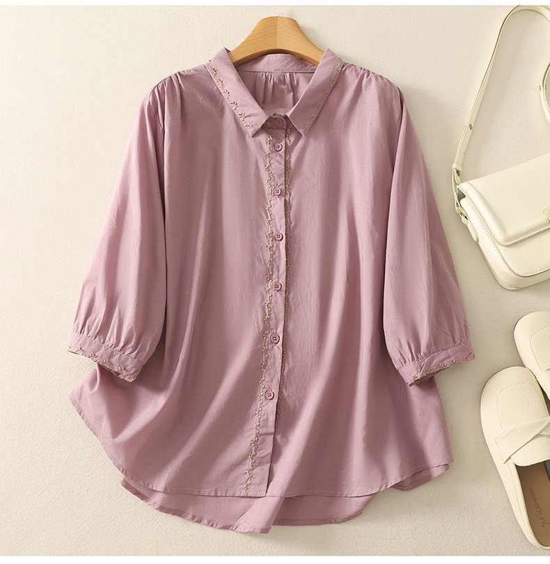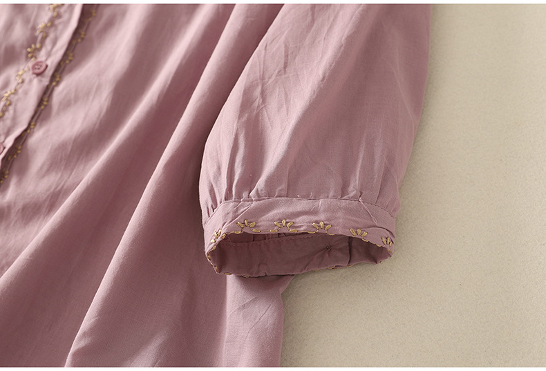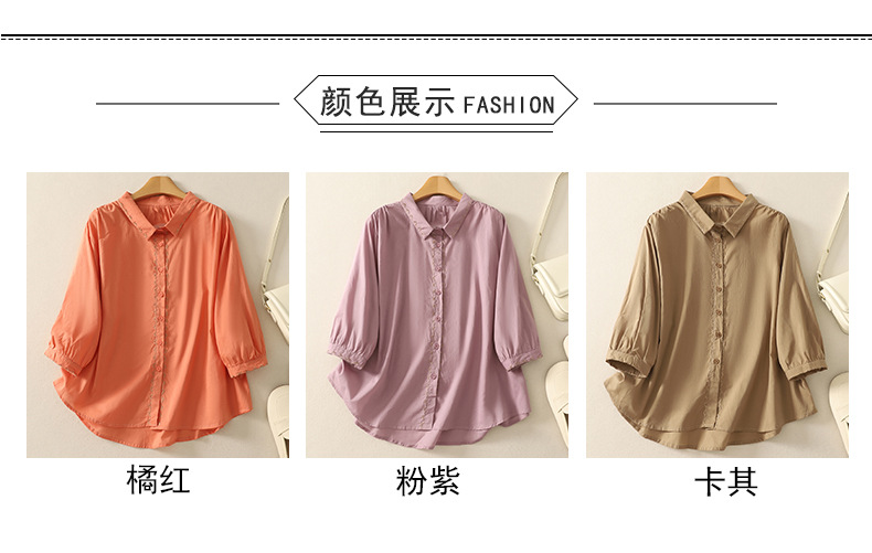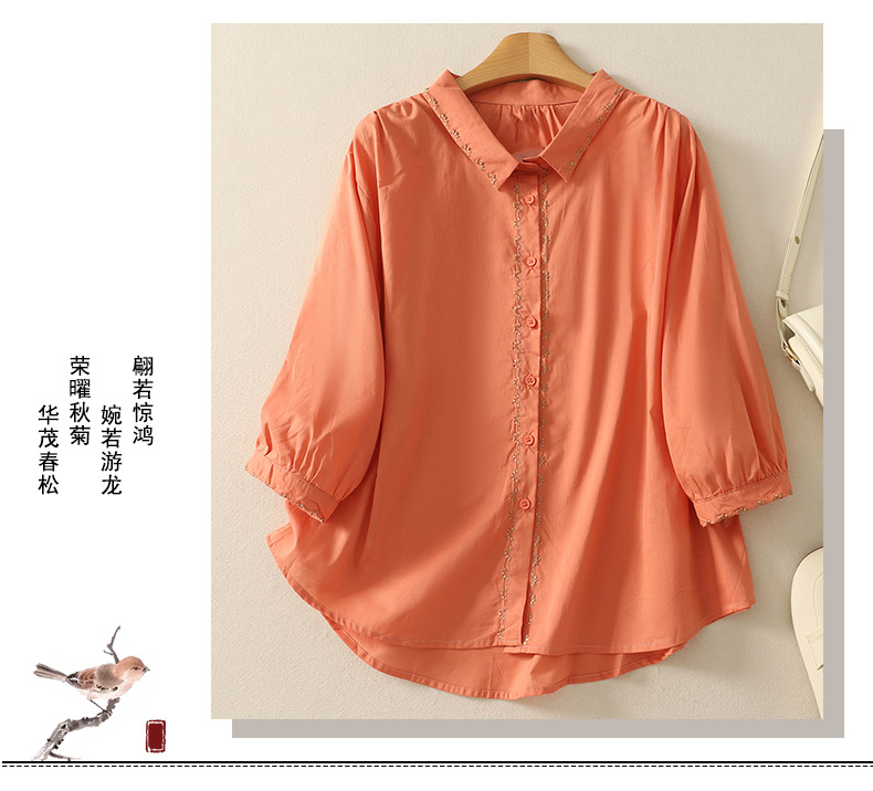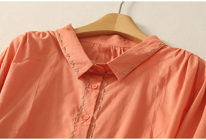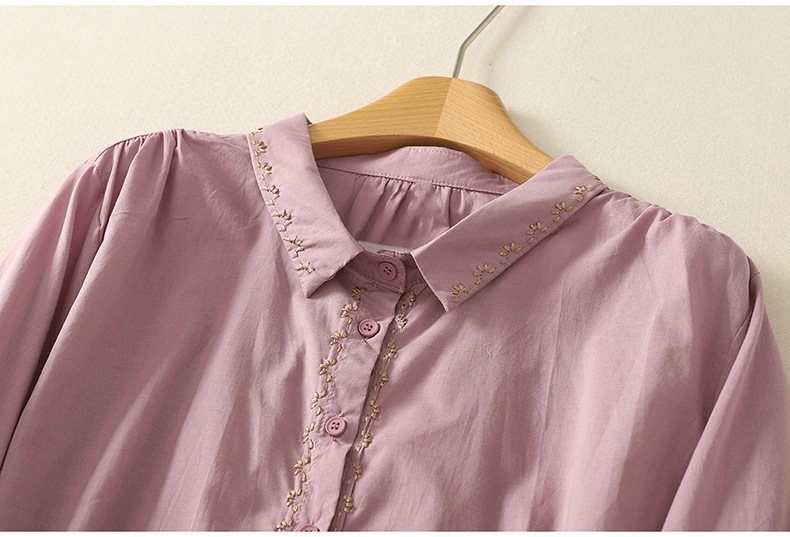 WY5075上衣 # 夏装新款文艺复古宽松显瘦麦粒刺绣棉麻衬衫翻领七分袖色上衣
