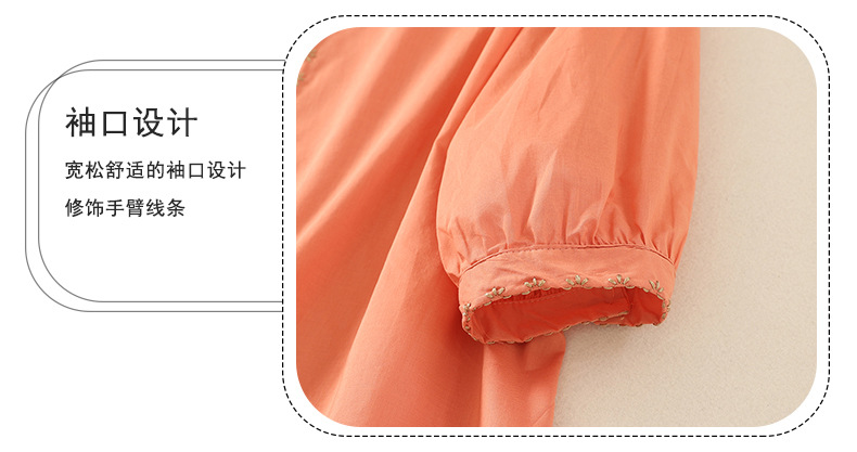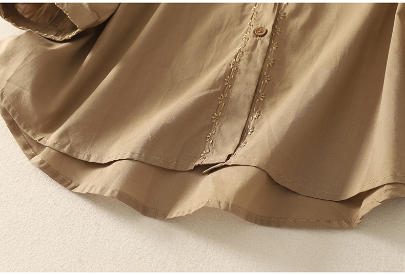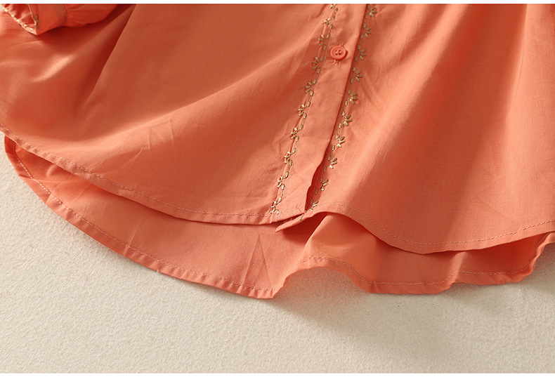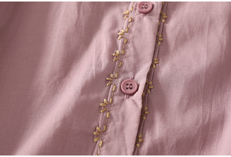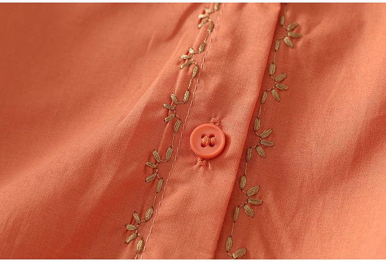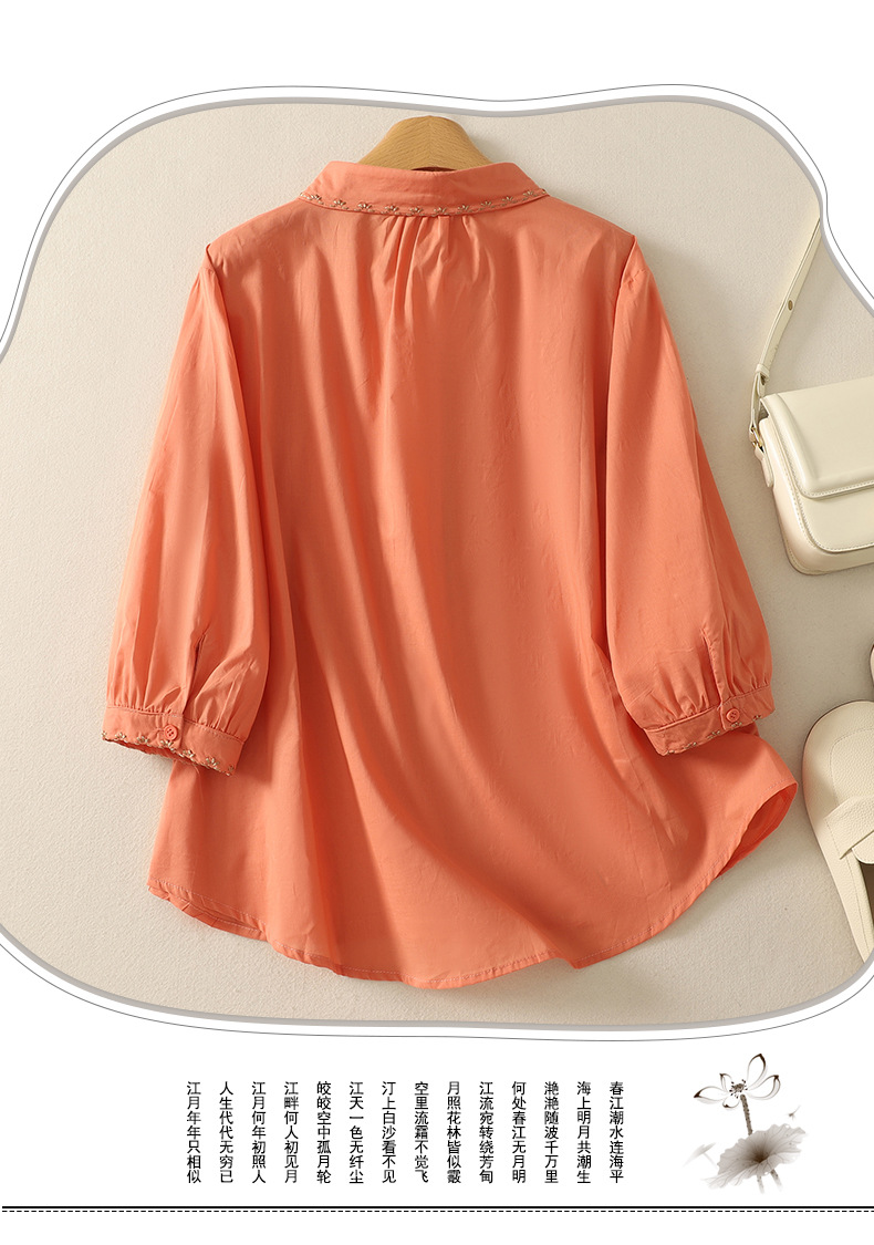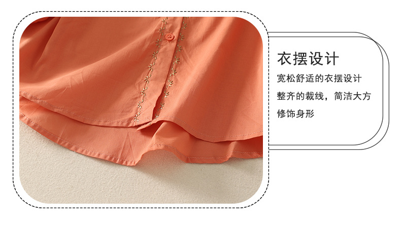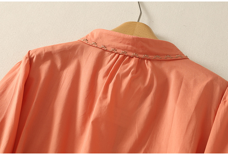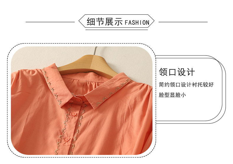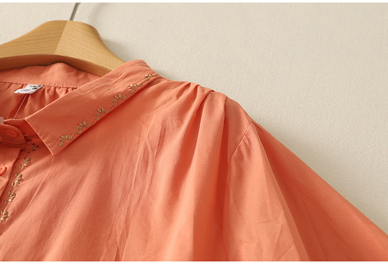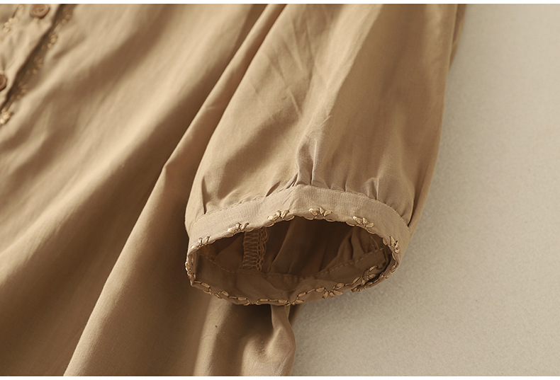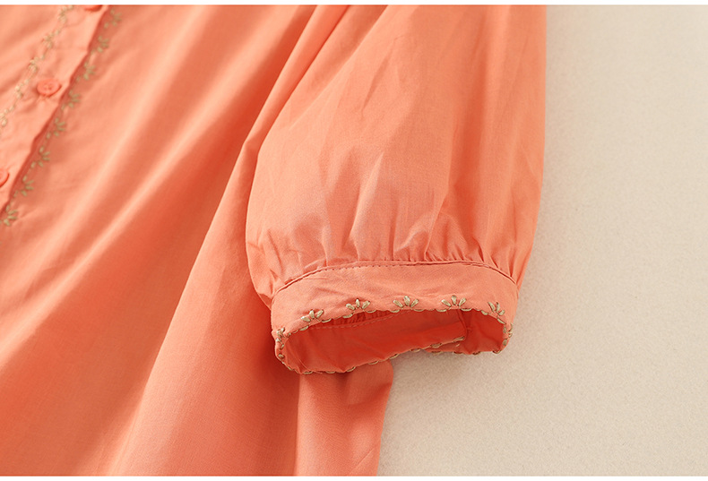 WY5075上衣 # 夏装新款文艺复古宽松显瘦麦粒刺绣棉麻衬衫翻领七分袖色上衣