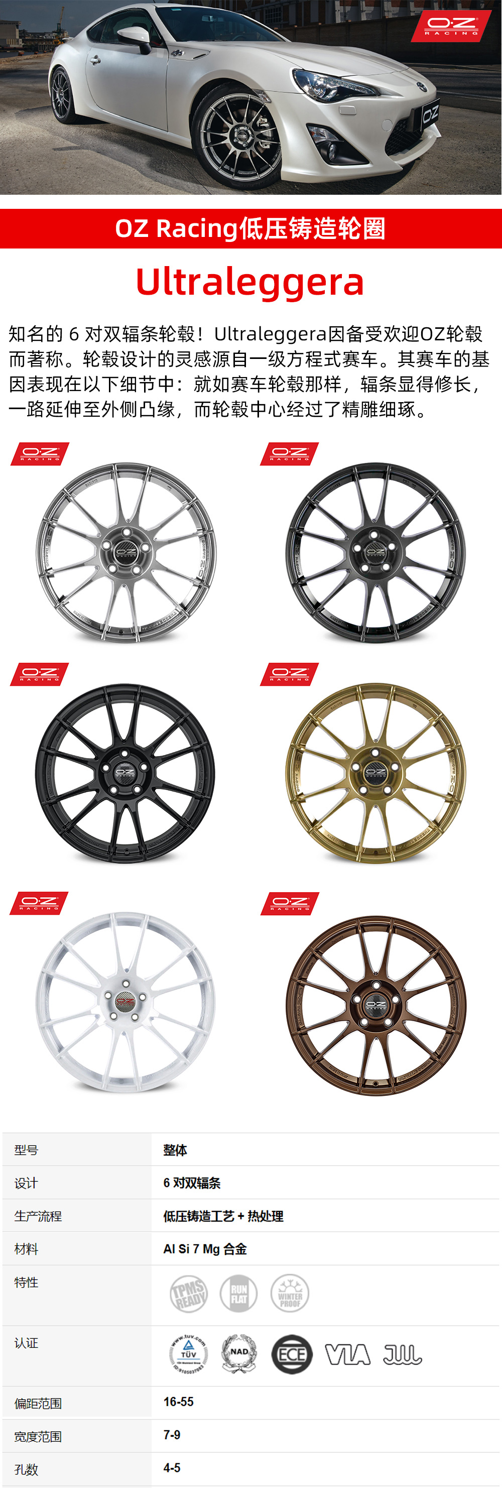 意大利进口OZ Racing Ultraleggera 15/16/17/18寸