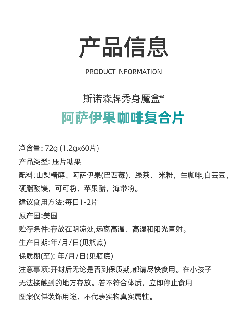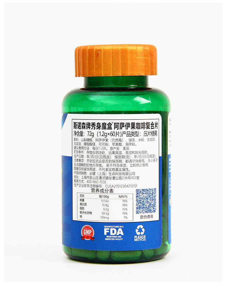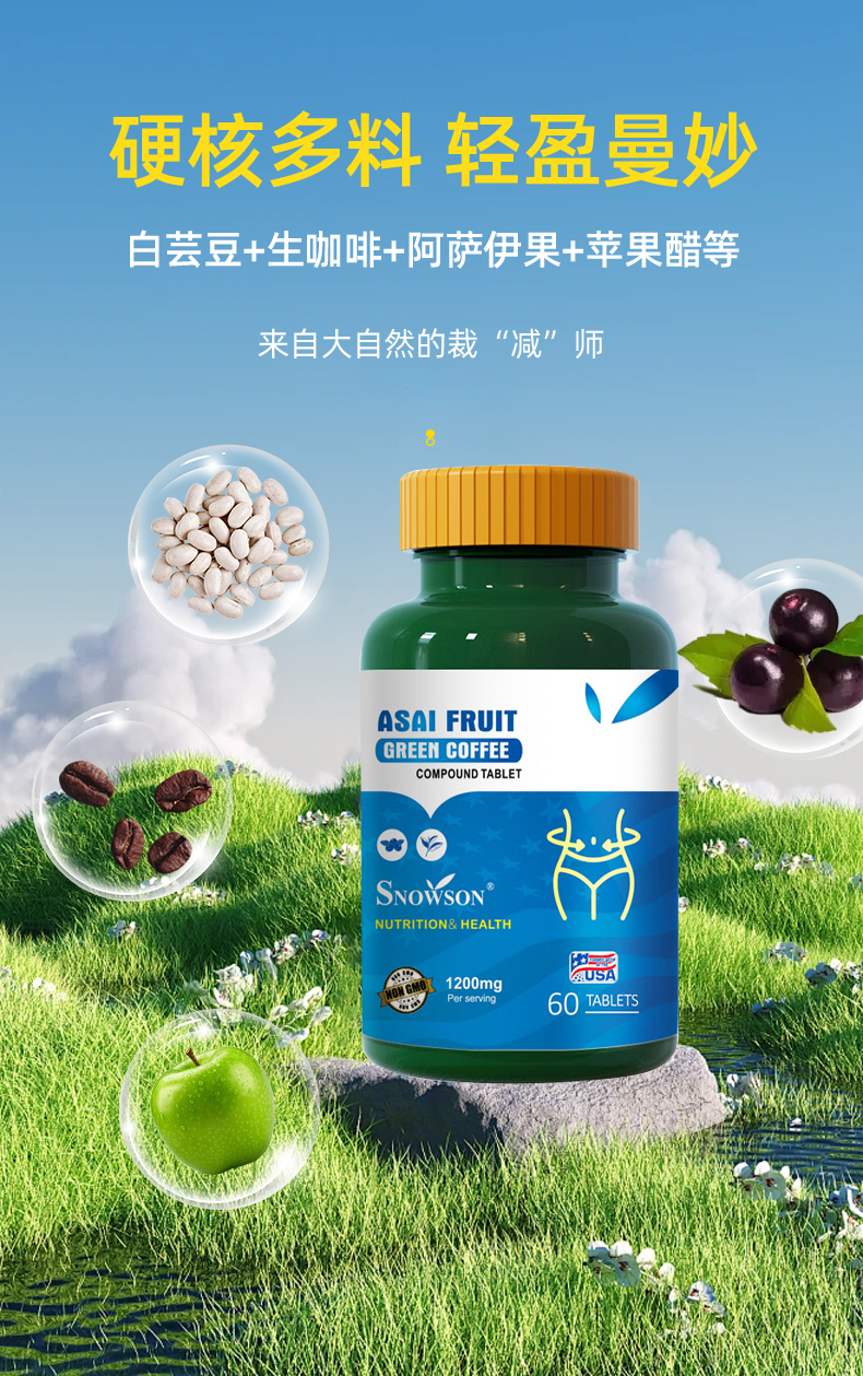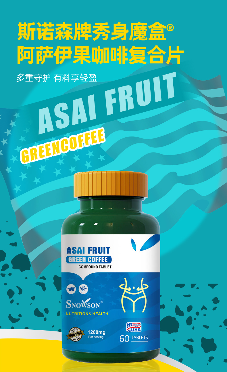 斯诺森牌秀身魔盒 阿萨伊果咖啡复合片 美国原装进口 你值得佣有美好身材
