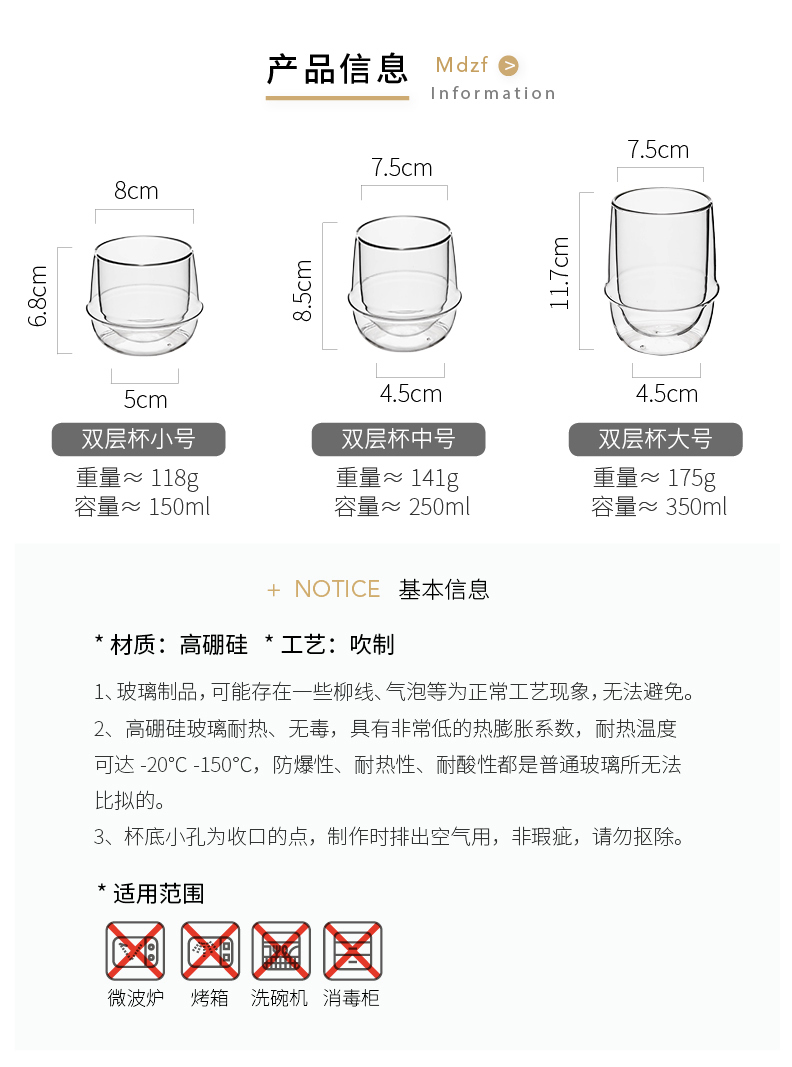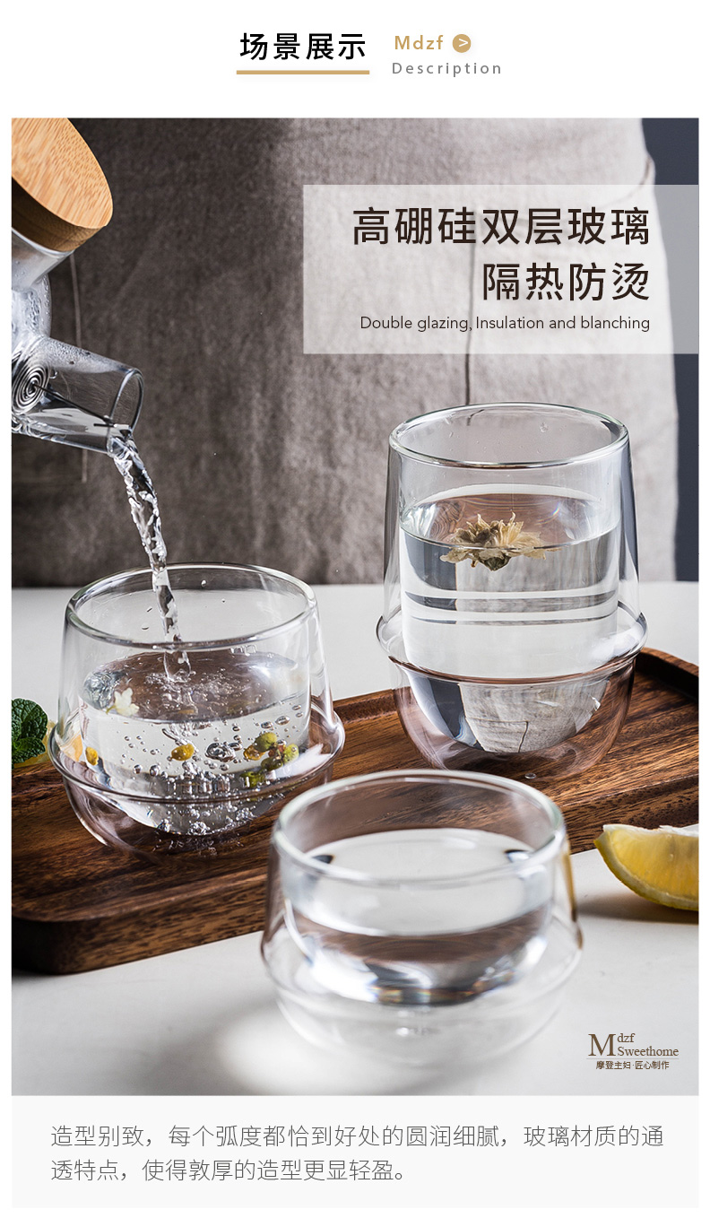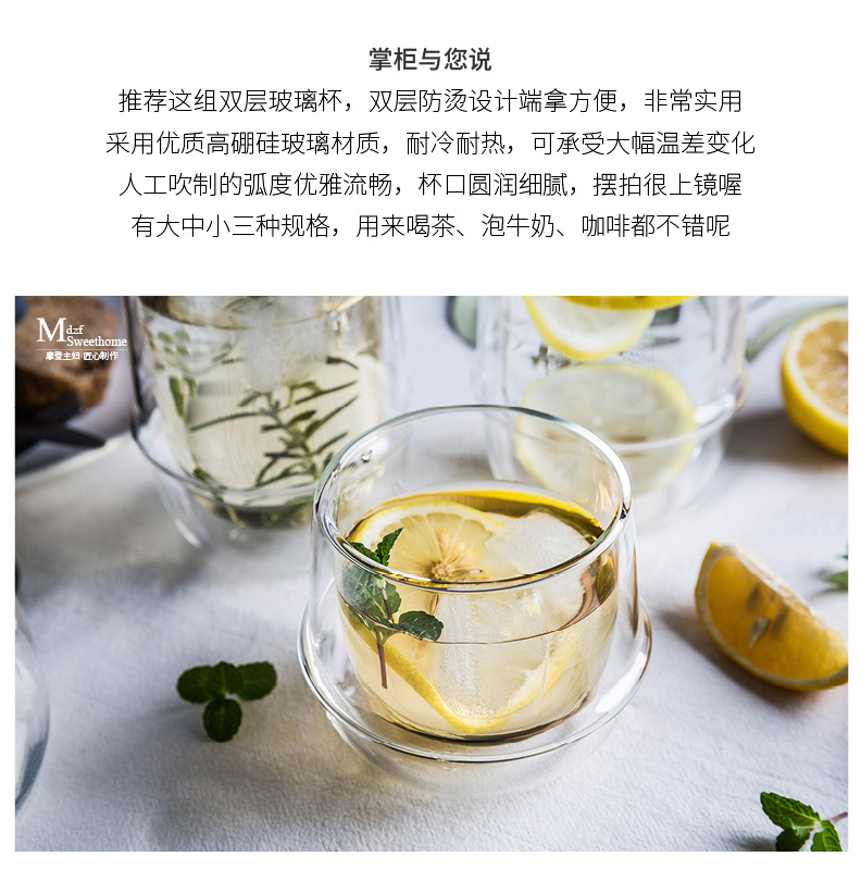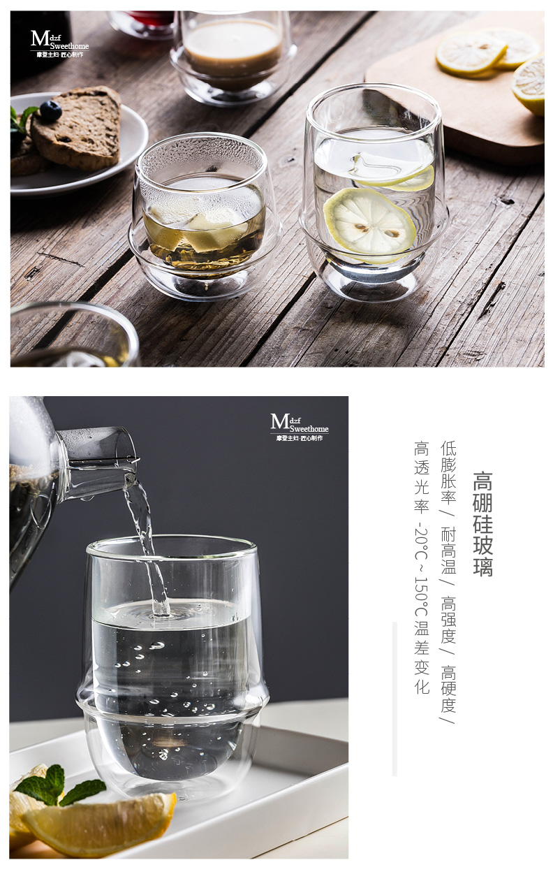 摩登主妇耐热高硼硅玻璃水杯隔热防烫防爆家用泡茶杯子咖啡牛奶杯