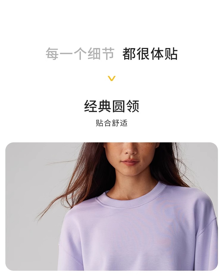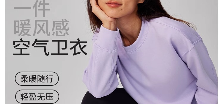 跃牌【健舞健美】系列 宽松显瘦休闲高弹柔软亲肤透气空气层小圆领卫衣女8956