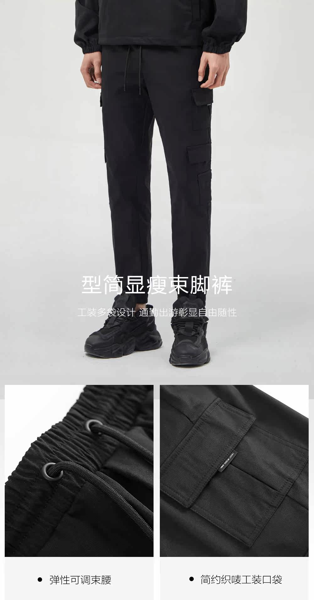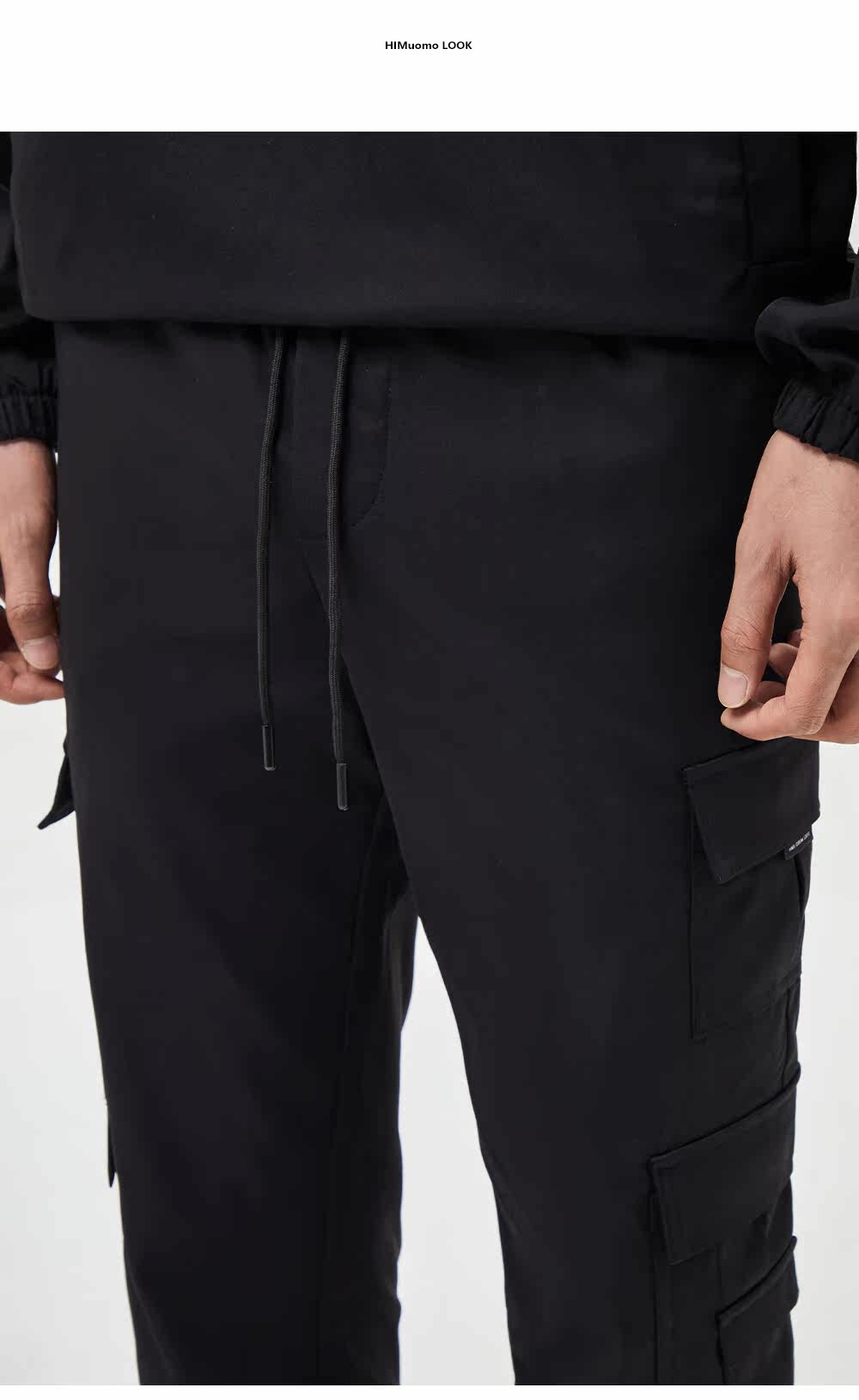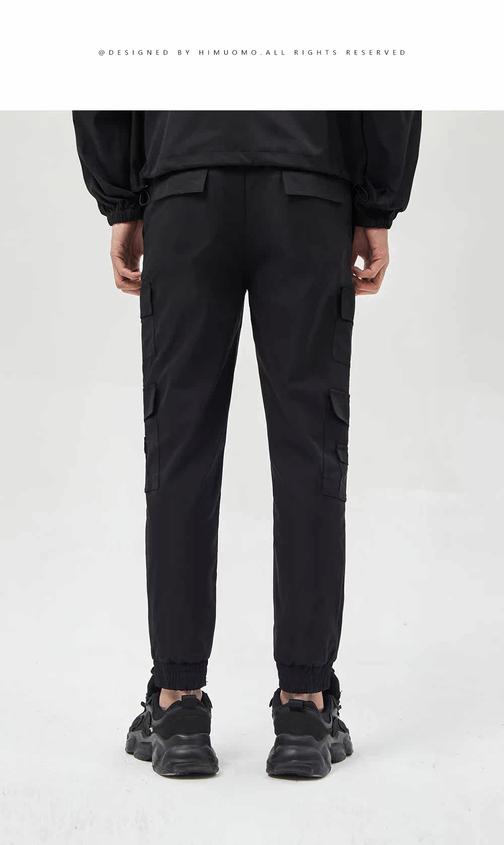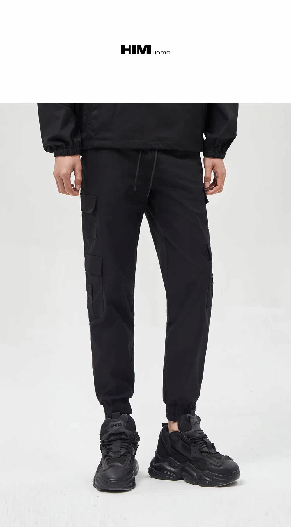 HIM漢崇 舒适束脚休闲裤男时尚潮流纯色松紧腰九分工装裤2025秋季