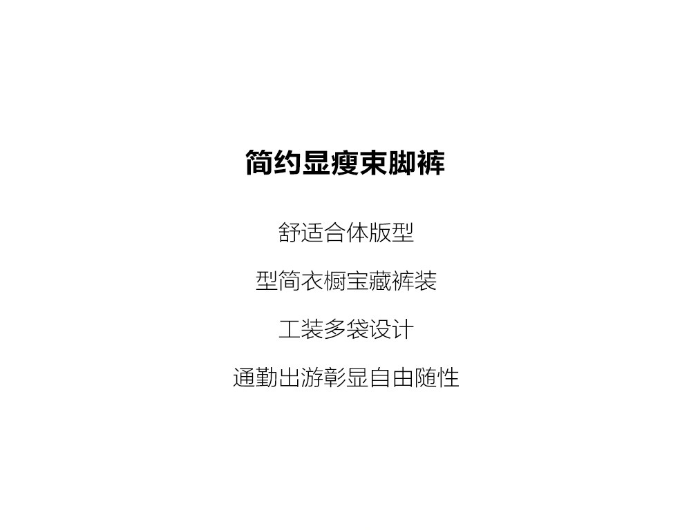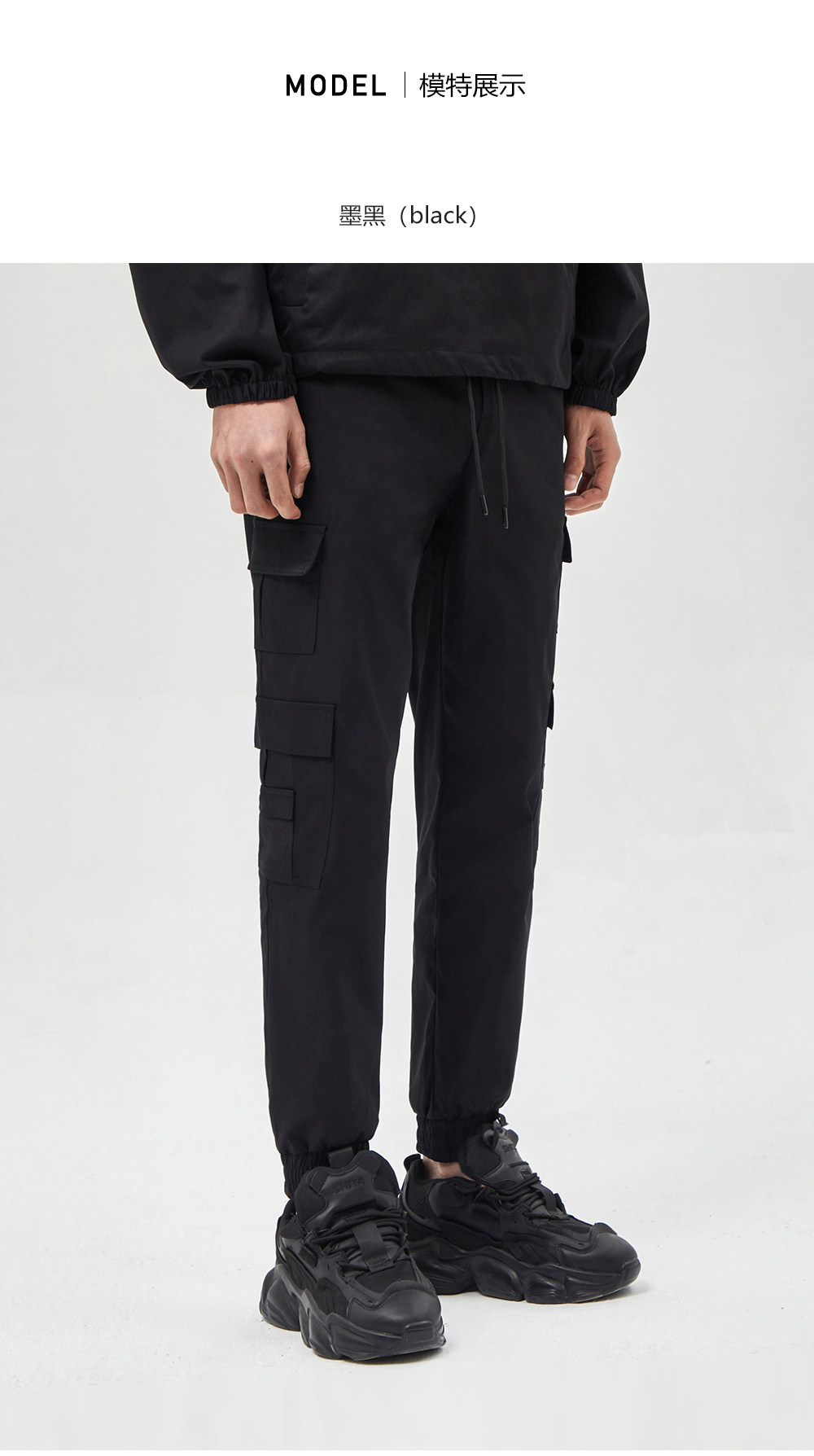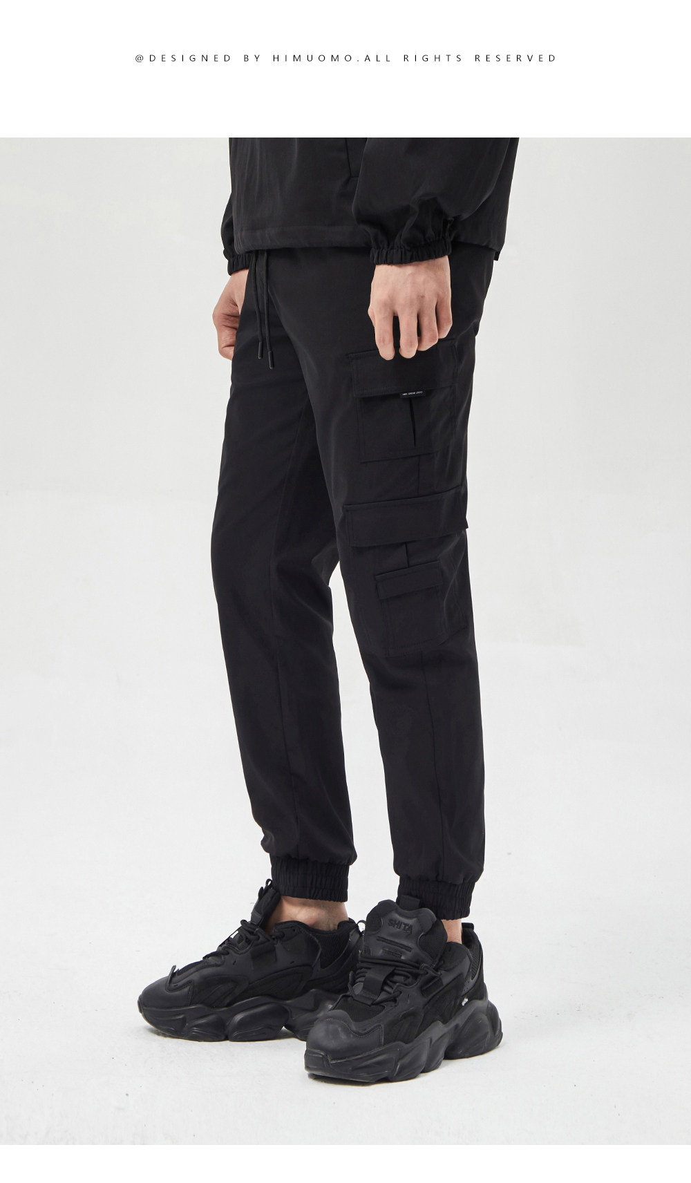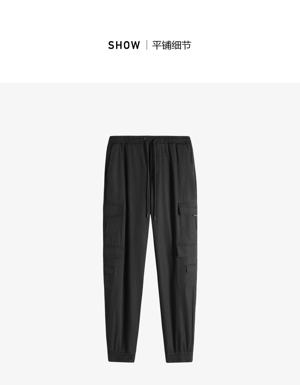 HIM漢崇 舒适束脚休闲裤男时尚潮流纯色松紧腰九分工装裤2025秋季