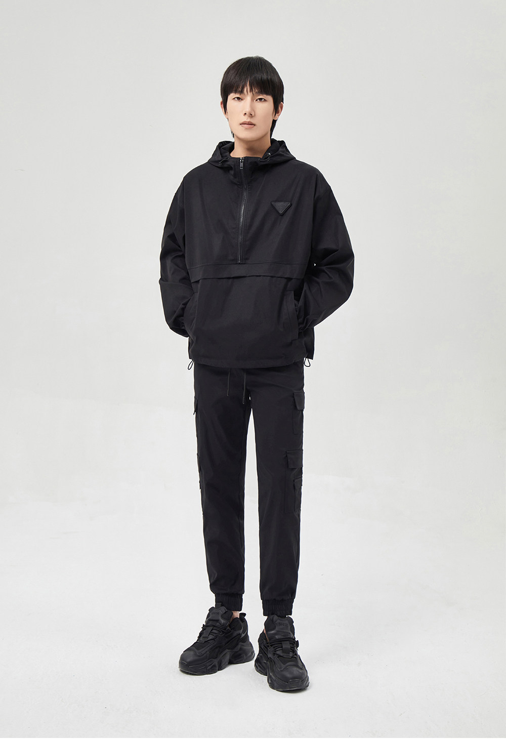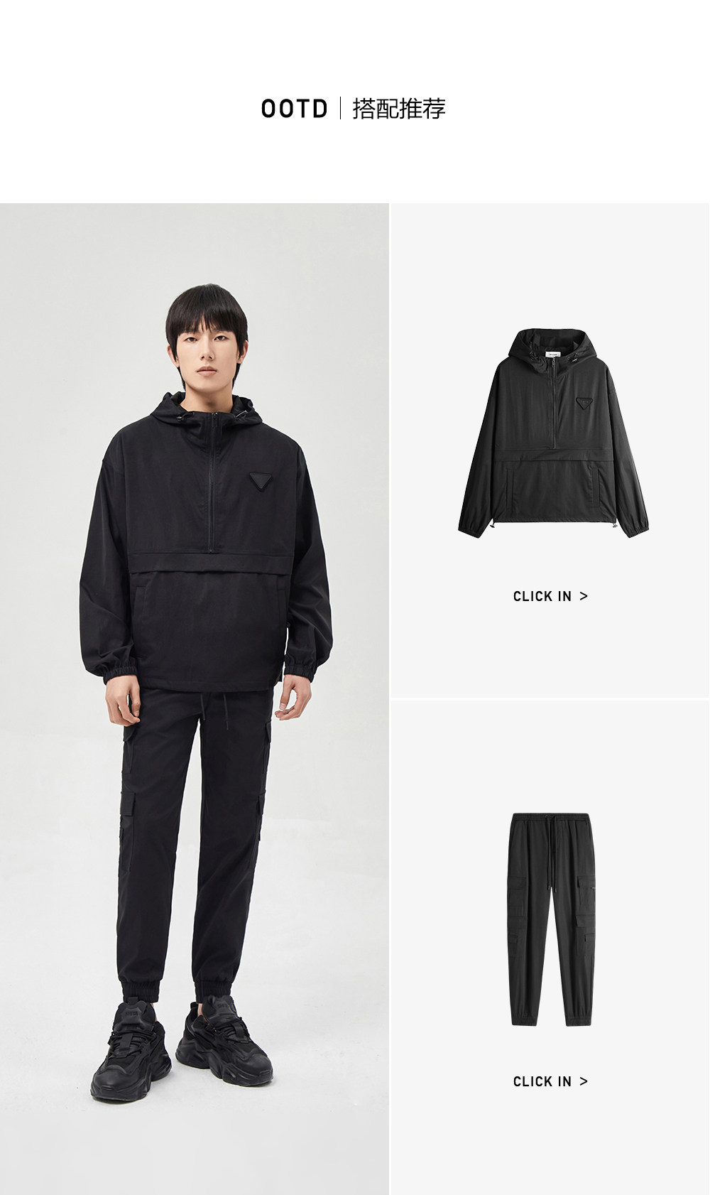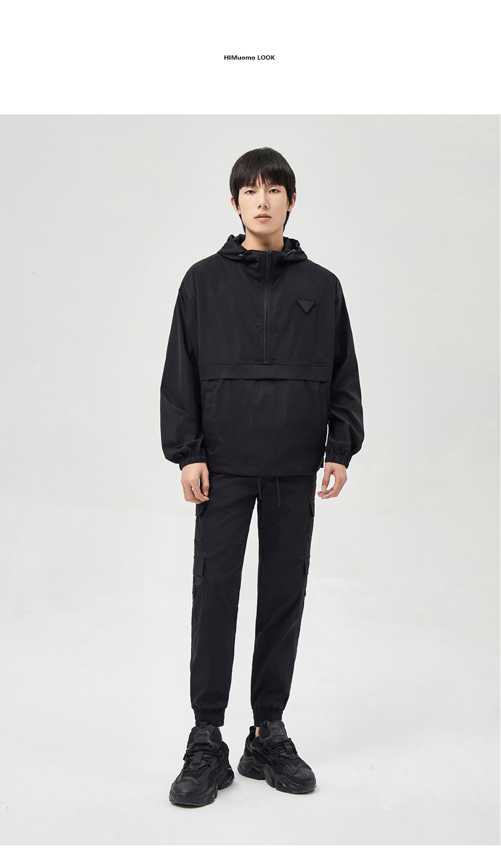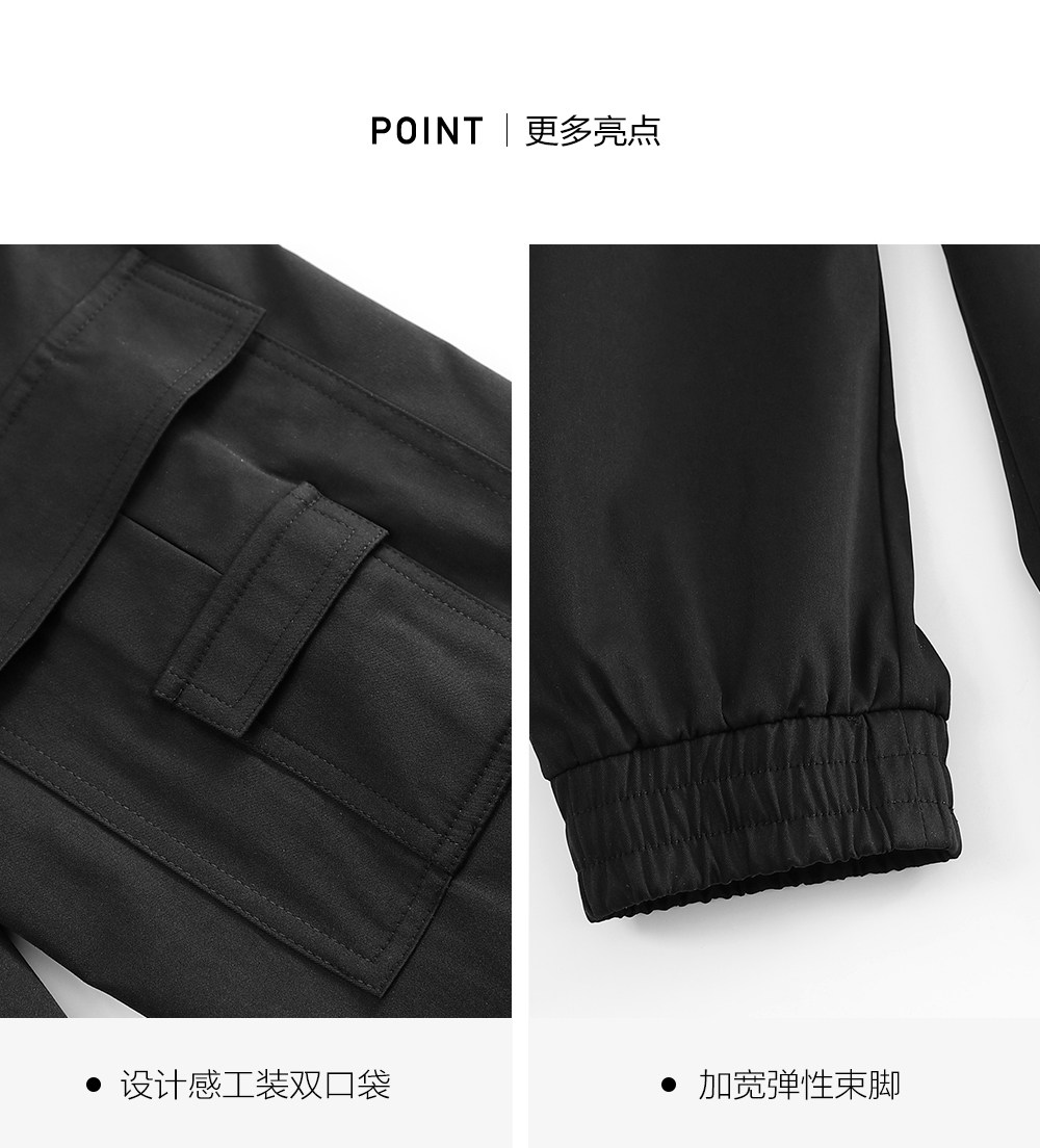 HIM漢崇 舒适束脚休闲裤男时尚潮流纯色松紧腰九分工装裤2025秋季
