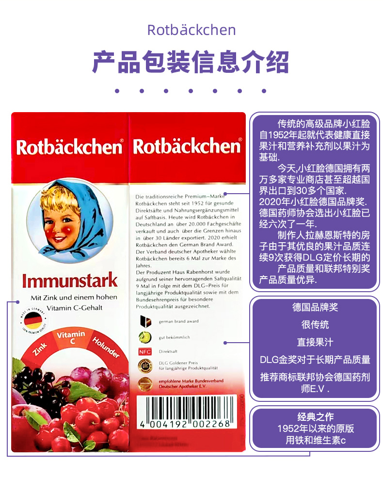 德国进口RBH百年小红脸 儿童营养锌 125ml 儿童排铅必备 免疫+智力双引擎 高活性 肠道吸收无抵抗 激活食欲 空腹可吃