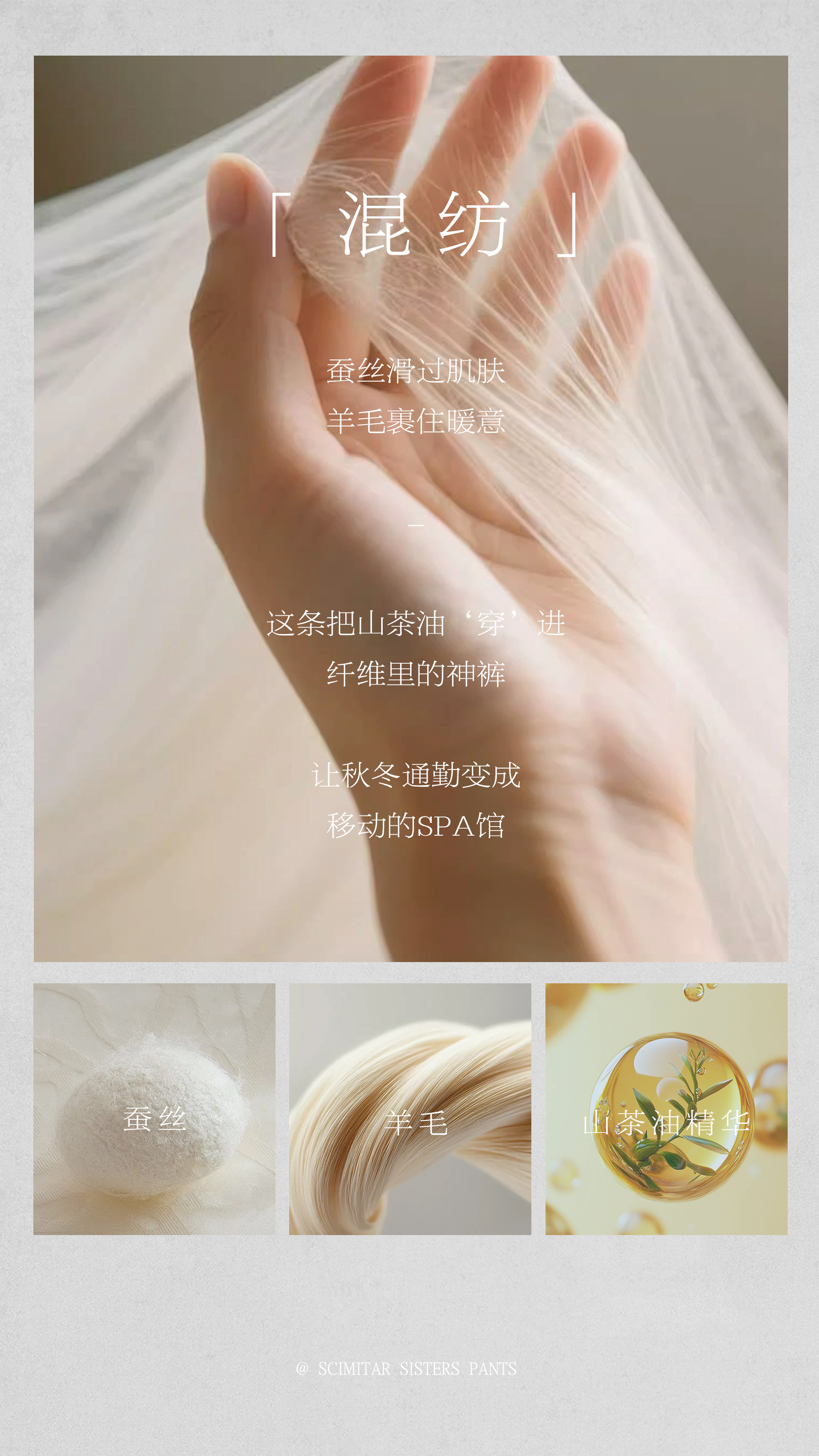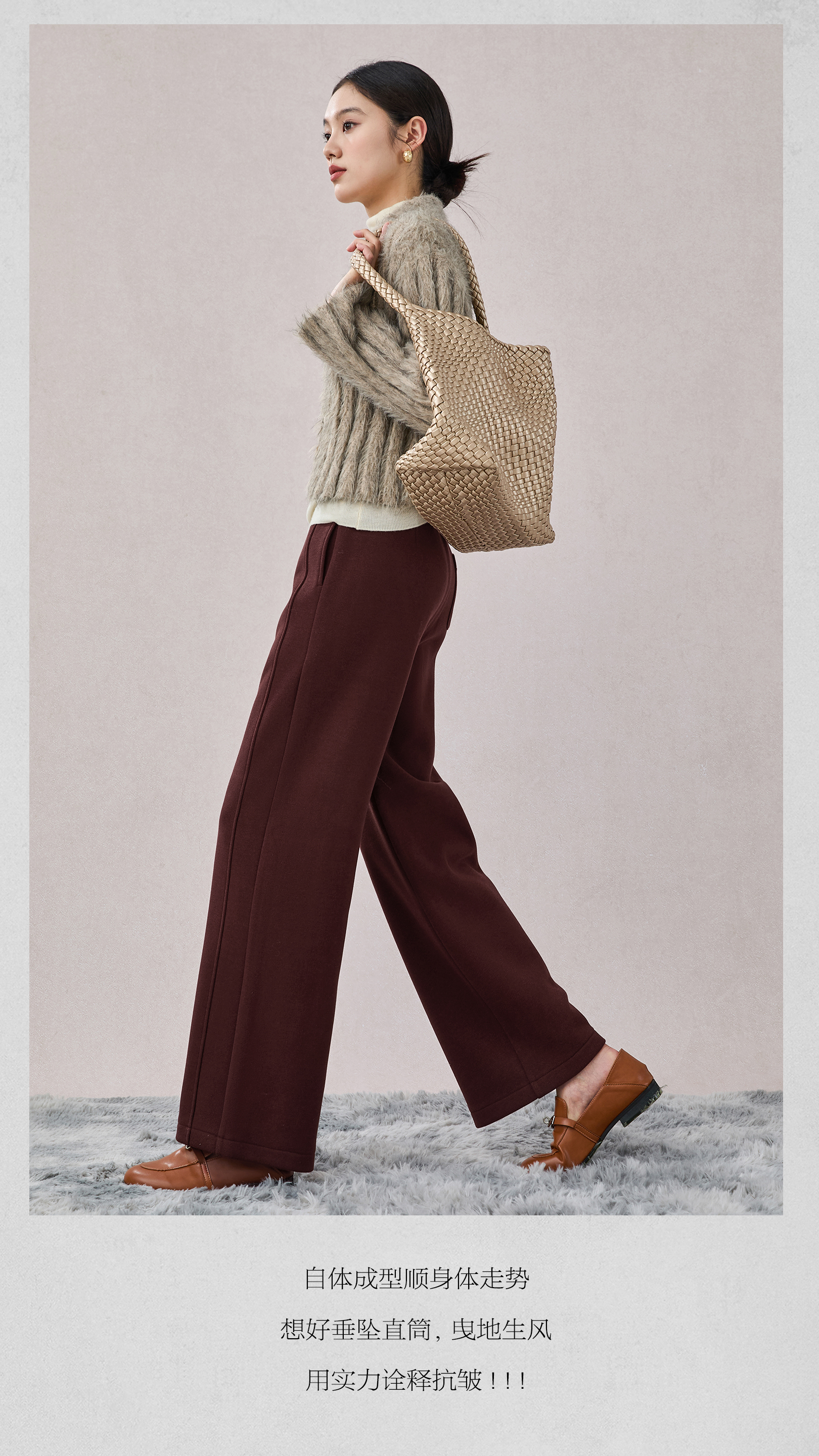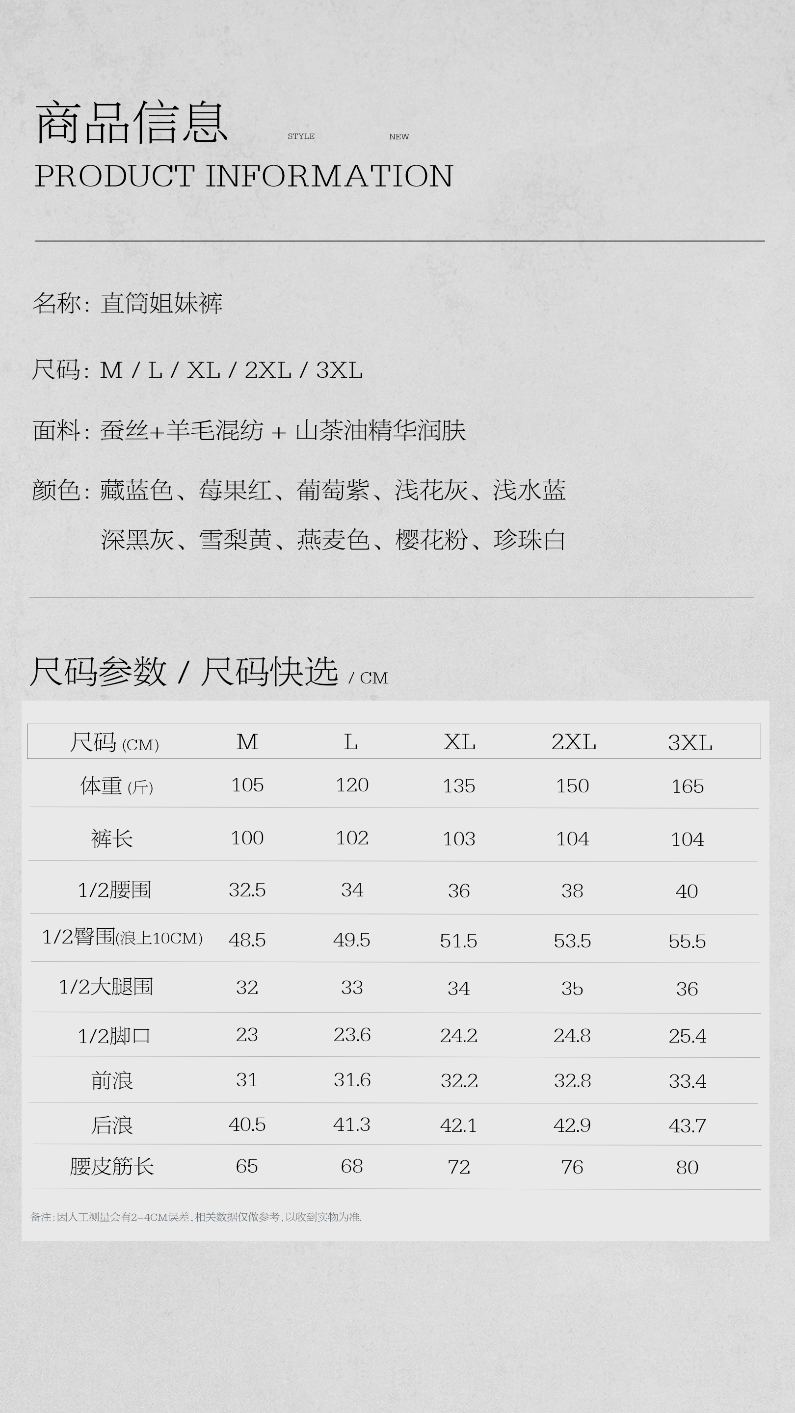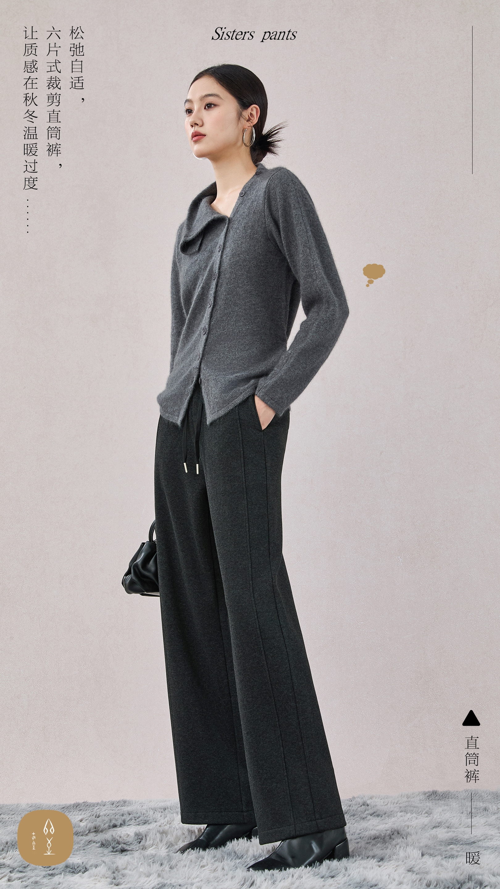 多色可选!【特妮娜 直筒姐妹裤】蚕丝+羊毛混纺 -5℃至15℃皆适穿 抗风不钻冷 蓬松手感 简约腰头松紧绳 直筒裤型 垂坠藏肉 六片拼接 立体裁剪