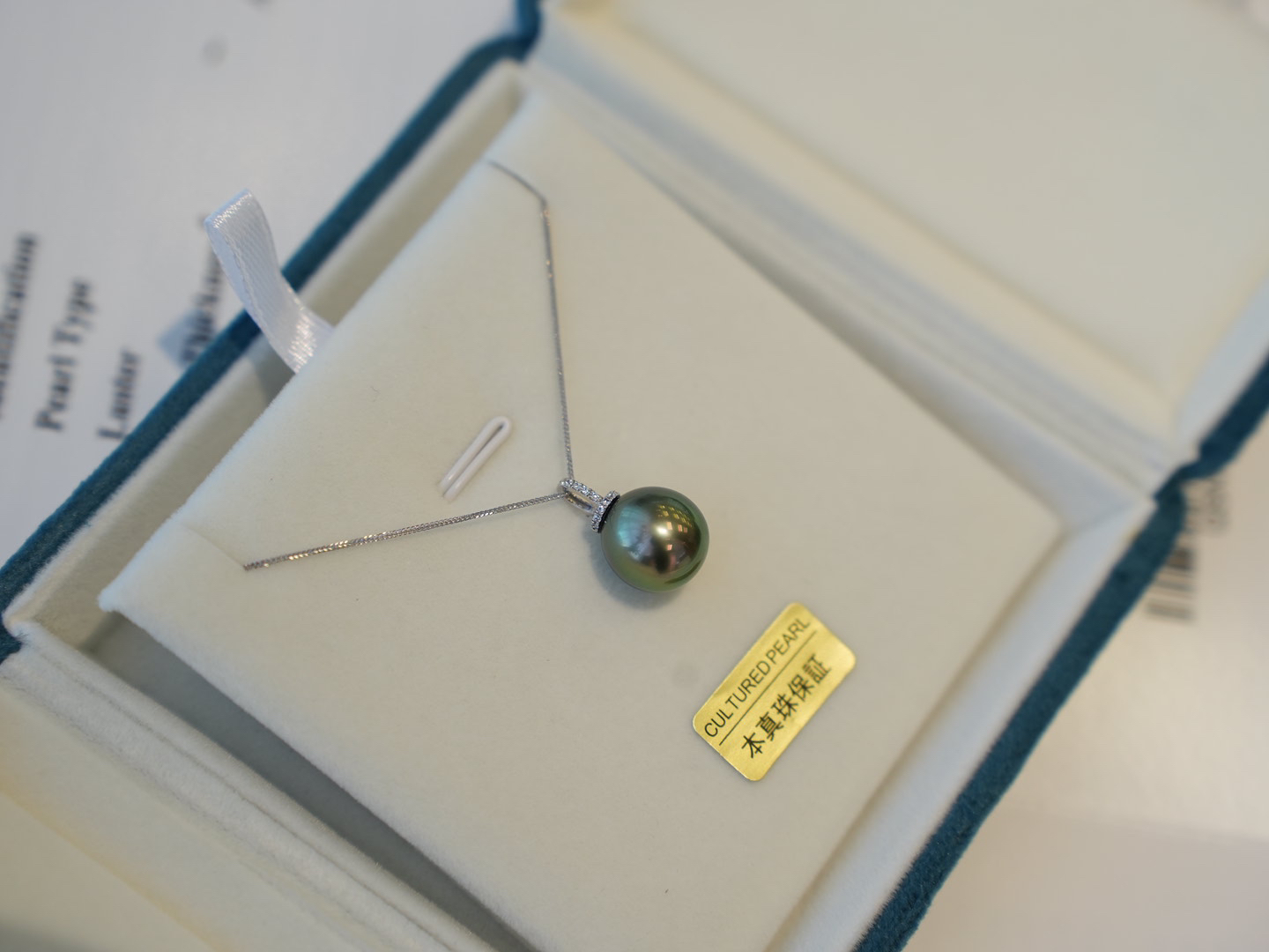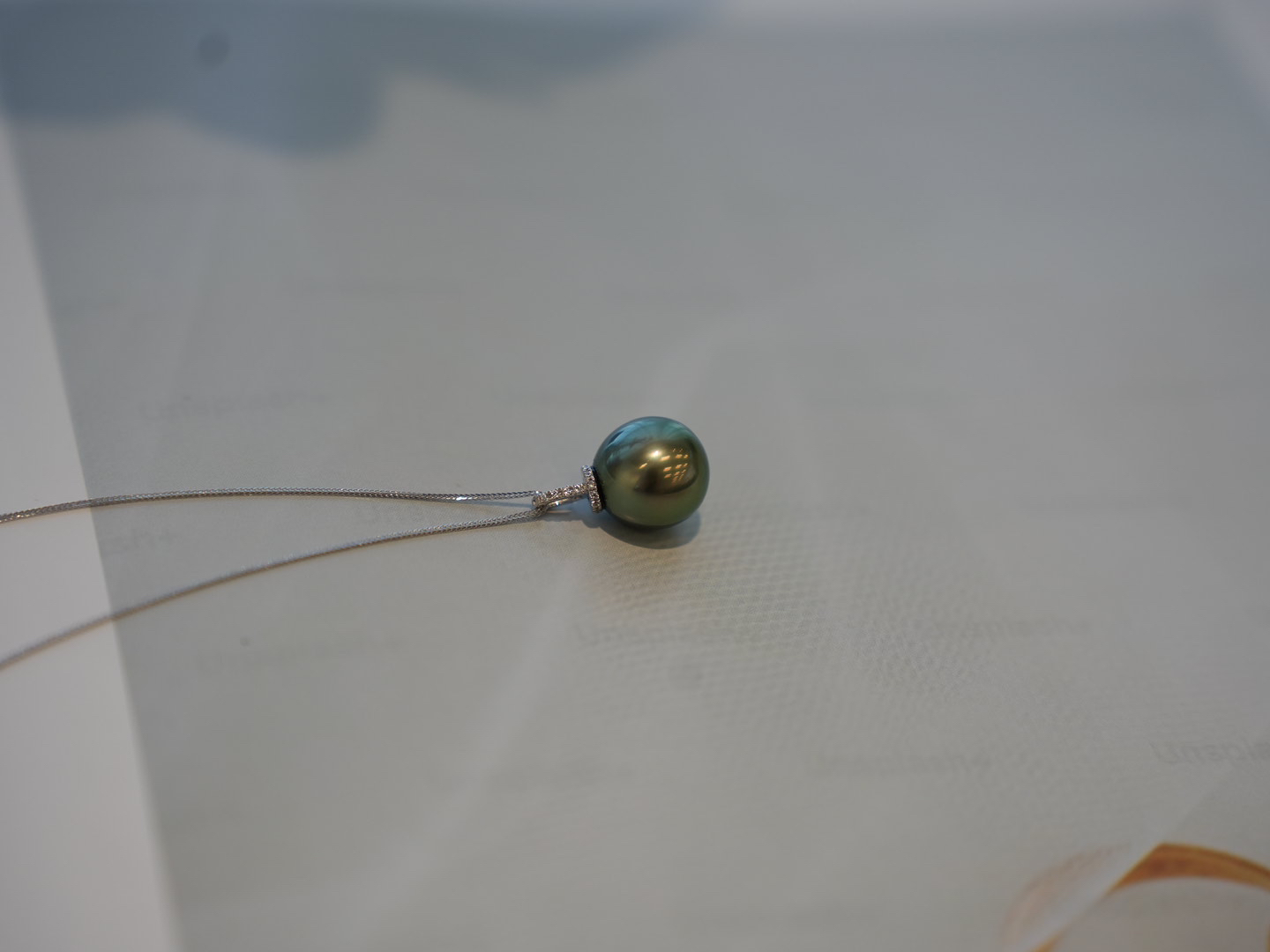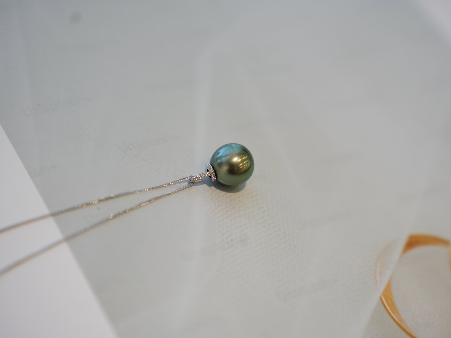 甄珠贝 大溪地孔雀绿11-12mm 近圆 chao强光 基本无暇 18k白金镶嵌
