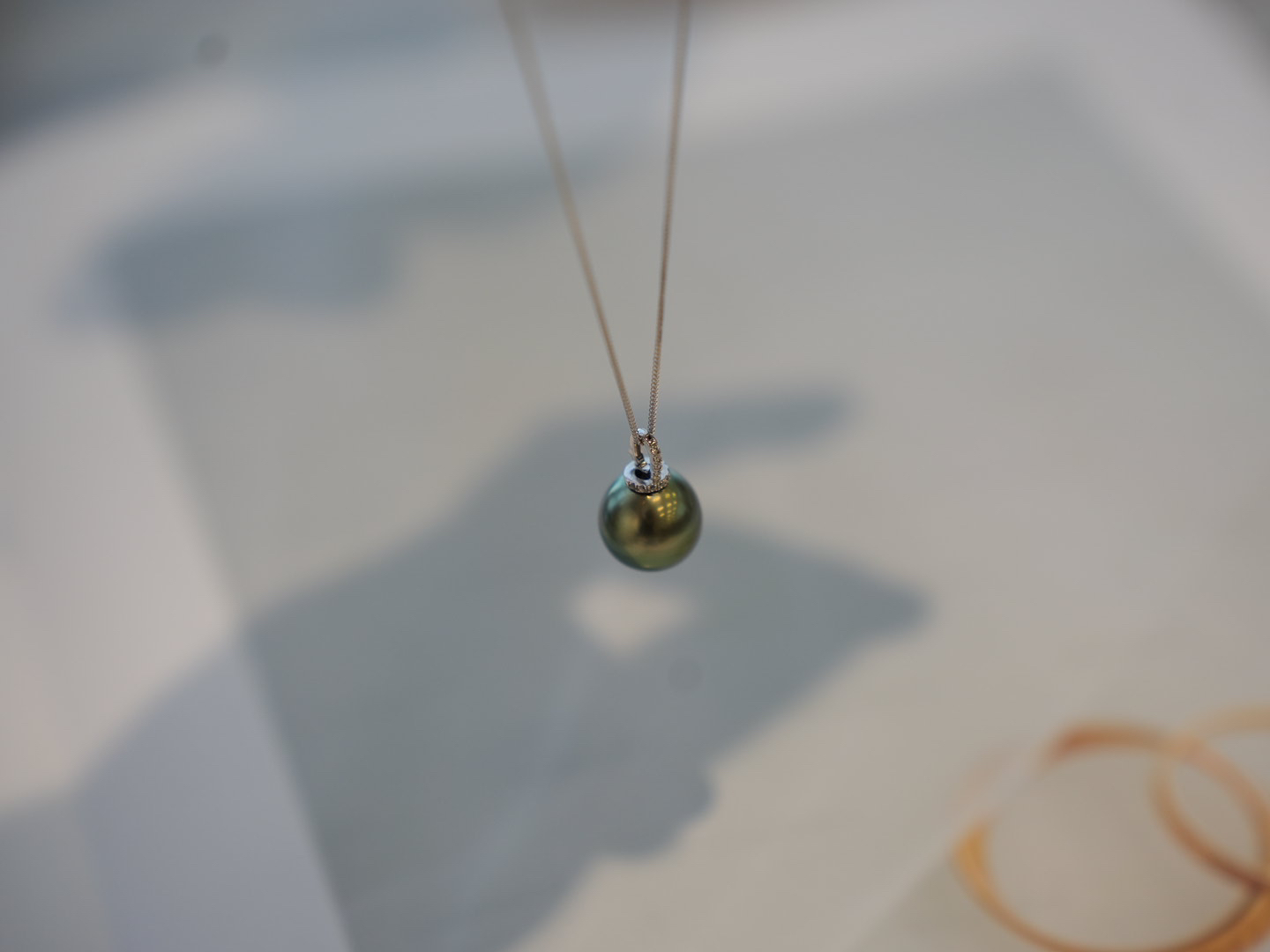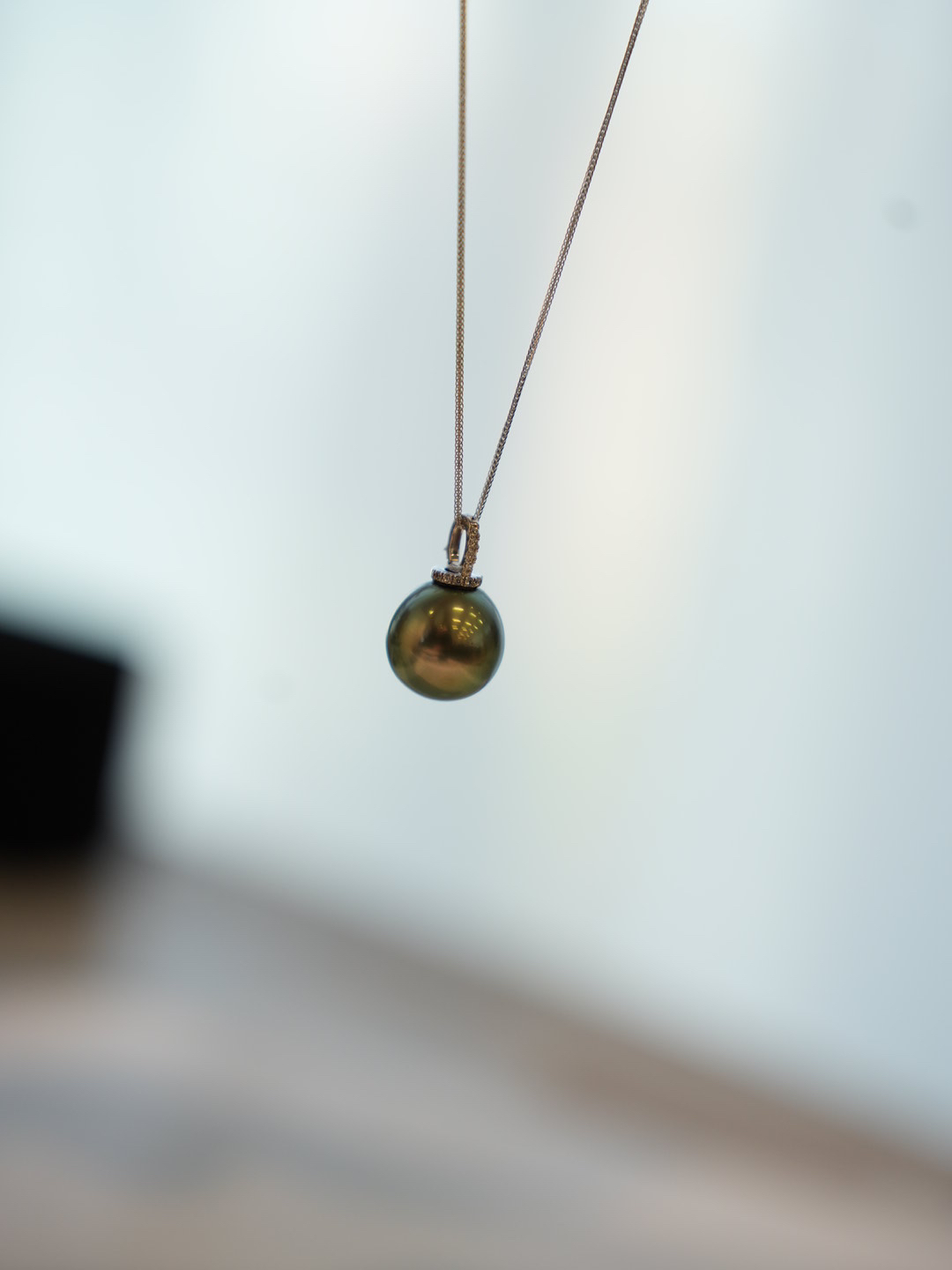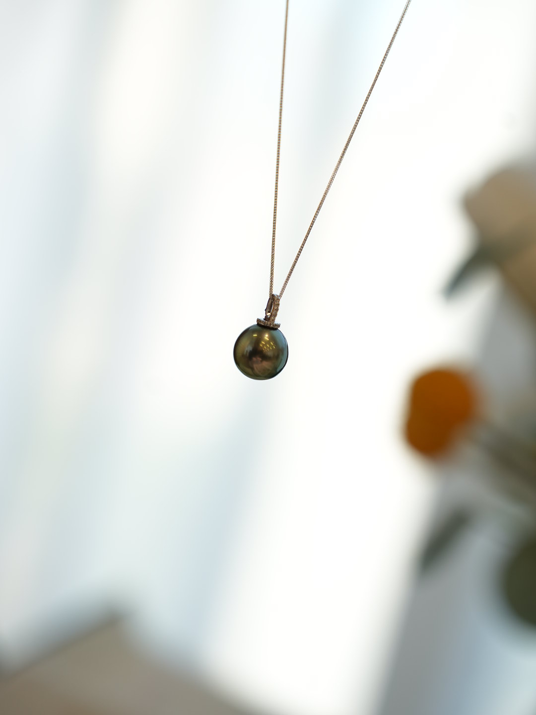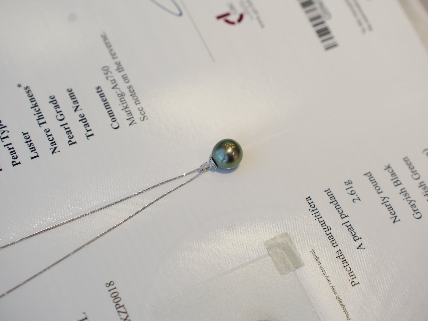 甄珠贝 大溪地孔雀绿11-12mm 近圆 chao强光 基本无暇 18k白金镶嵌